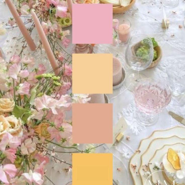 These photos are just examples for guidance. Please feel free to wear anything within the color scheme of pinks, corals, peach, yellows, floral print, and light greens.