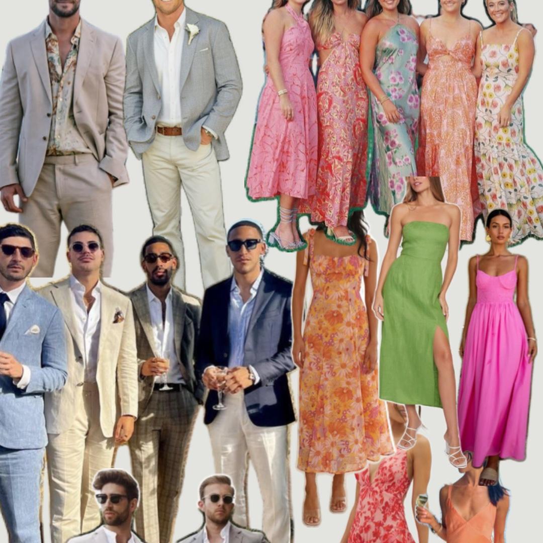 Por favor, evita ropa demasiado casual, muy escotada o que compita con los colores de la ceremonia.