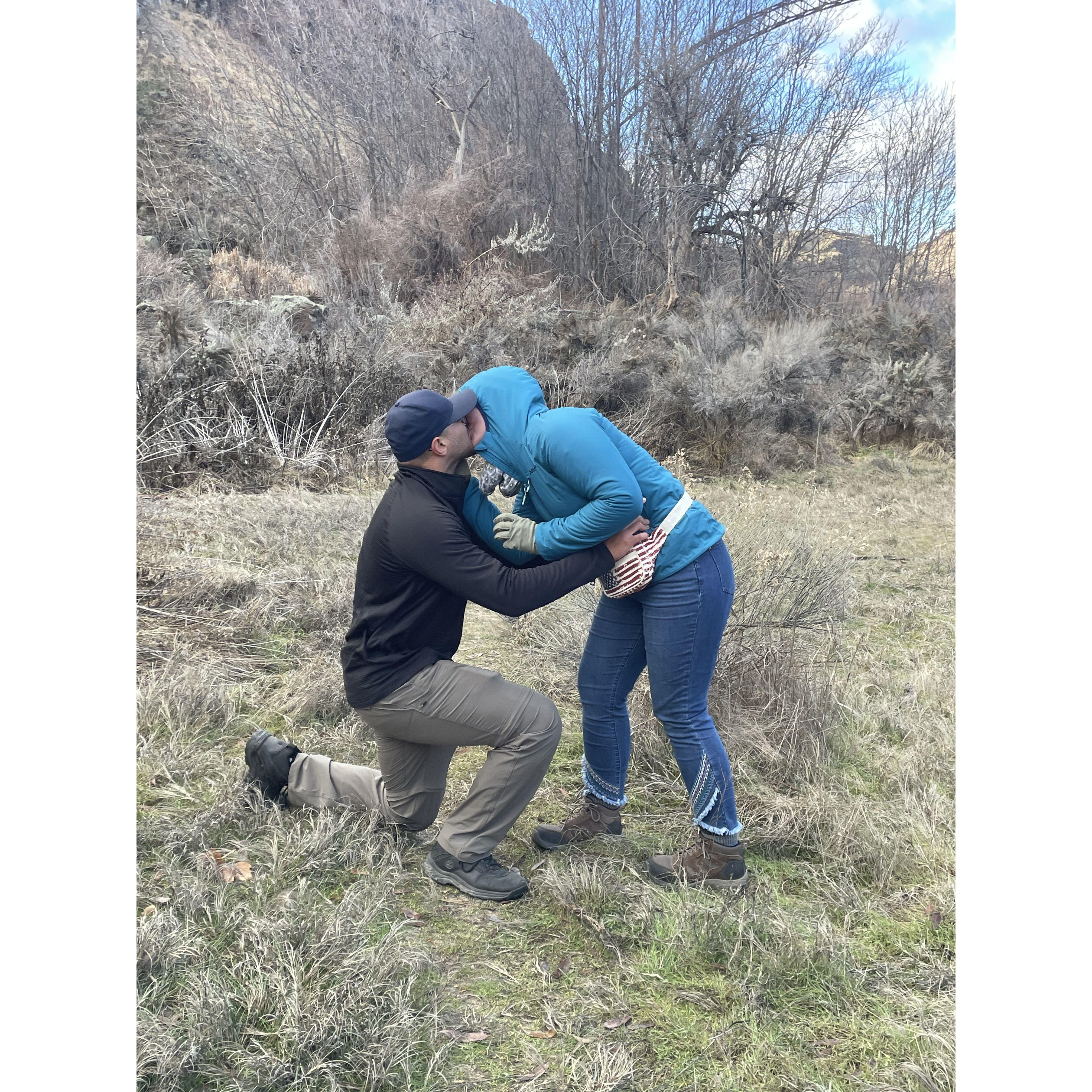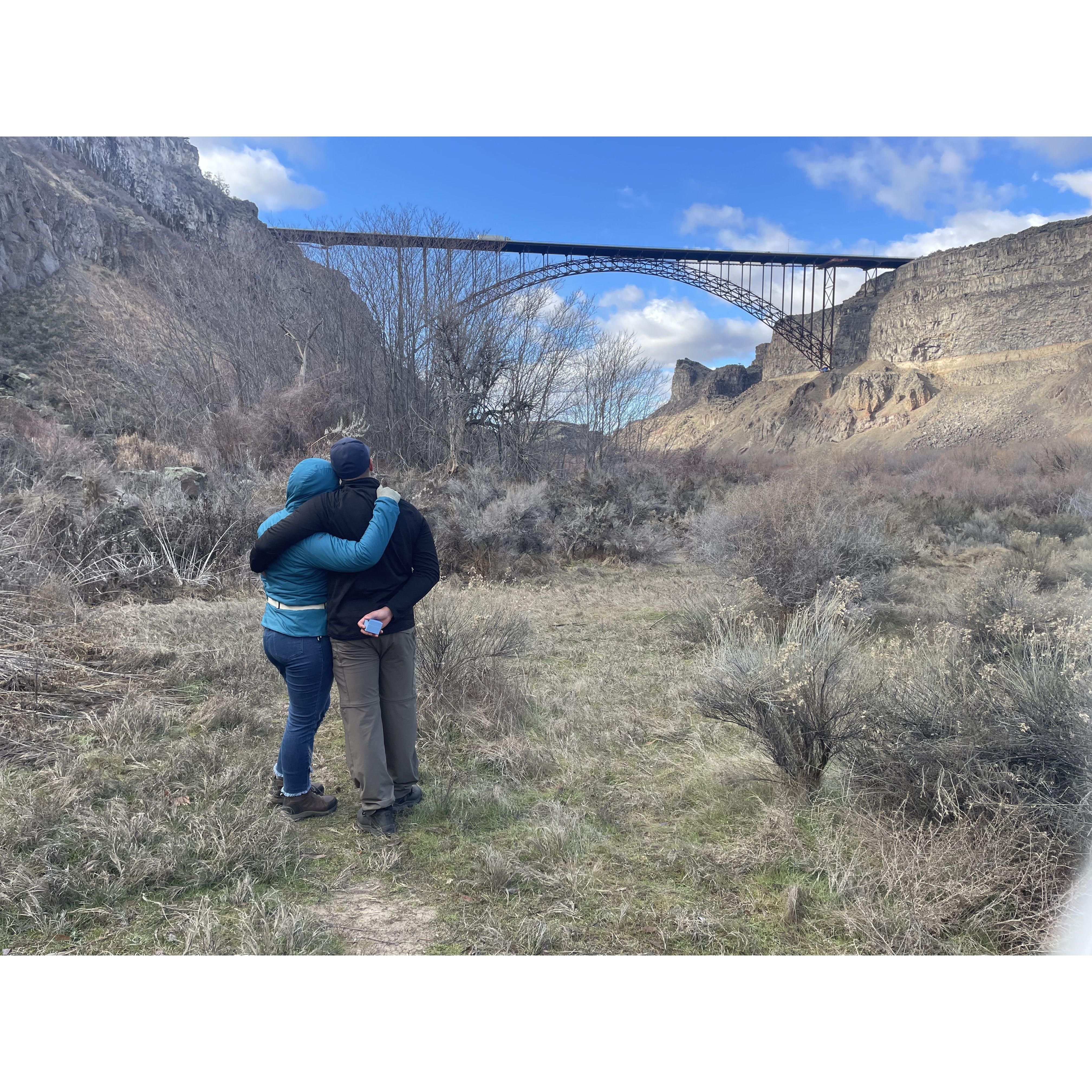 Marcos proposed in Twin Falls, Idaho, Allison's hometown. So romantic!! A few days before Christmas 2023, it was freezing.