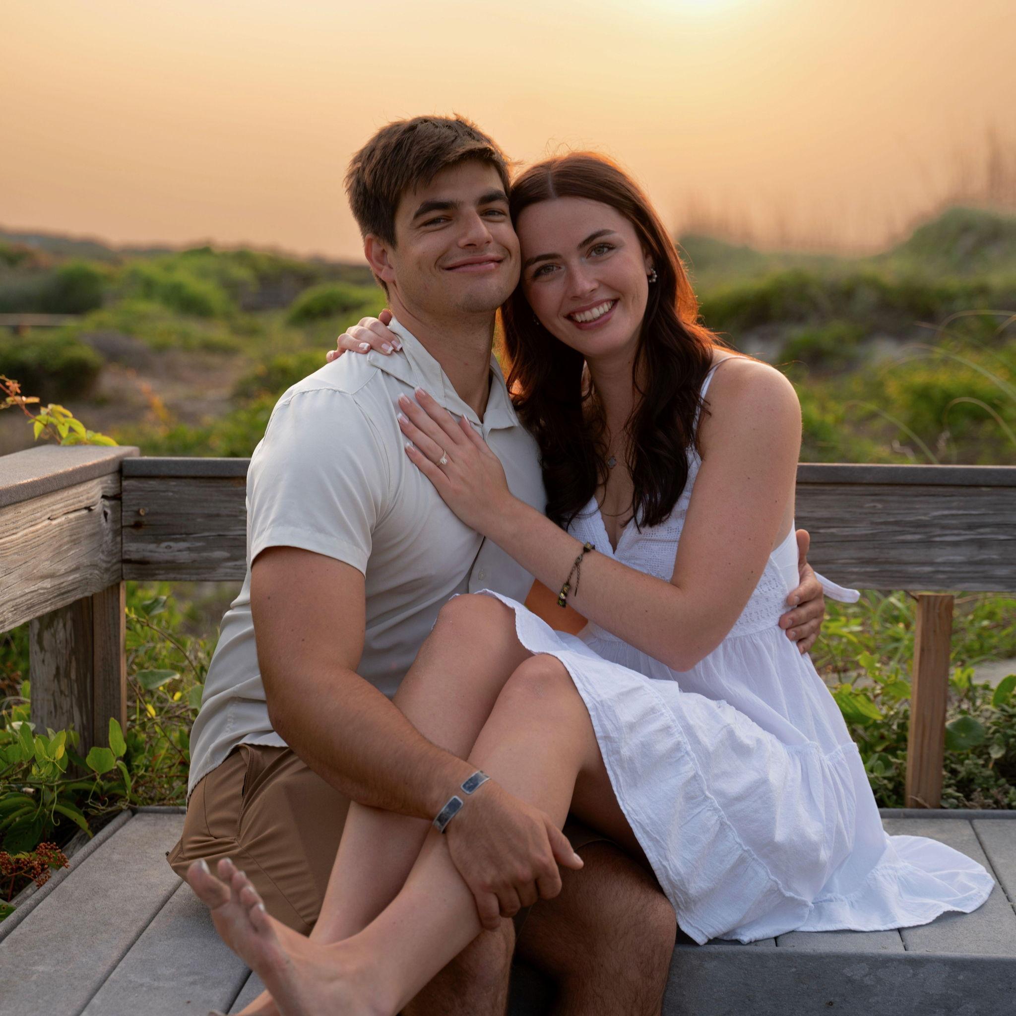 Nathan proposed to Amanda on a 6:30 AM beach walk at the Isle of Palms!