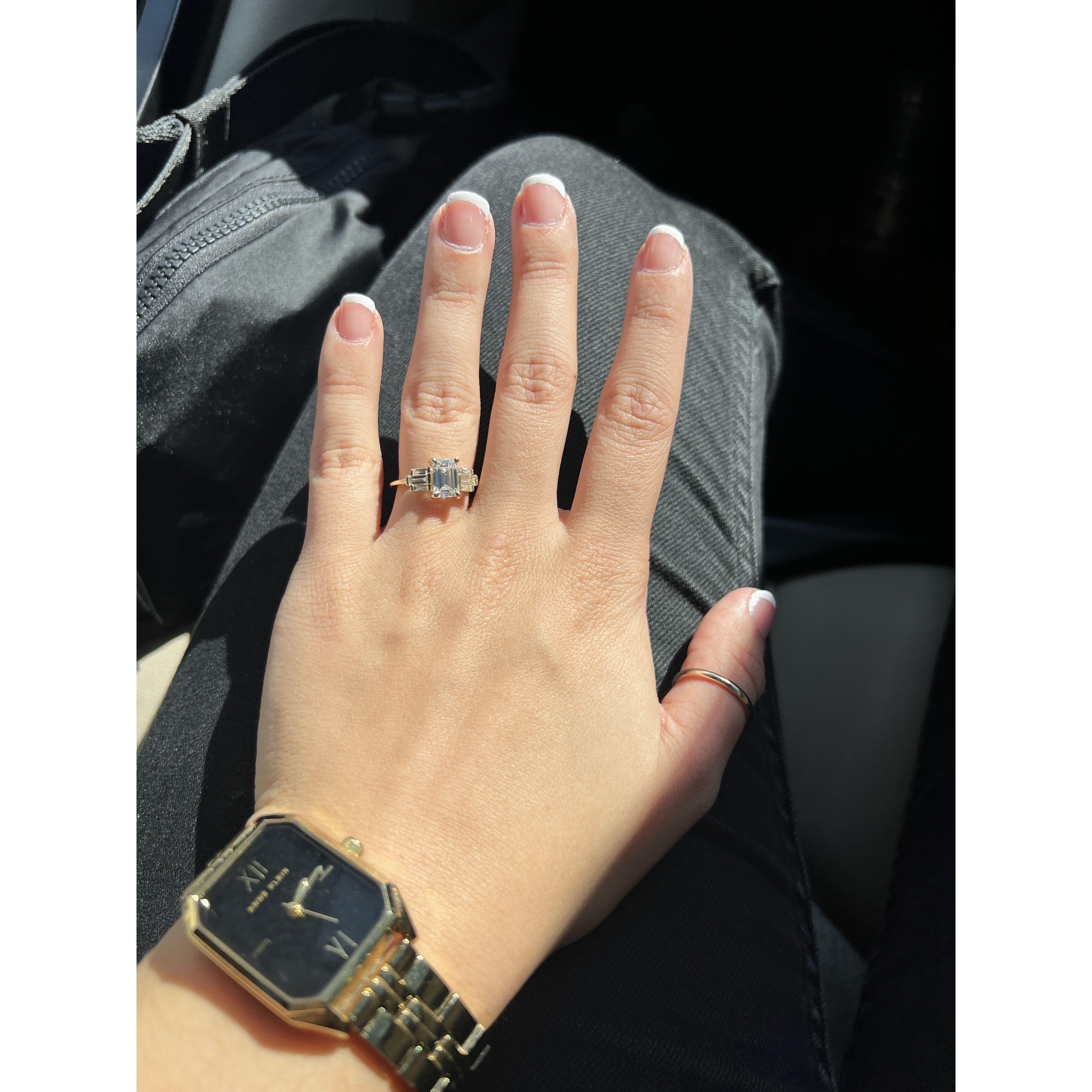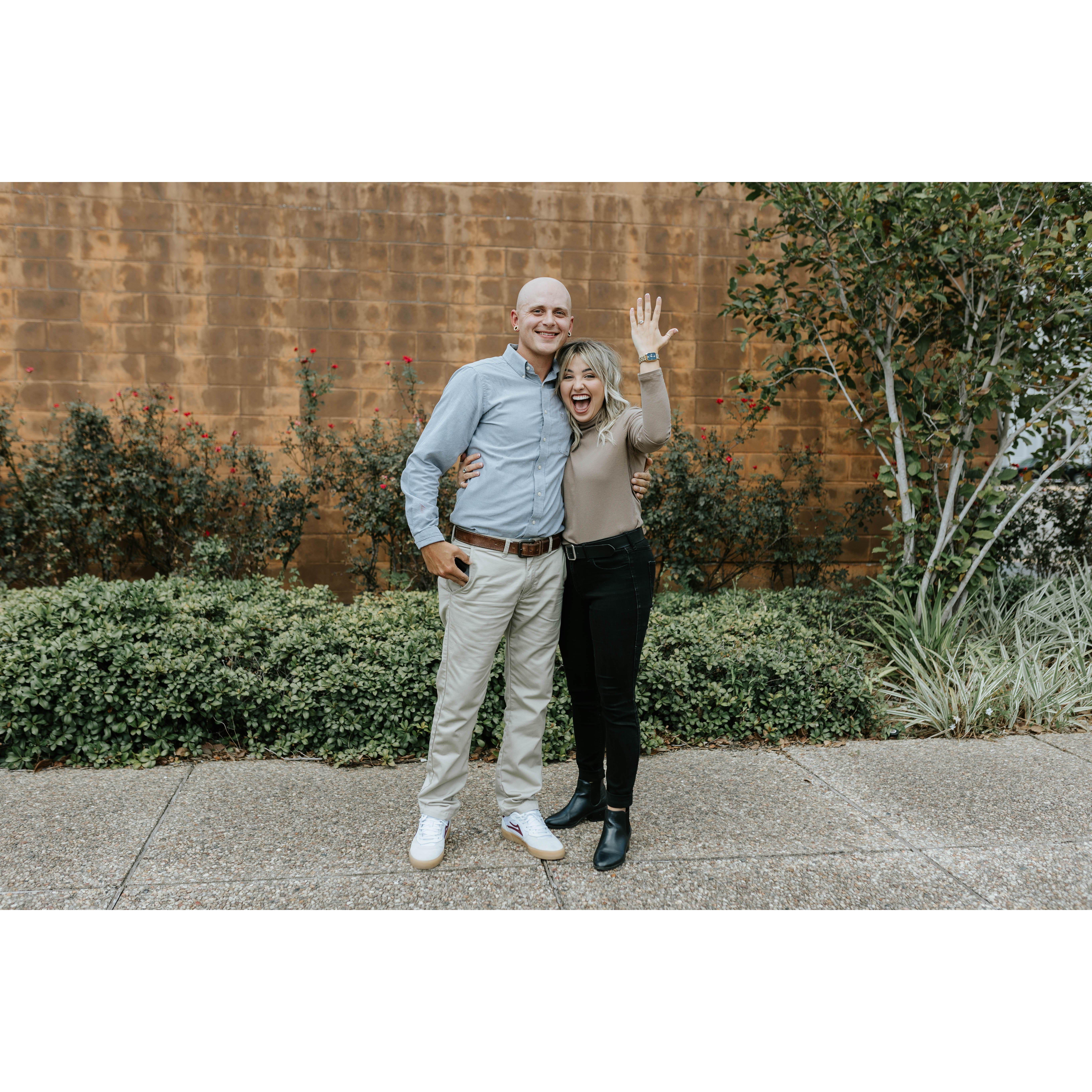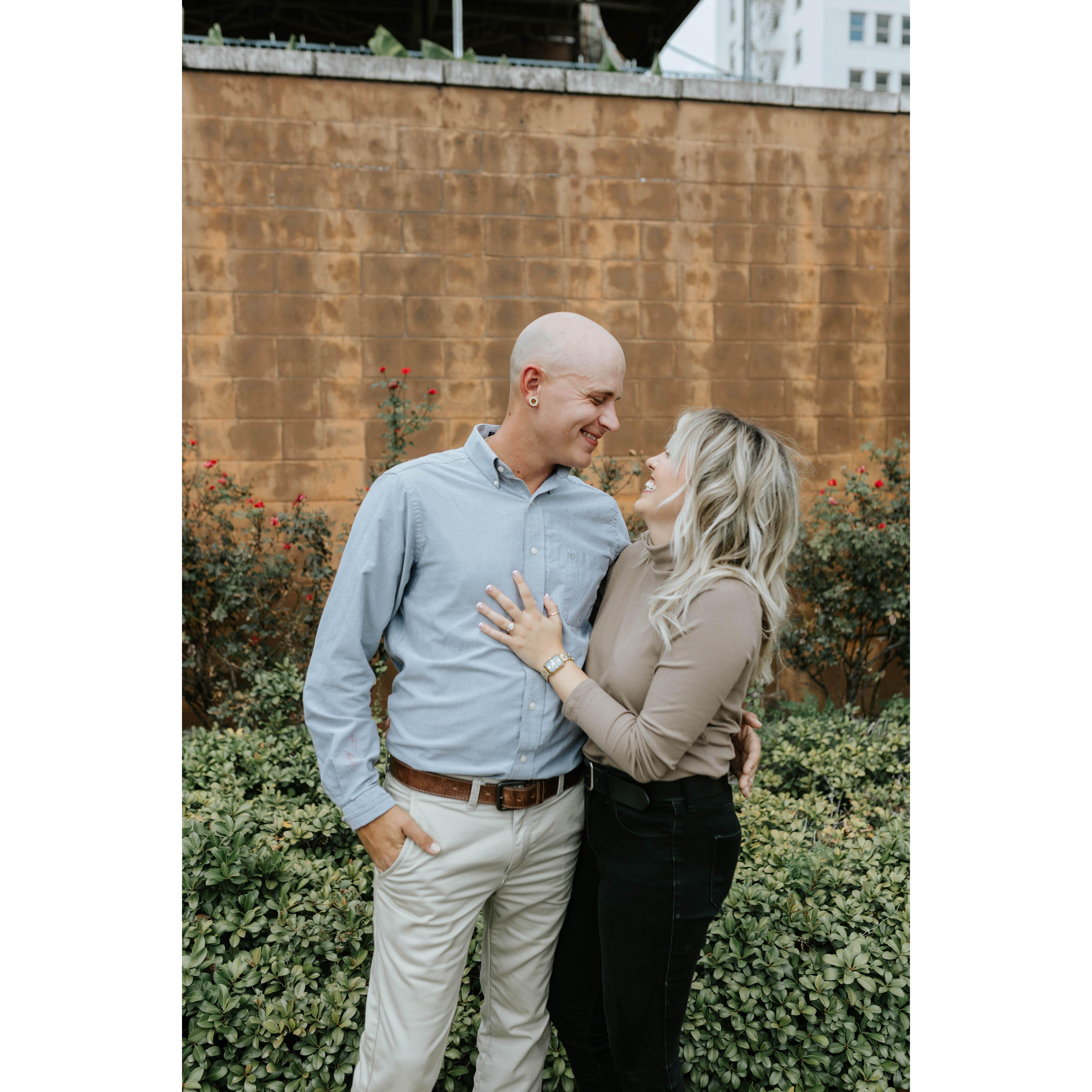 The day of our engagement, Blake had originally planned to purpose to me at my birthday party the night of October 16th but he later told me that he thought I had caught onto him so he changed it up. For the record, I didn't know how or when he was going to do it but I obviously knew it was coming! After a long day at the church, I walked into the lobby and our good friend and our photographer asked me to come outside to take a photo with my friend. We walked across the street to the empty parking lot...I knew something was up. After taking some photos Blake comes walking up behind me saying "Hey! What's up?" Once he got to me, he got on one knee and said "Amaris Grace Rose Berwick. I adore the woman that you are. I can't WAIT to grow old with you. Will you marry me?" Of course I said "YES!"