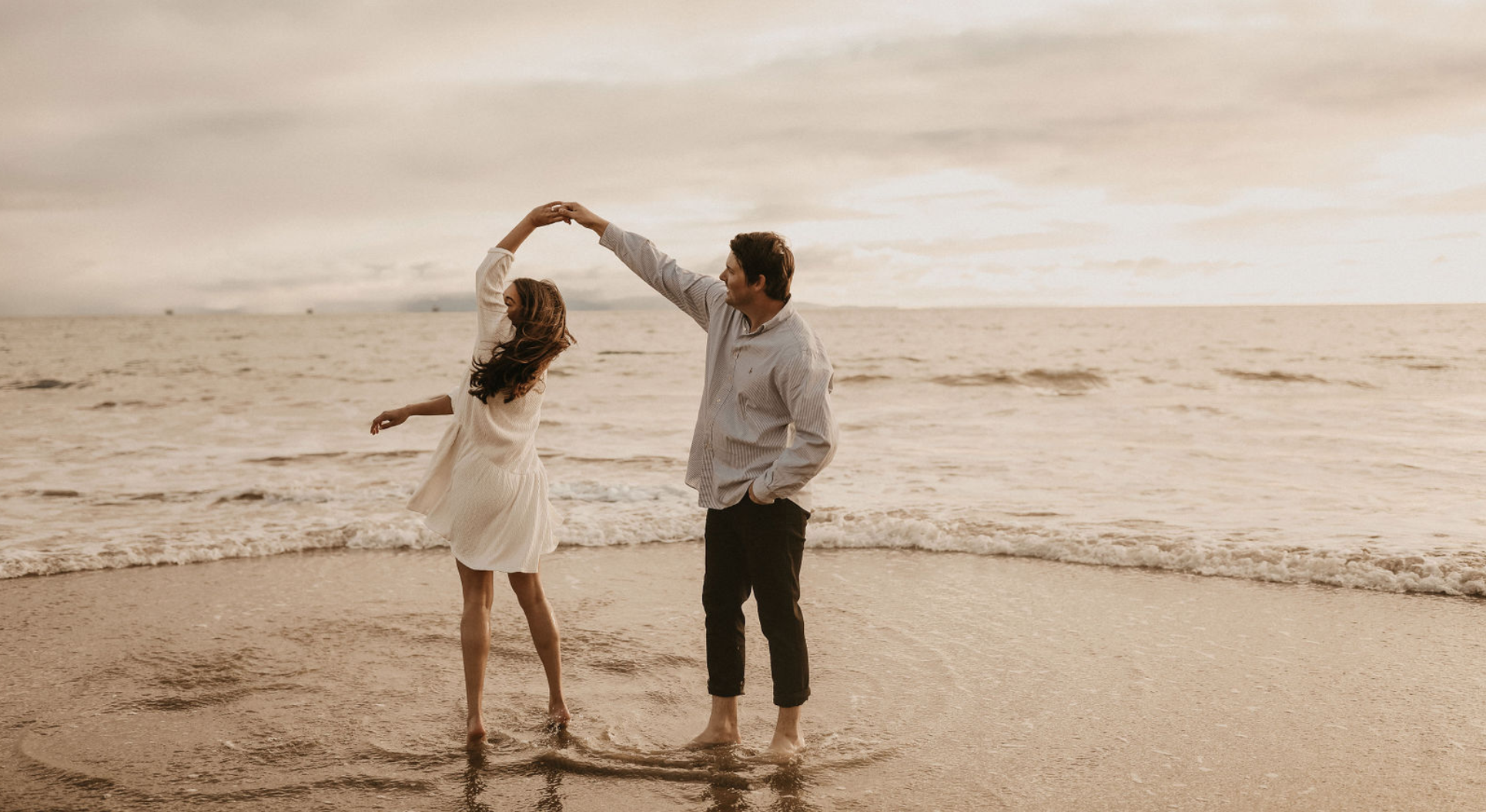 Ben and I were on a trip to Fiji and had just arrived on one of the Islands. It was too early to check into our room so we threw on our suits and headed down to the beach. Ben wanted to walk and clearly had a destination in mind, a rock formation about half a mile down the sand. I kept stopping to look at the fish and he kept dragging me along. Eventually I was too eager to get in the water and stopped walking and insisted we go for a swim. I swam out first and after a minute Ben called my name. I turned around expecting for him to take a photo (he does that a lot) but instead found him back on the shore and on one knee. I later found out he had been carrying the ring around in his swim trunk pockets because he wasn't sure when the right moment would be. Still gives me anxiety thinking about that.