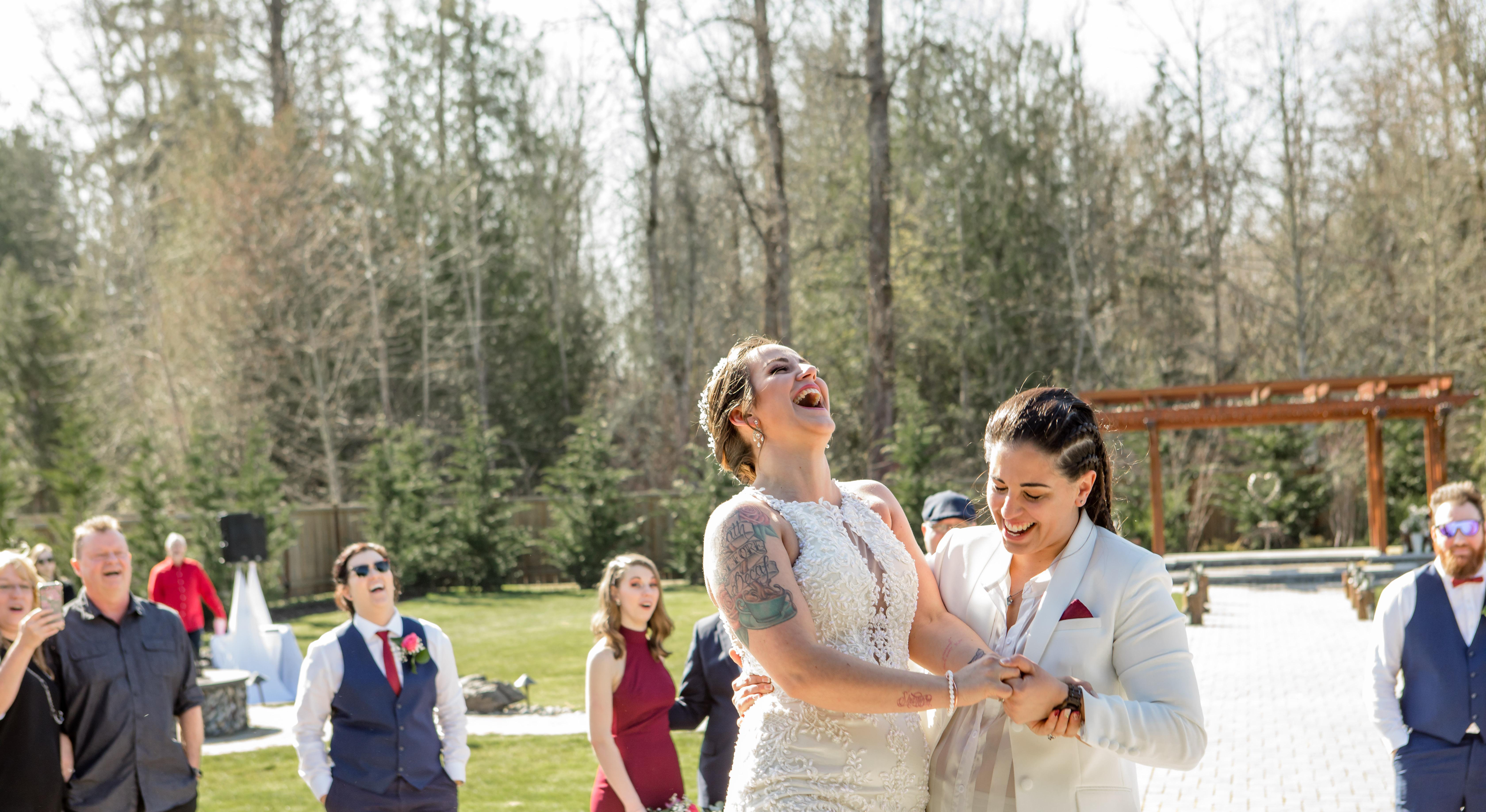 We met just like all the other fairytale stories you hear about, on Tinder. Nothing more romantic than swiping right! I (Amber) started the conversation first, but then Teyanna took over and asked me out to breakfast after a couple weeks of talking. My first thought was, "breakfast? Man this girl is friend-zoning me for sure." But after spending three hours at the restaurant talking nonstop I started to think maybe I was wrong. What really sealed the deal is when I walked Teyanna to her car. As we got to her car, Teyanna leaned up against it and started to fiddle with her keys...I knew what this meant. But with me being the overly nervous person that I am, gave her a big ( and very long) hug and went on my merry way. Little did I know that was the best decision I could have made. I left Teyanna wanting more. And the rest is history :)