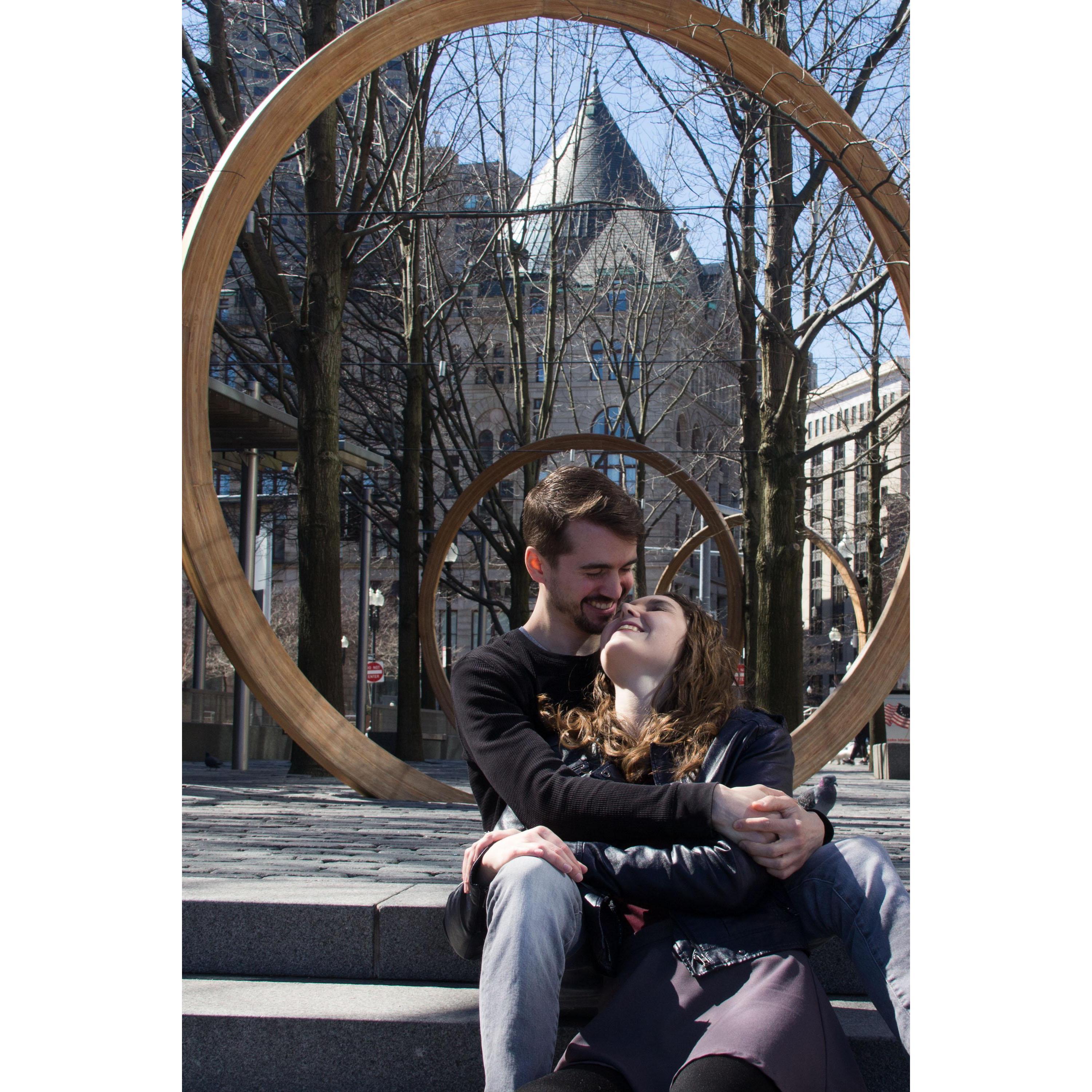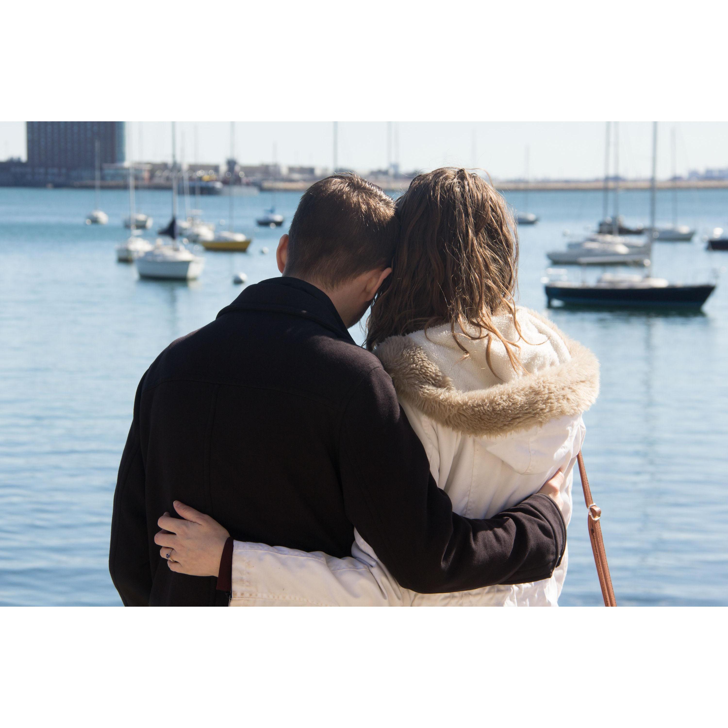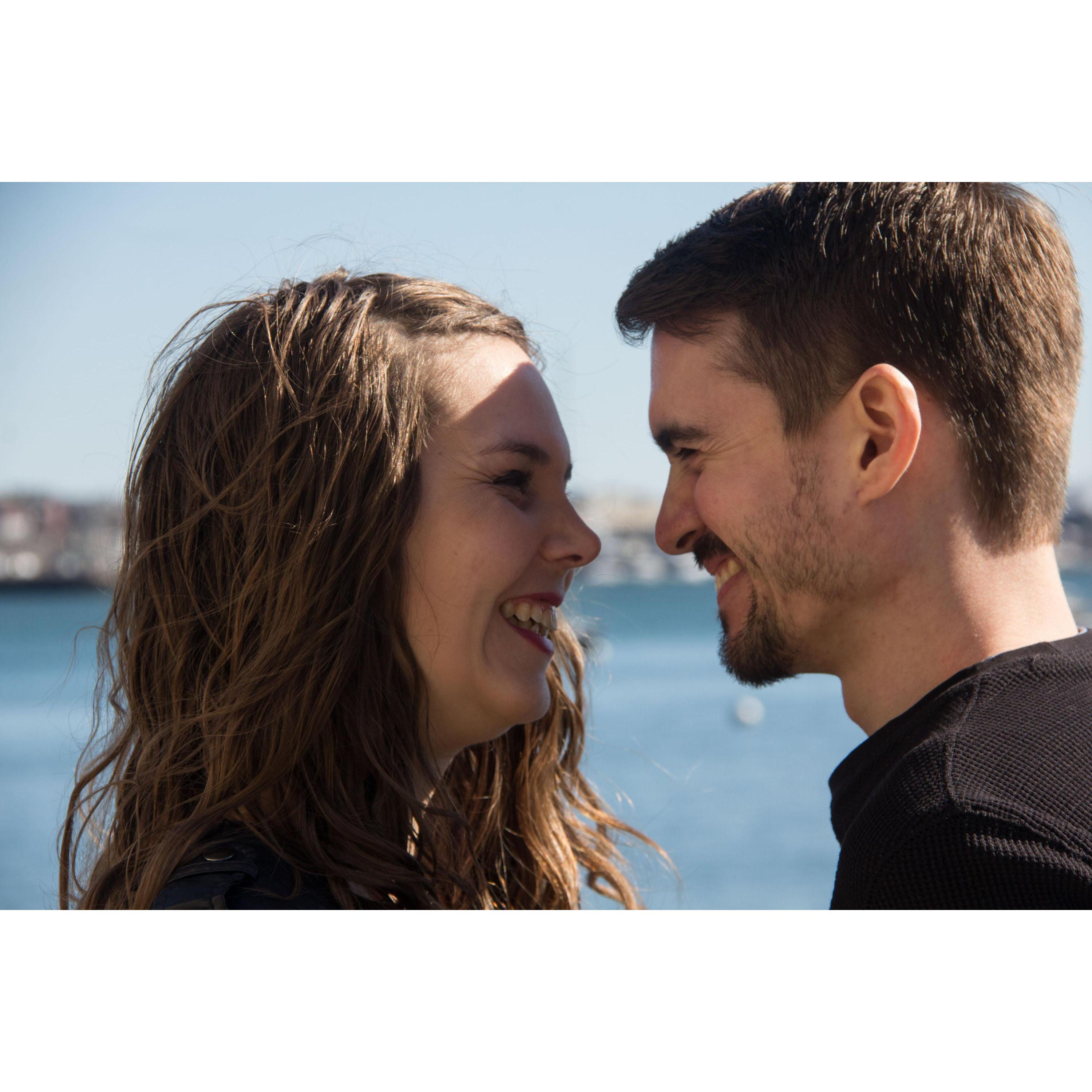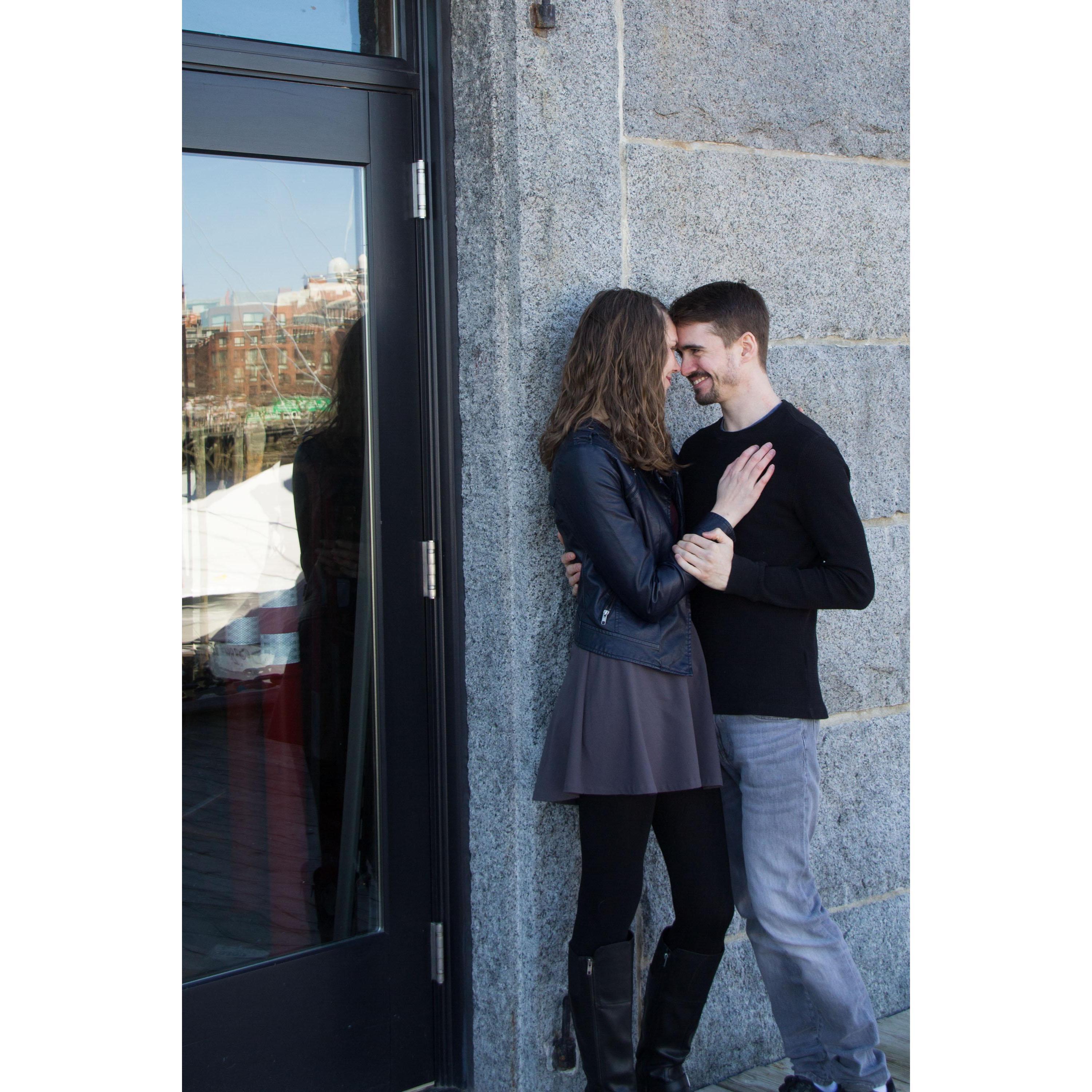 Our engagement photos were taken in Boston along the harbor.