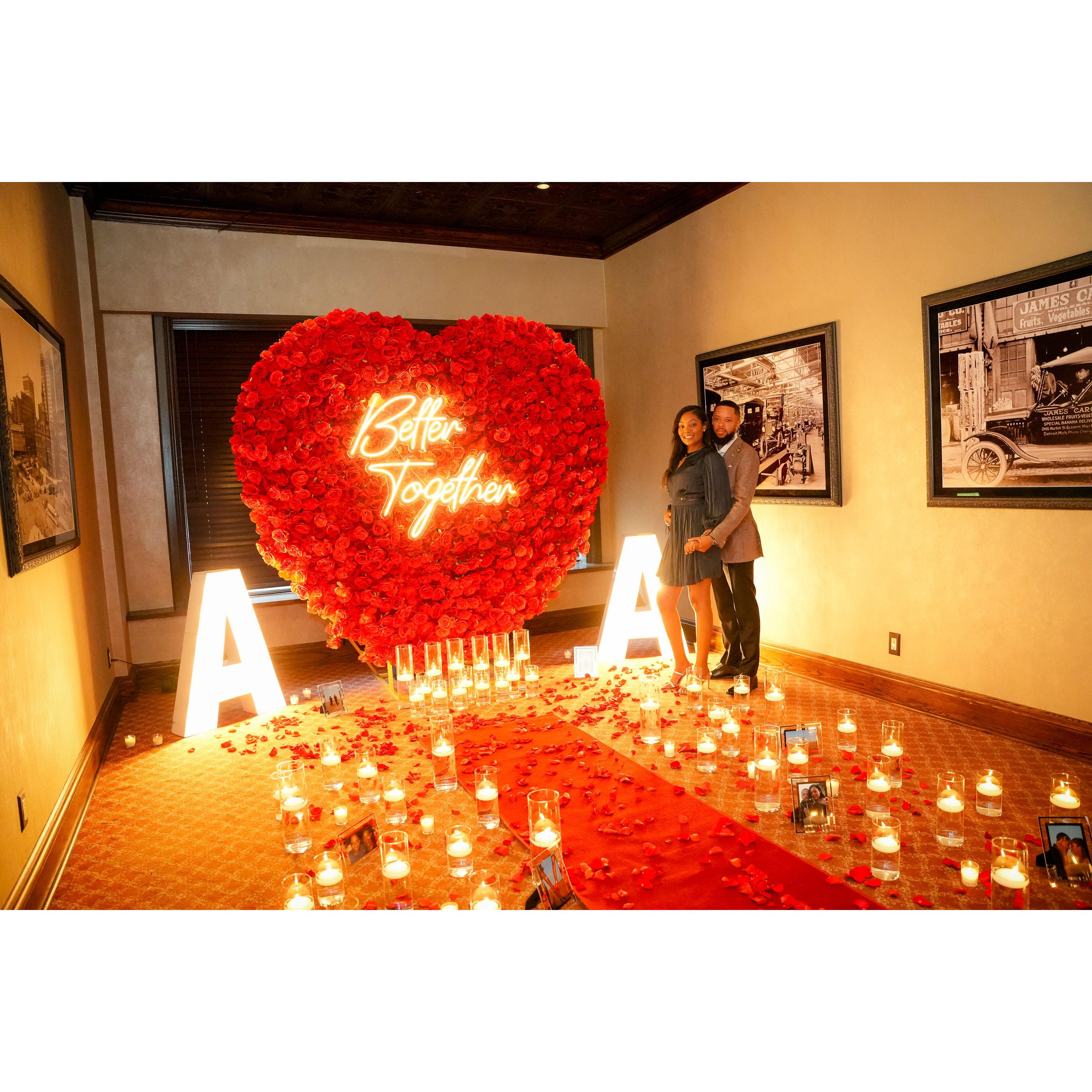 We're officially engaged! Our proposal took place on August 29, 2024 at The London Chop House in Downtown Detroit. Our engagement photoshoot took place on July 2, 2025 at Cranbrook House & Gardens in Bloomfield Hills.