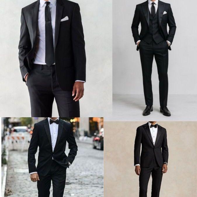 Gentlemen: Black Tuxedos or black suits with white dress shirts and ties or bow ties are requested.