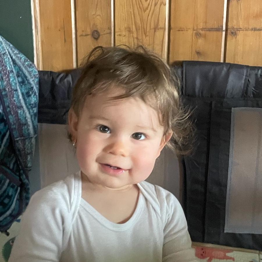 Eva has been working very hard to learn how to walk so she can walk down the aisle at Aunt B and Uncle Bon's wedding. When she isn't perfecting her flower girl gait, she loves dancing to Harry Belafonte, giving kisses to her Mom and Dad and aggressively petting her beloved cat and dog, Menlo and Guacho. Eva is Anna Bell and Stephen's niece and is the daughter of her brother, Alex and his wife, Nina.