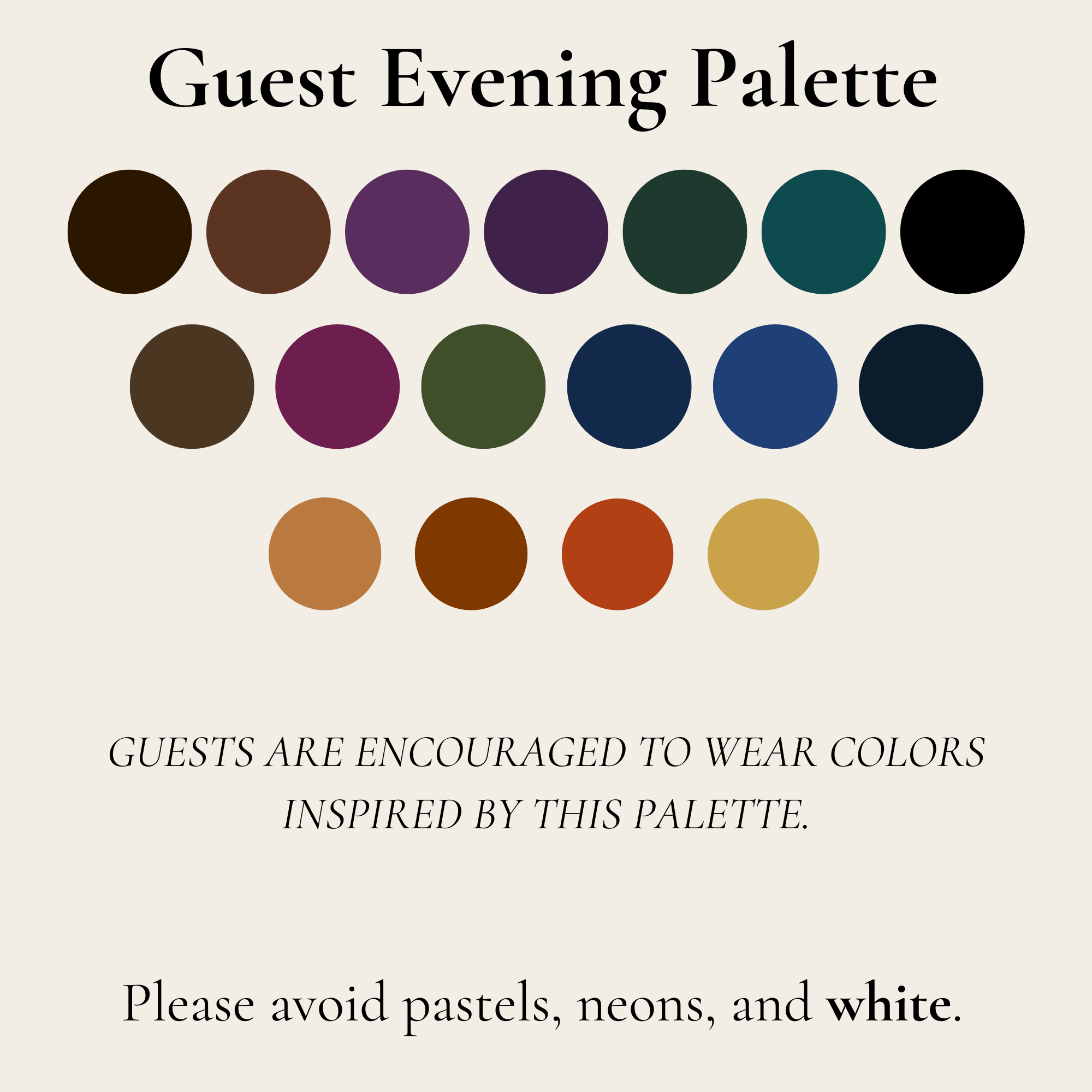 Here you’ll find everything you need to plan your beautiful outfit—color palette, style inspiration, and helpful tips to dress like it’s your best night out (photos guaranteed!). We can’t wait to celebrate with you, dressed up and in style.