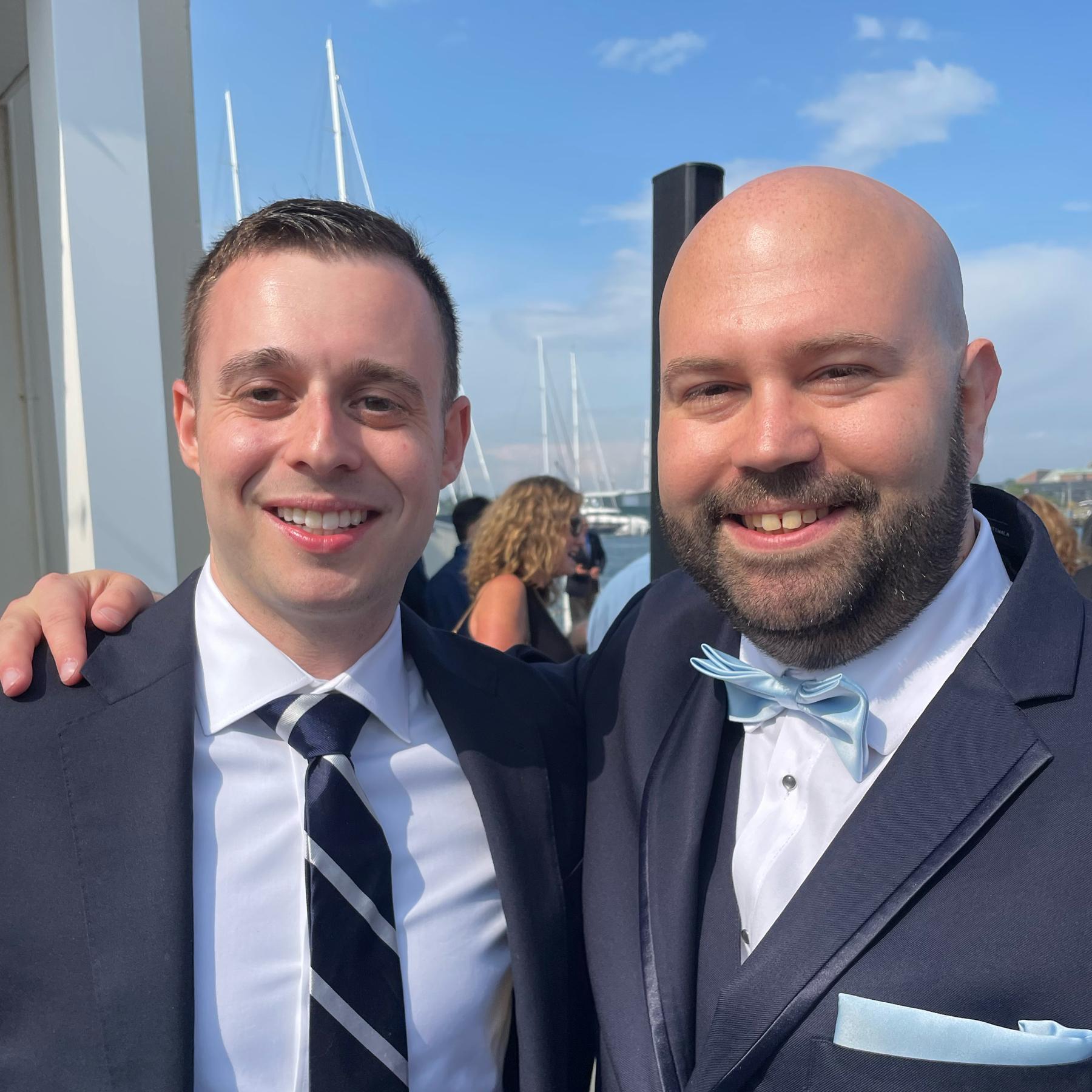 The officer! We met in high school freshman English Class where I learned about his family and had a strong connection. We then went to college together. I taught Halim how to make his first screwdriver. He has two dogs and they walked down the aisle at his wedding in June 2023.