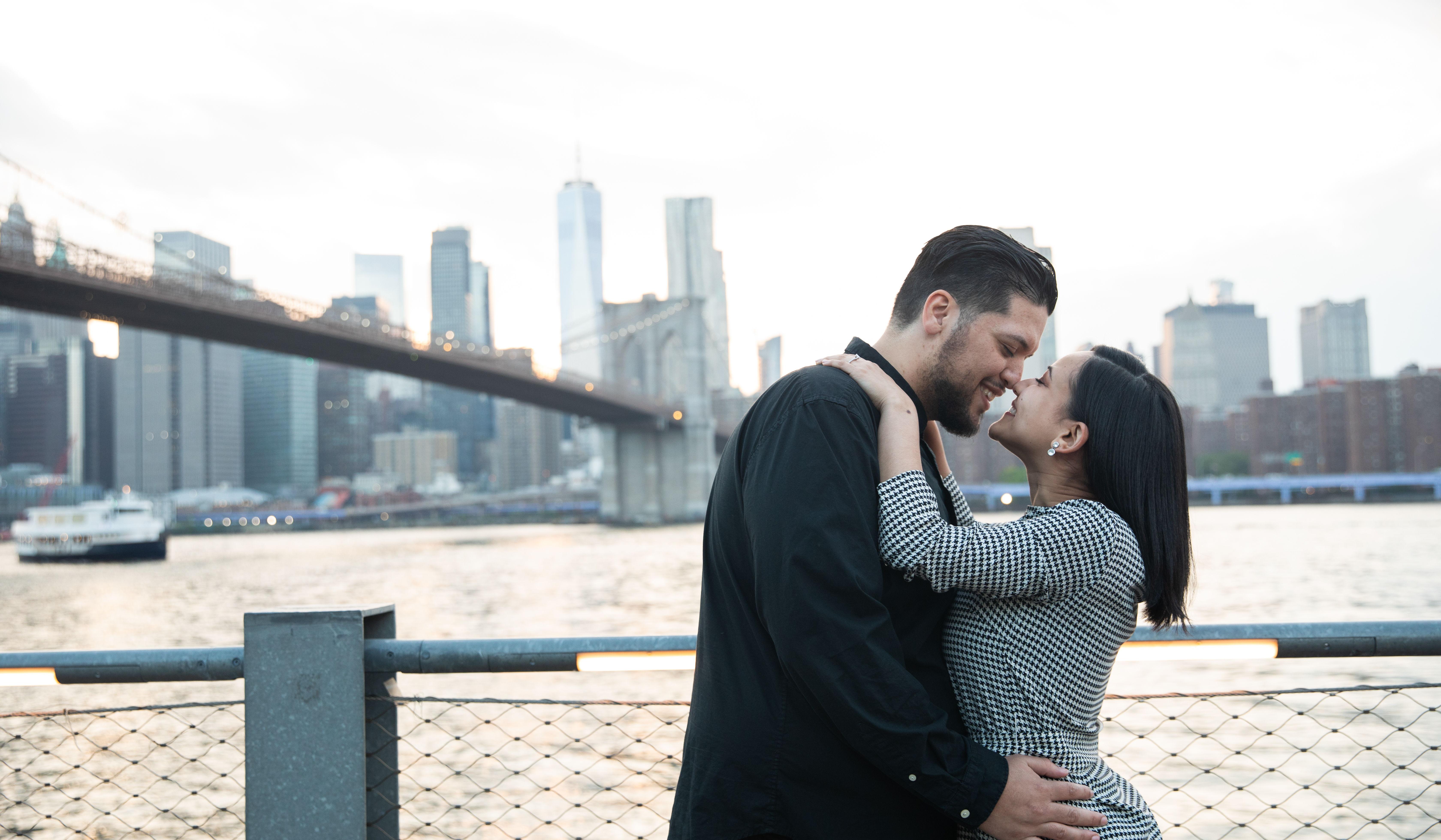 On May 19, 2022, what was supposed to be a regular dinner date to a new steakhouse took a turn to Brooklyn Bridge. We walked by the river, where Bryan found the perfect spot to get on one knee, showed Arlene her dream ring and asked her to marry him. Of course she said yes (she had been saying yes before being asked), strangers cheered and a photographer sneakingly took pictures of the moment. Bryan knew a photoshoot would seal the deal. And yes we did have that steak afterwards.