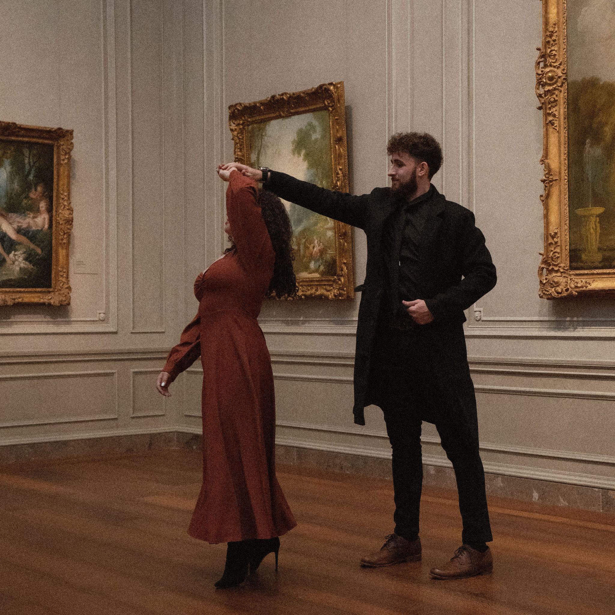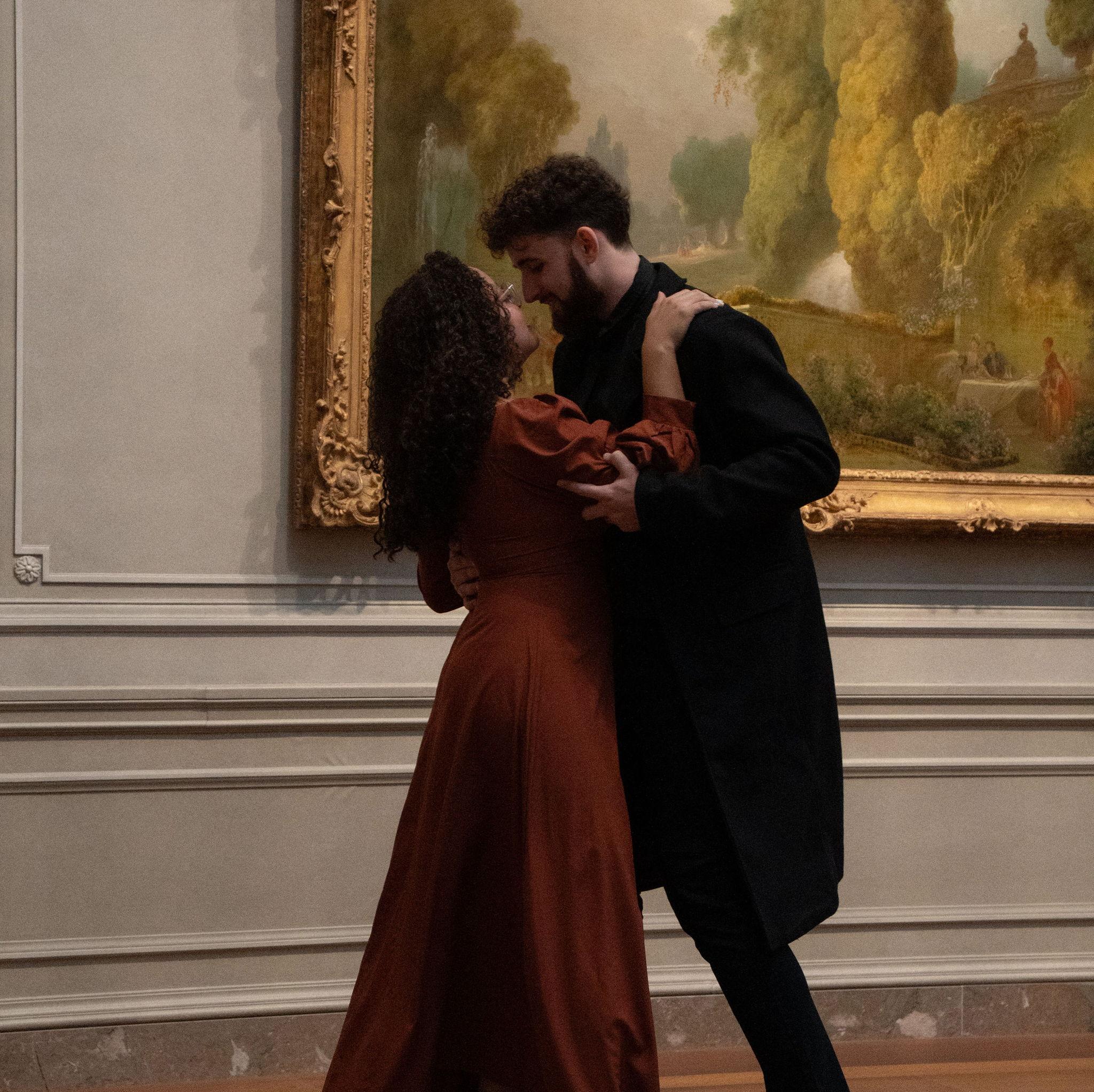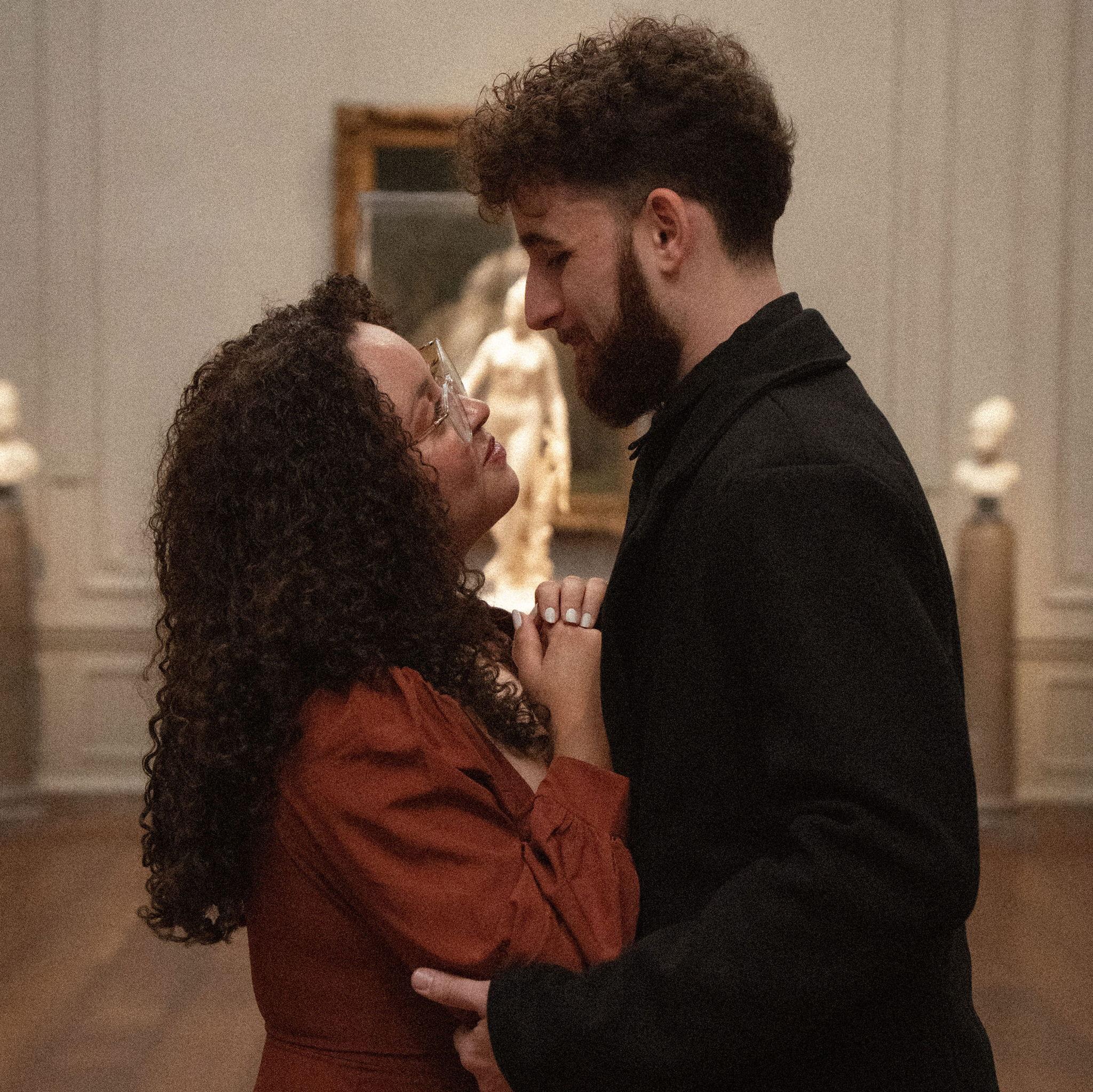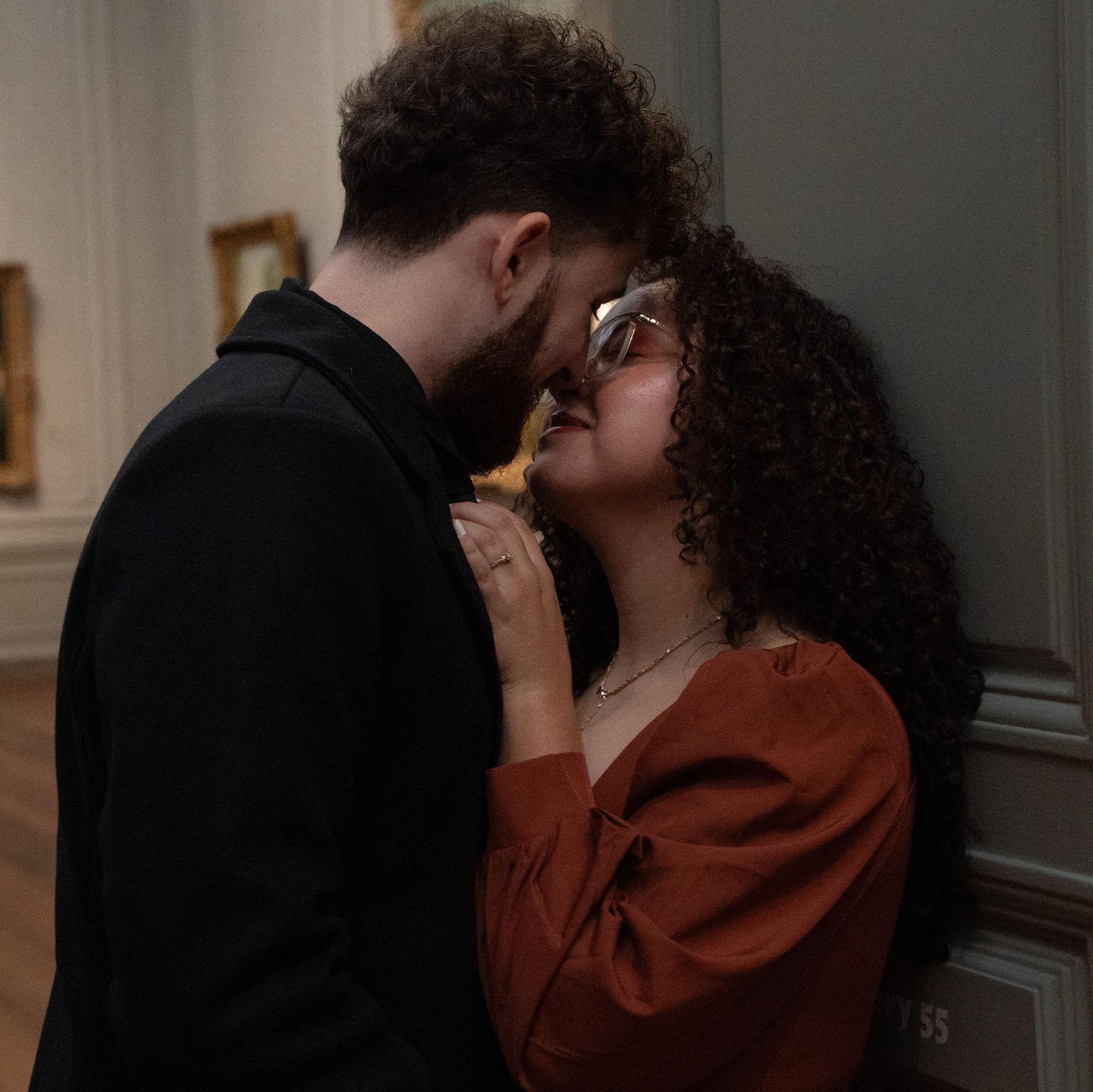 Among paintings older than time, they stood as if carved from the same golden light. In the quiet hush of the museum, where every frame holds a thousand forgotten stories, their bodies wrote a new one. It wrote softly, slowly, like a brushstroke finding its place. She leaned into him as if gravity itself pulled her toward his warmth, and he held her as though the whole room existed only to witness the gentle way love settles between two hearts.