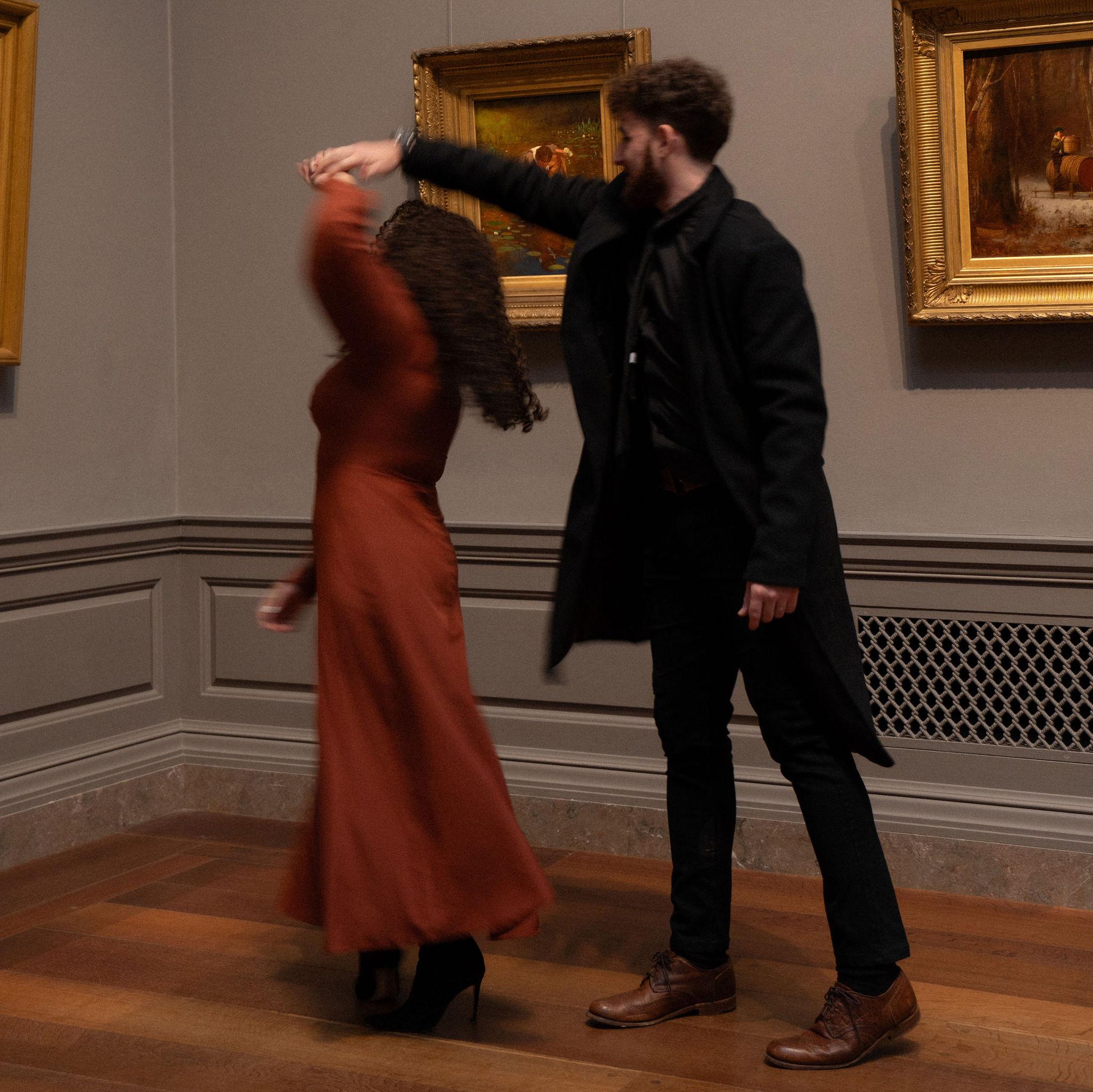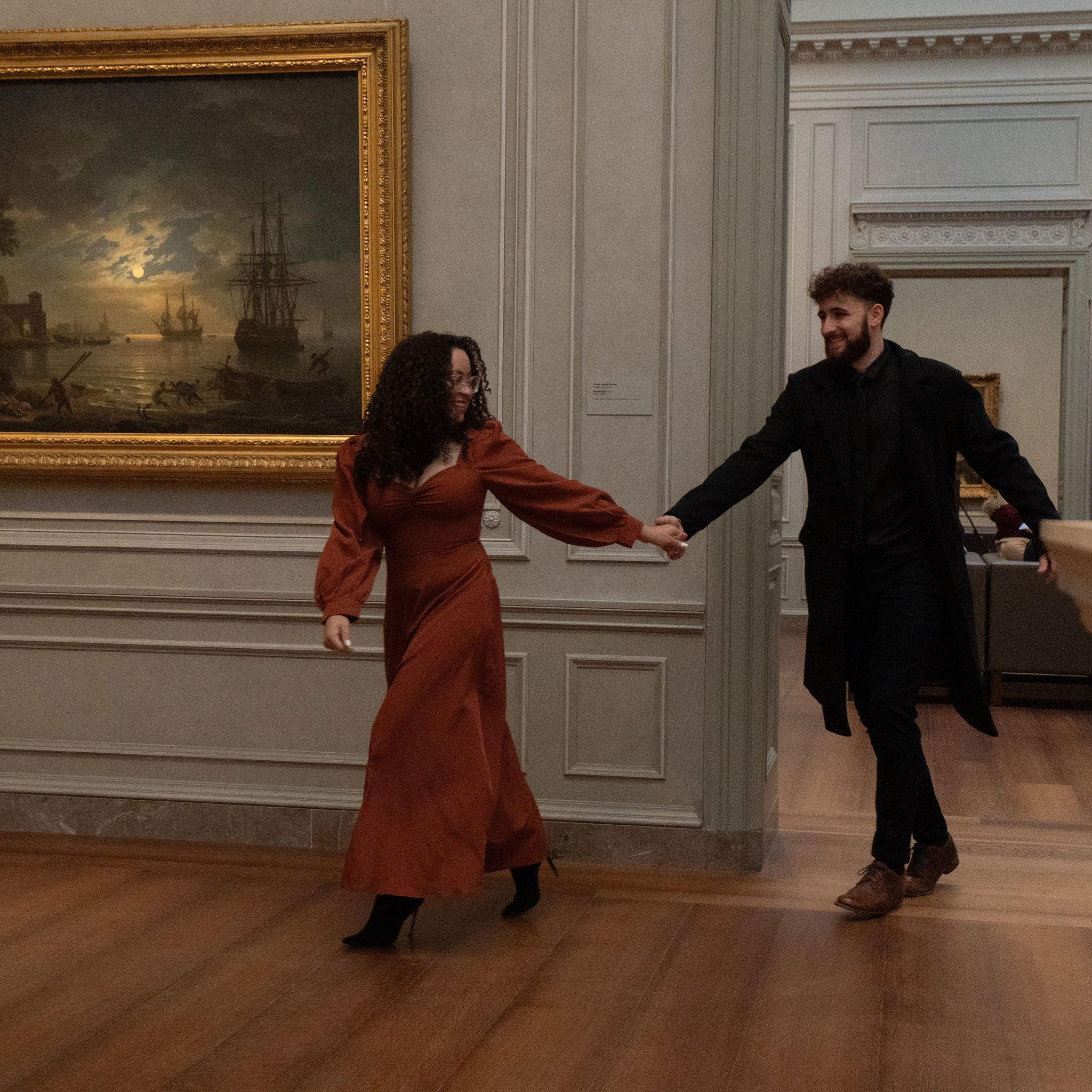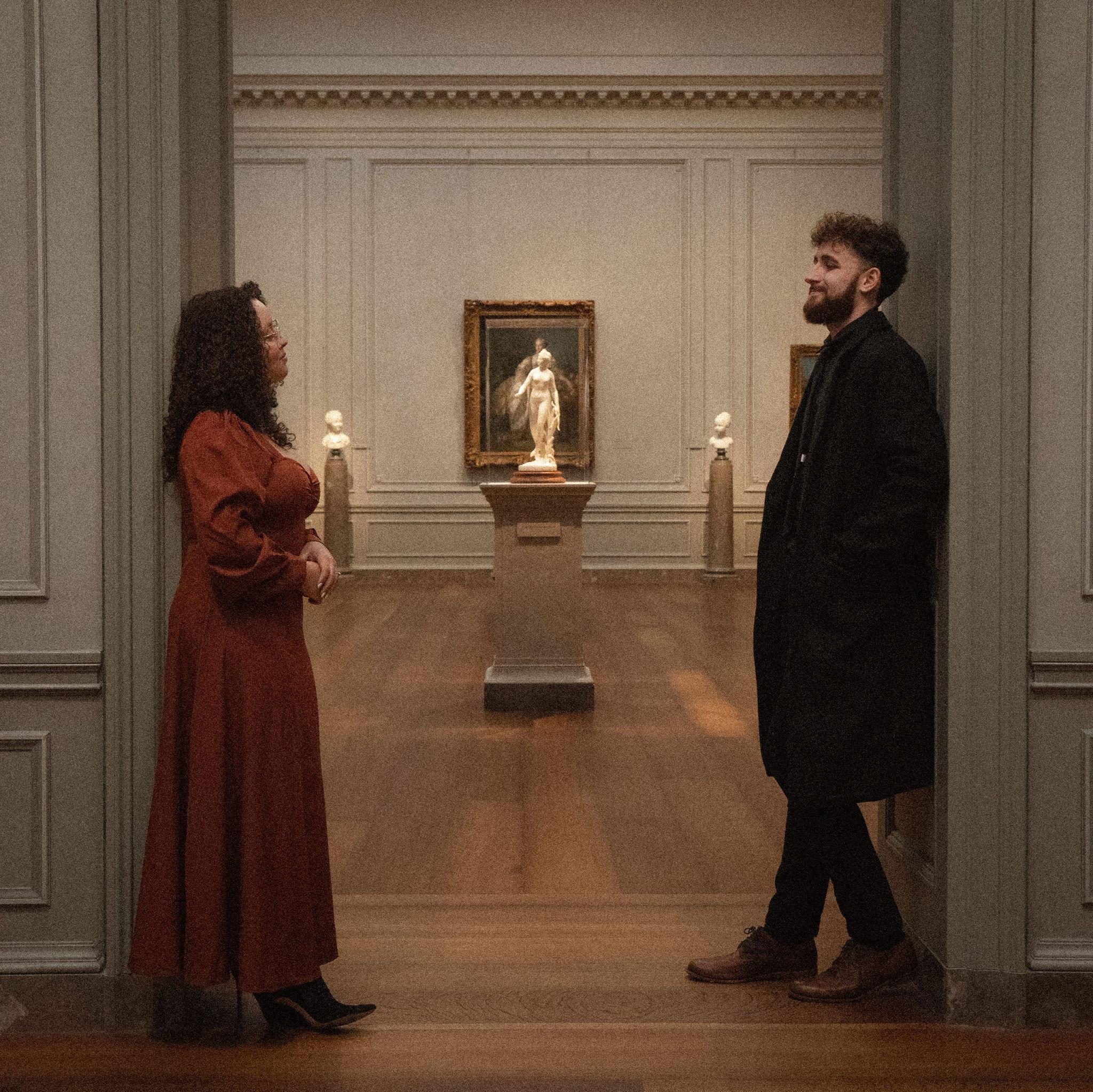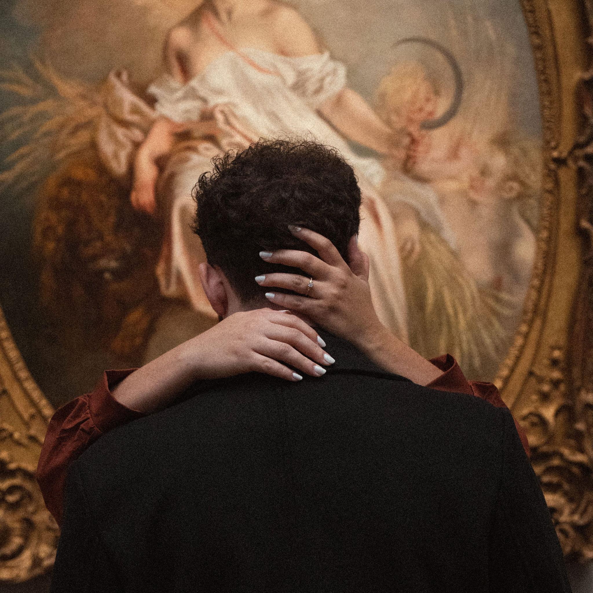 Among paintings older than time, they stood as if carved from the same golden light. In the quiet hush of the museum, where every frame holds a thousand forgotten stories, their bodies wrote a new one. It wrote softly, slowly, like a brushstroke finding its place. She leaned into him as if gravity itself pulled her toward his warmth, and he held her as though the whole room existed only to witness the gentle way love settles between two hearts.