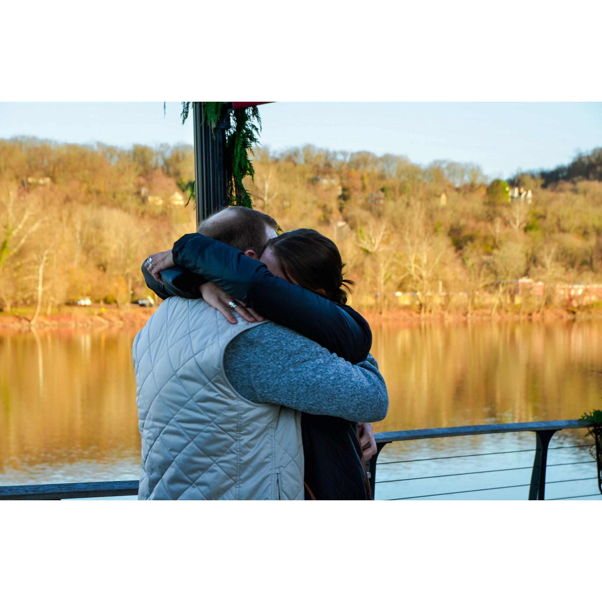 The moment Ashley realized that the random woman taking pictures of the river was actually there to take pictures of us