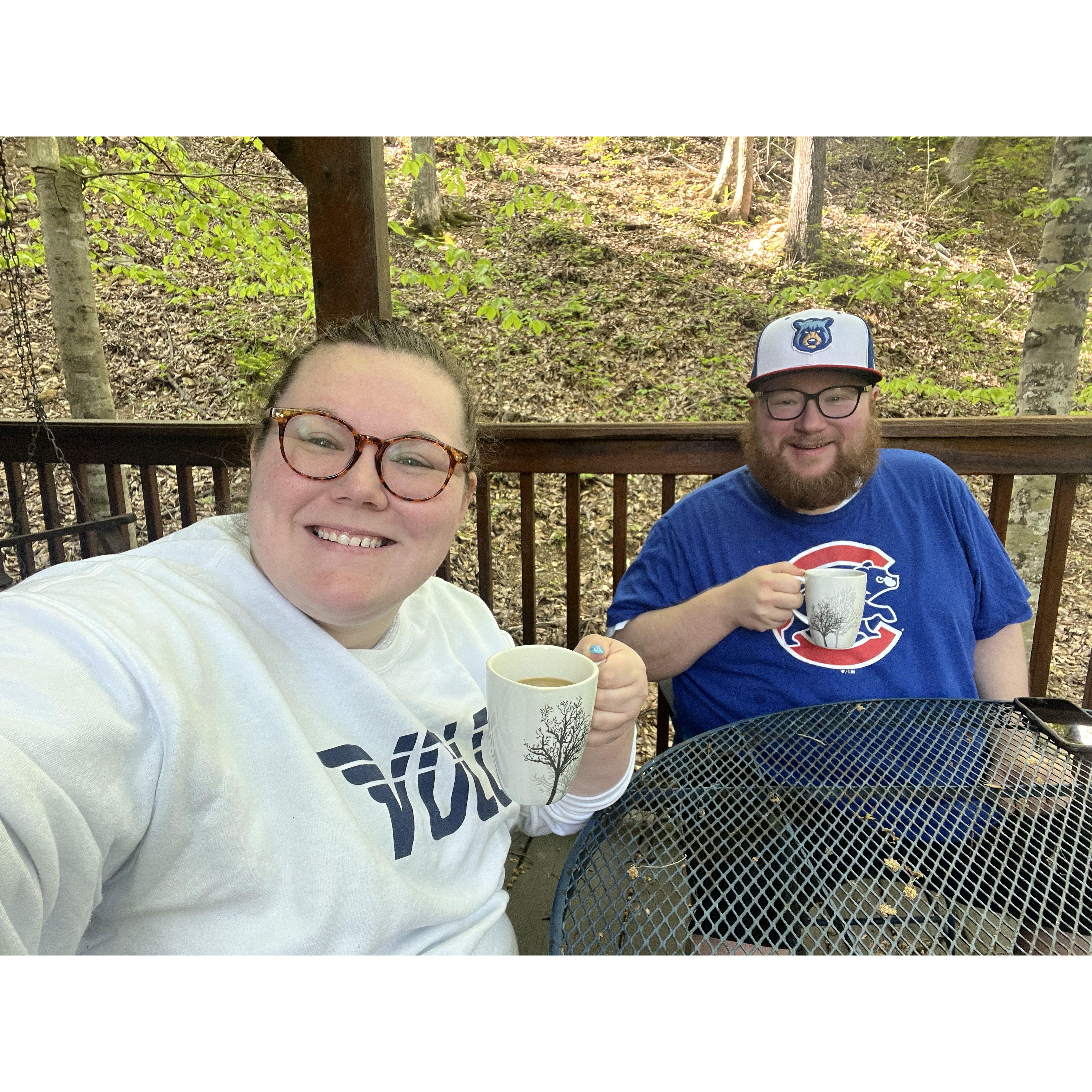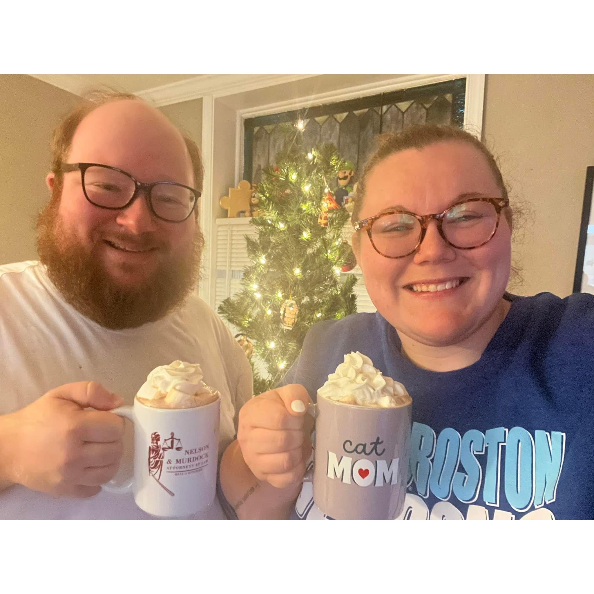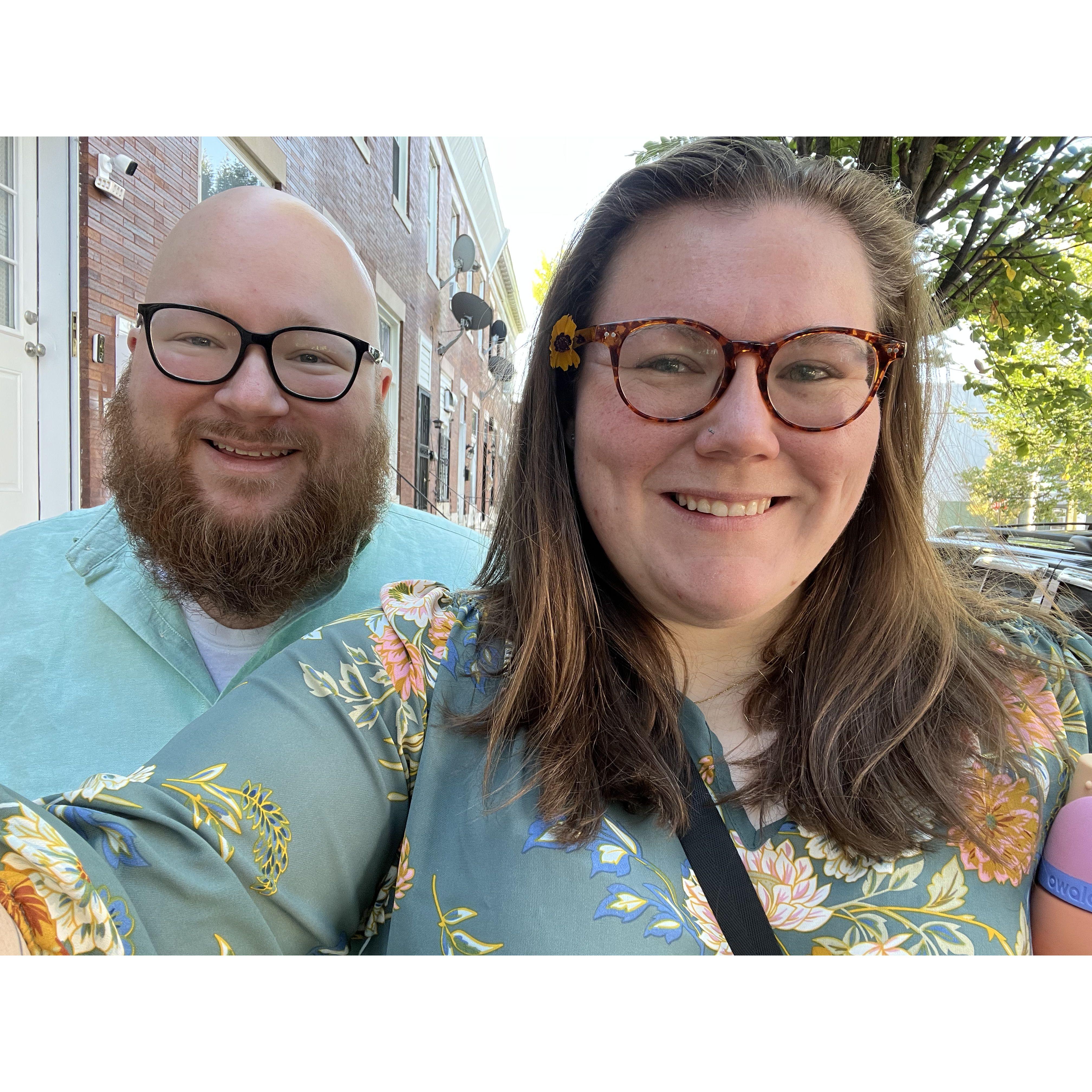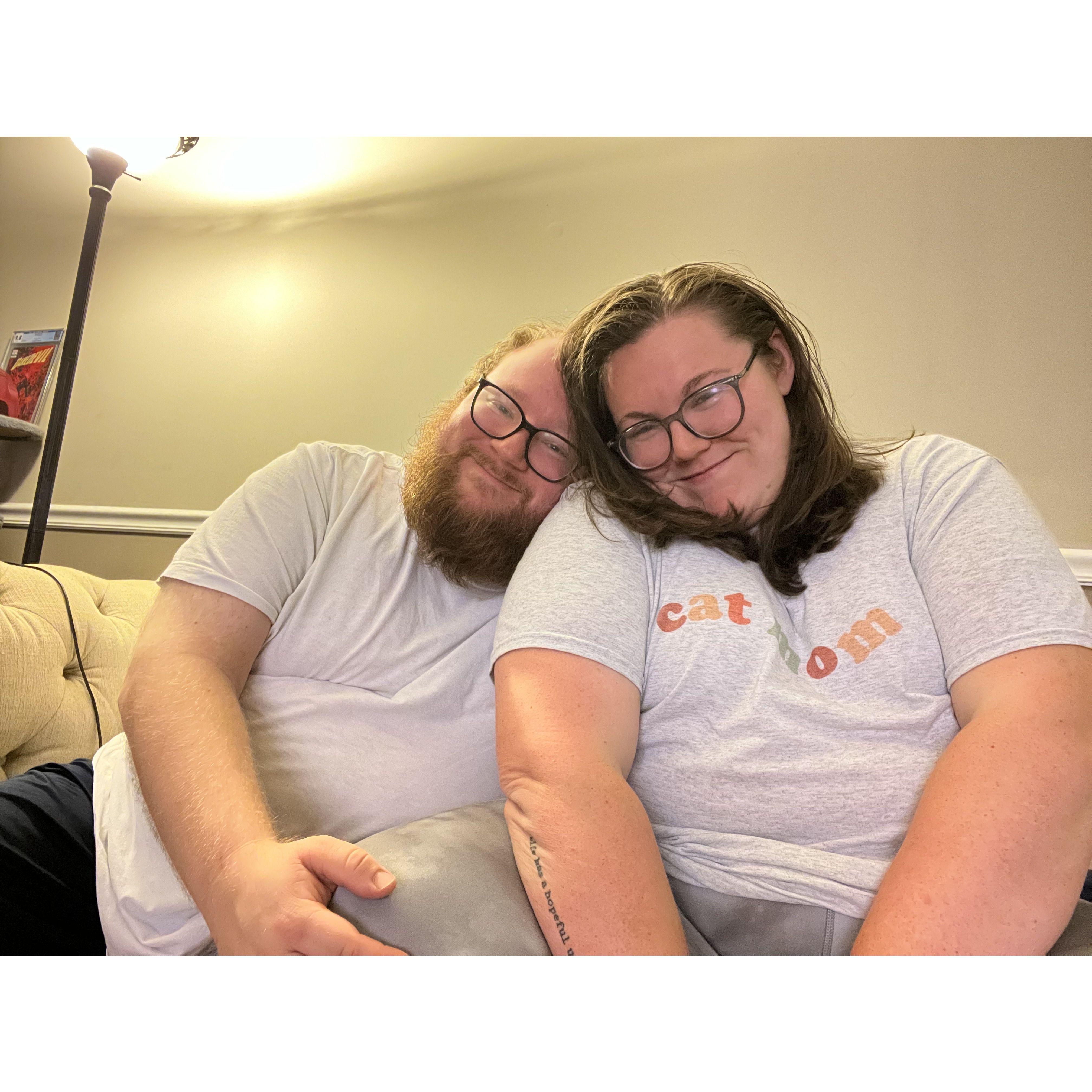 Our first picture together, watching the Eagles advance in the playoffs