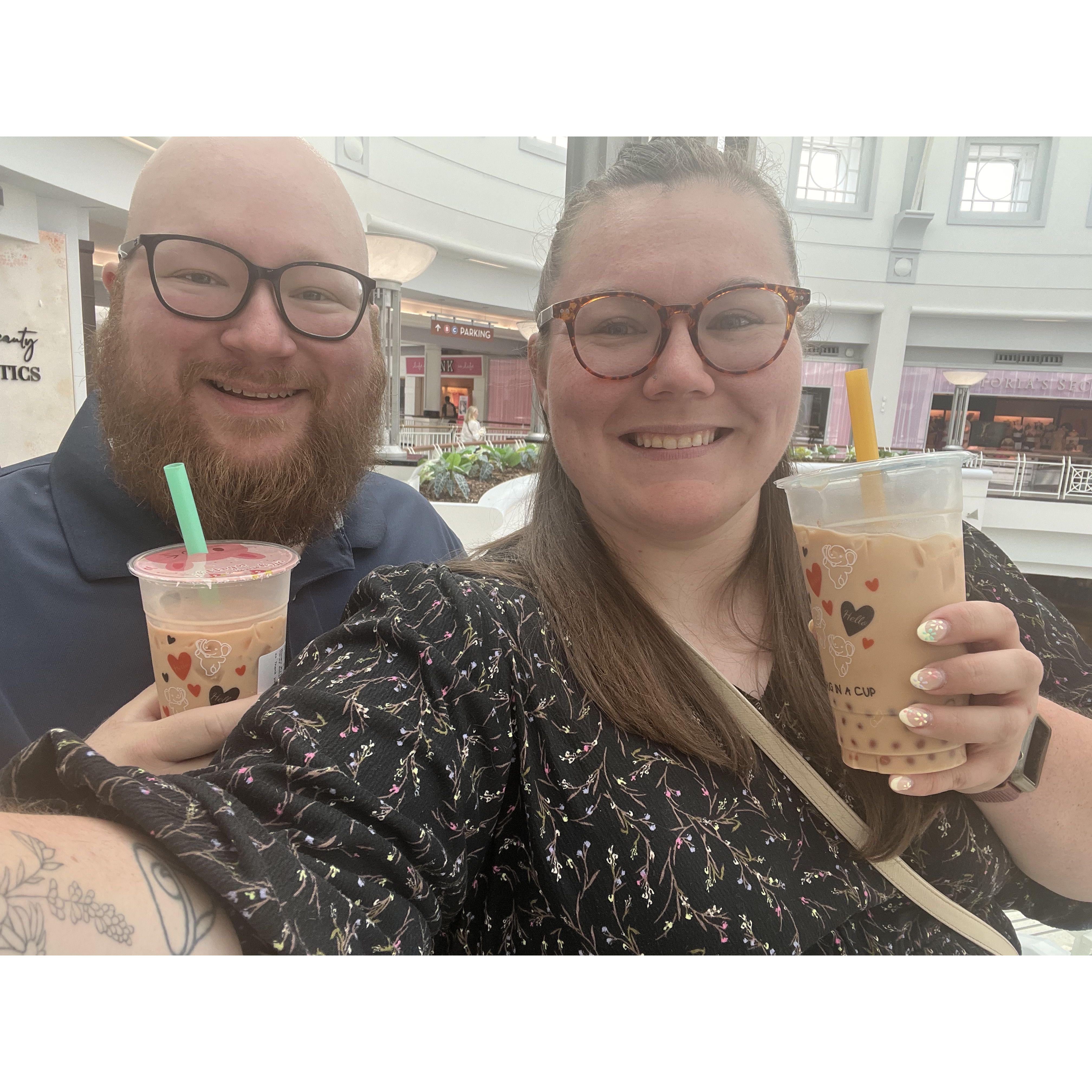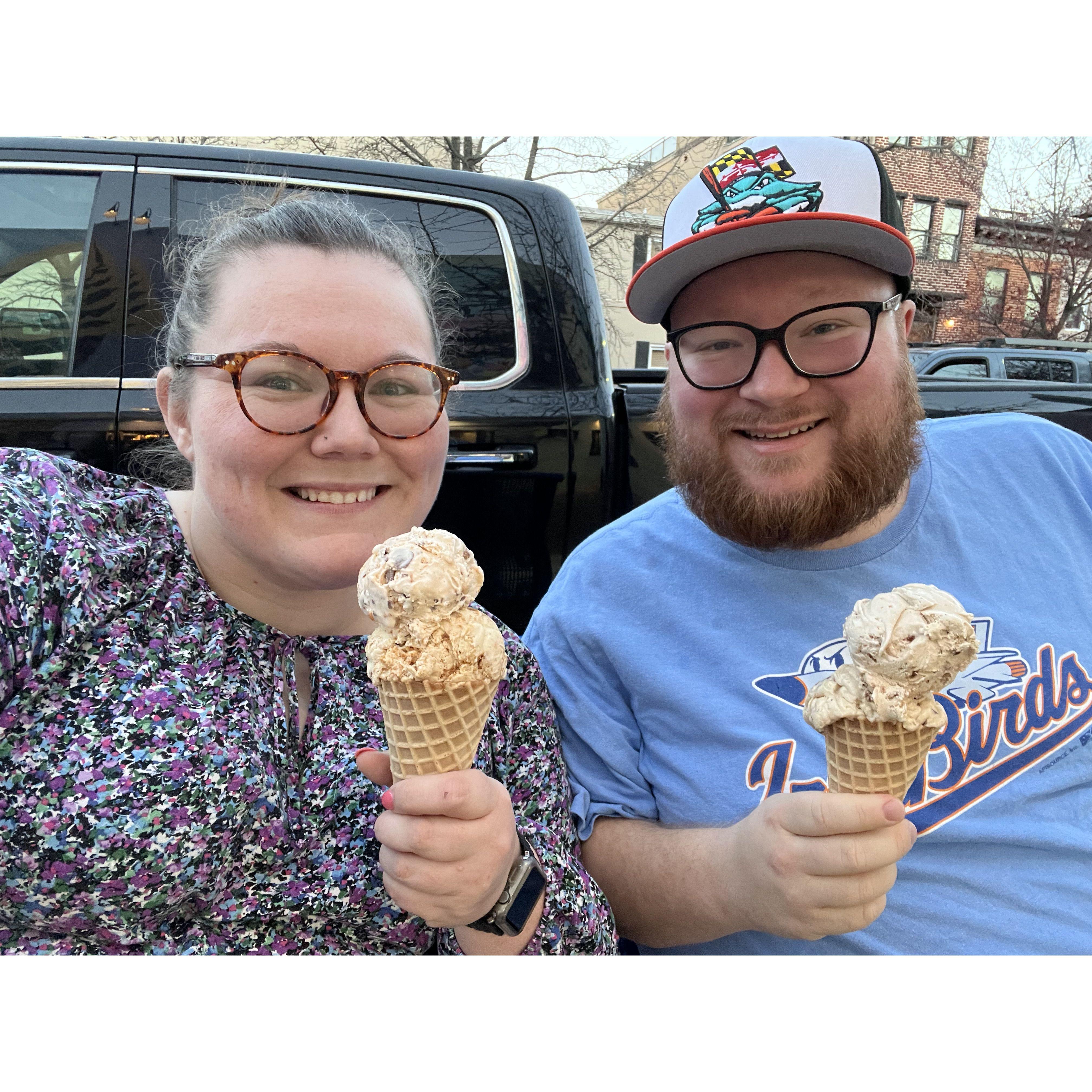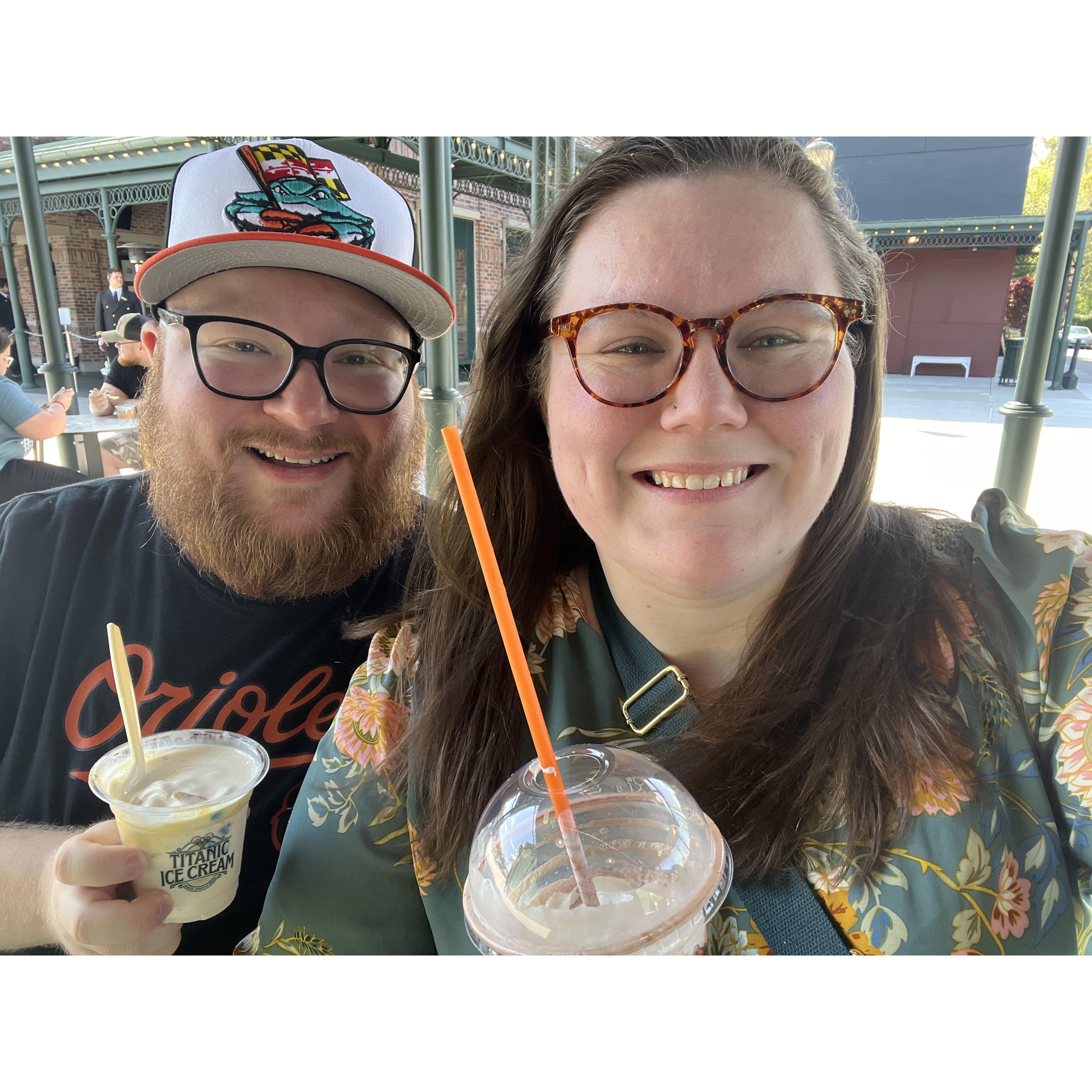 At our favorite place - Slainte Irish Pub in Fells Point. Fun fact this was where we had our first date.
