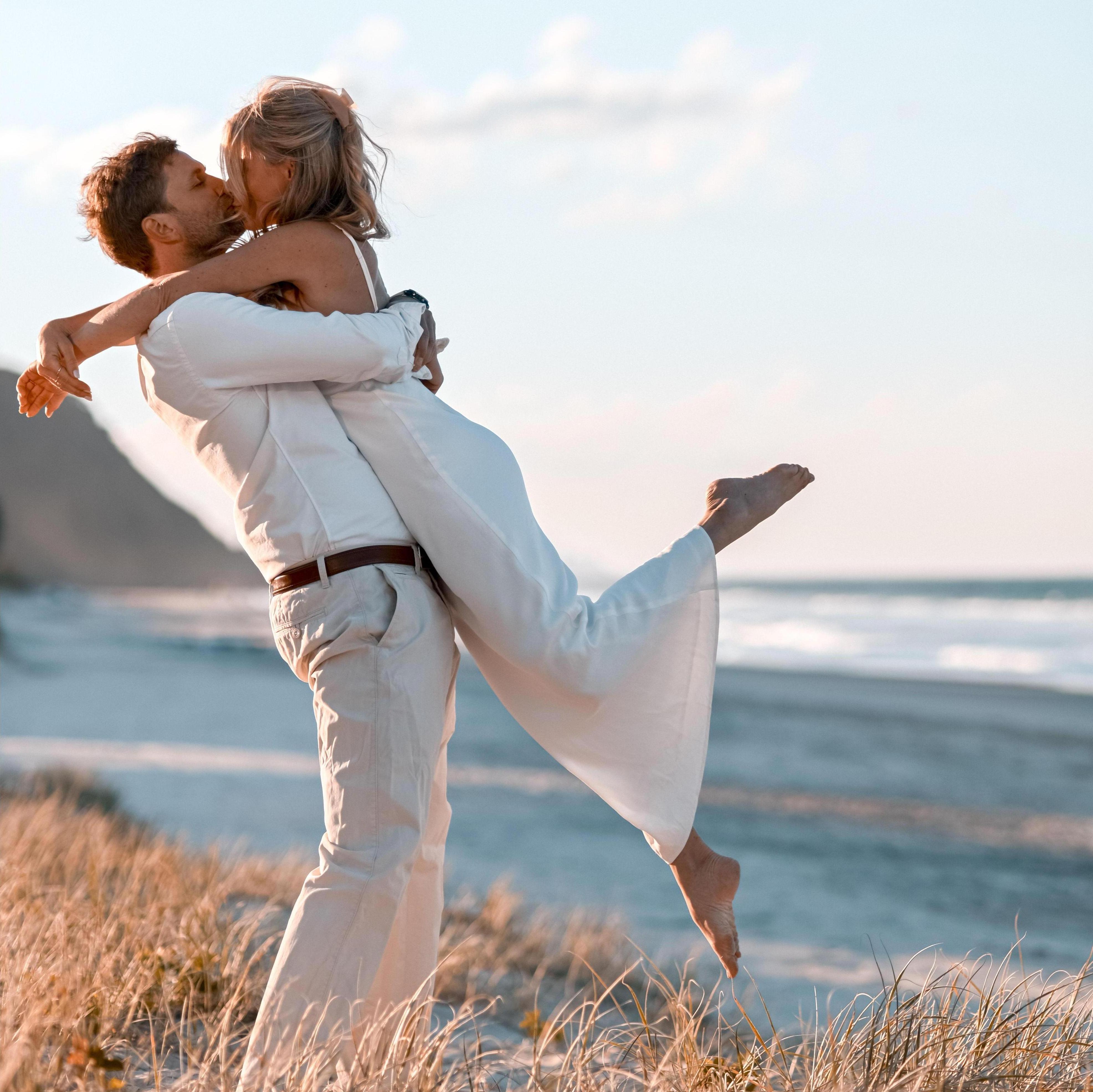Our first road trip, before we were officially a couple. This moment also caused us a hefty fine cause dogs weren't allowed on the beach. Oops!