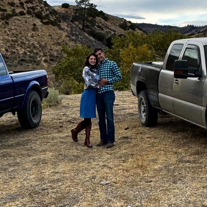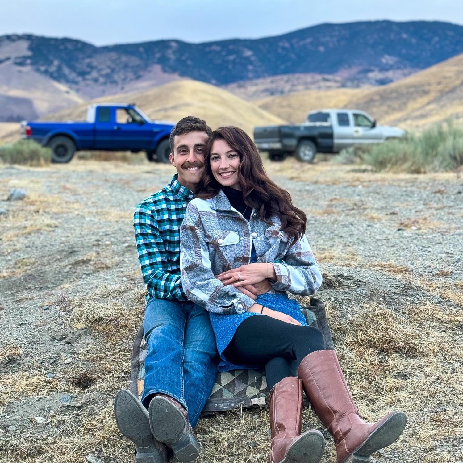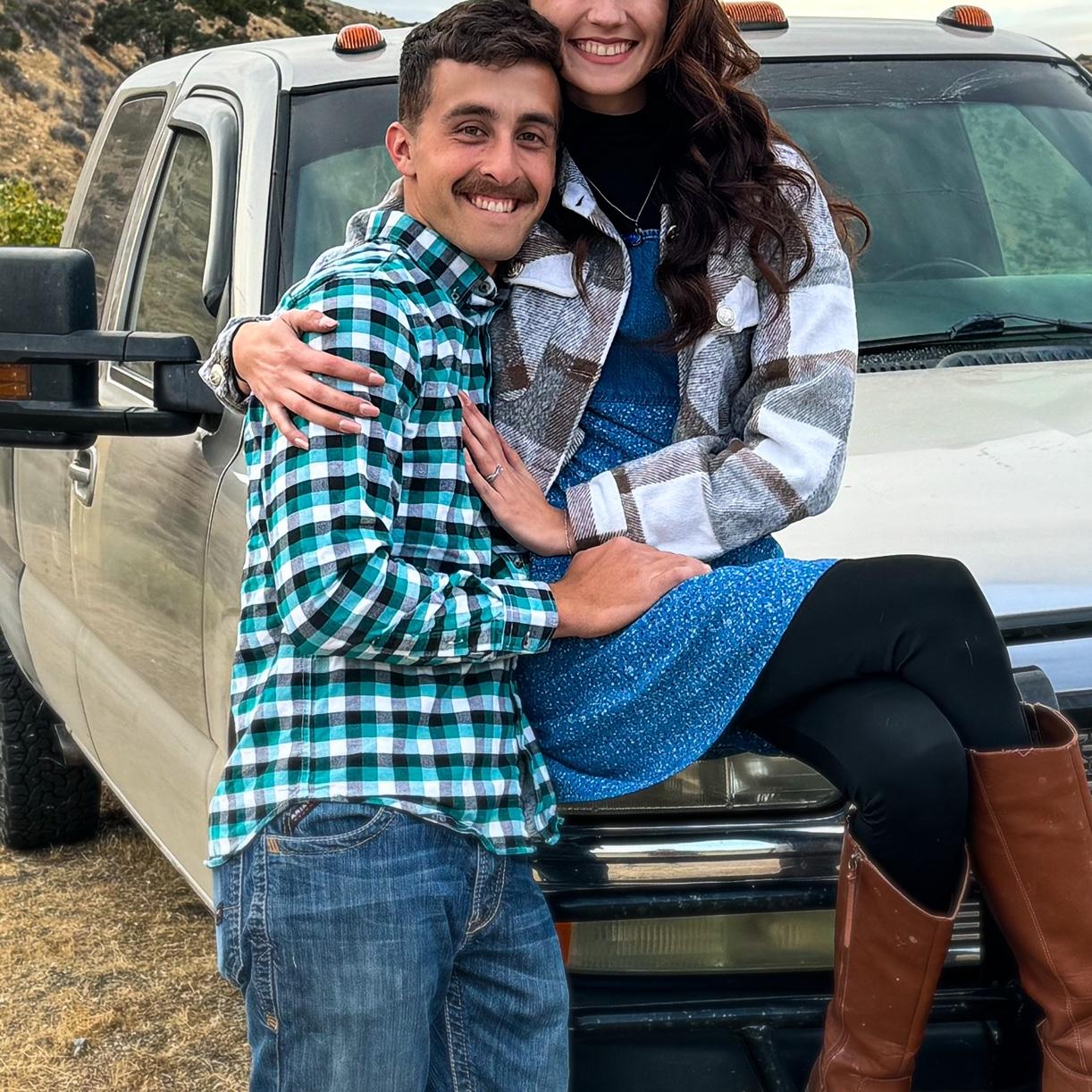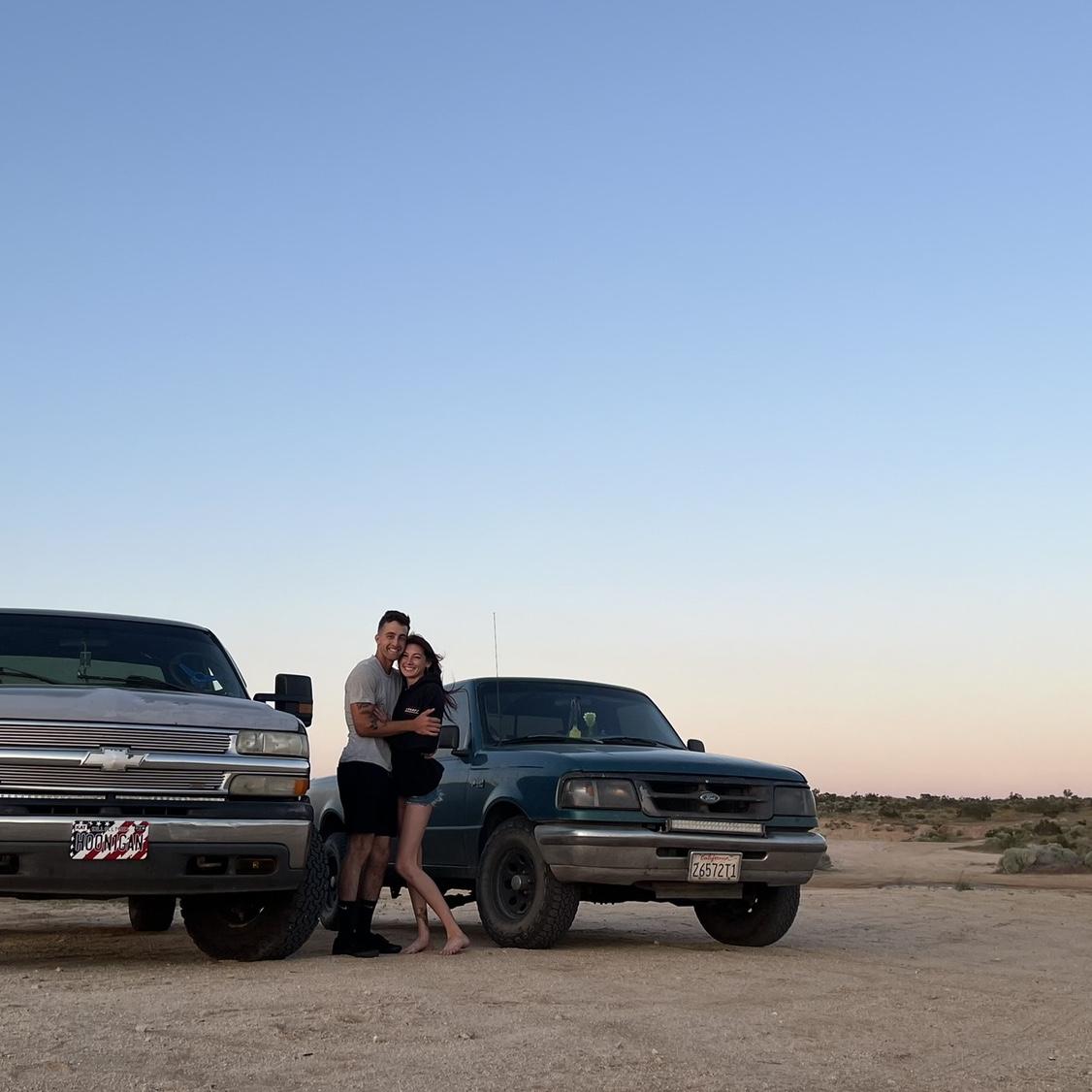 With our first trucks. His Chevy Dusty and my Ranger Bug