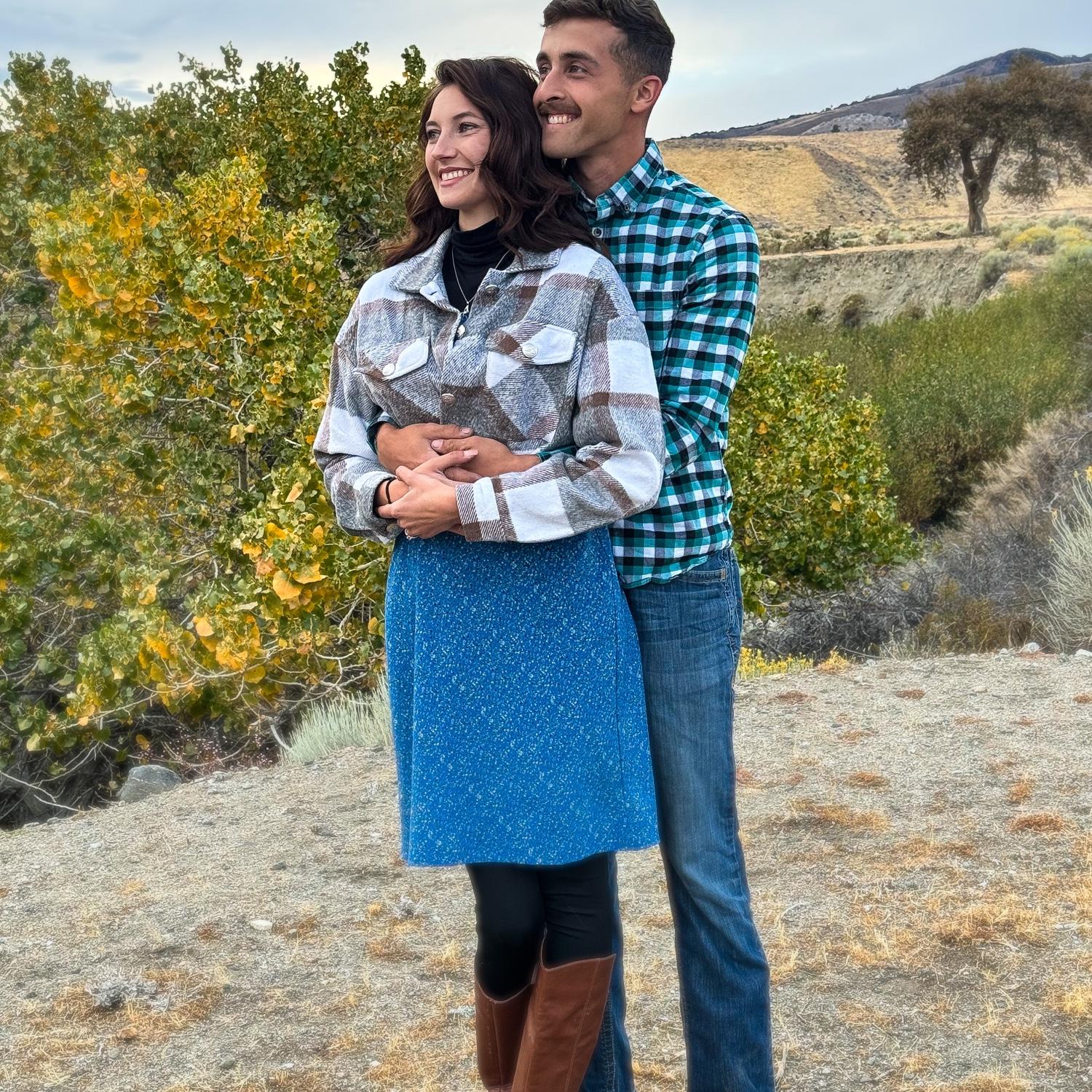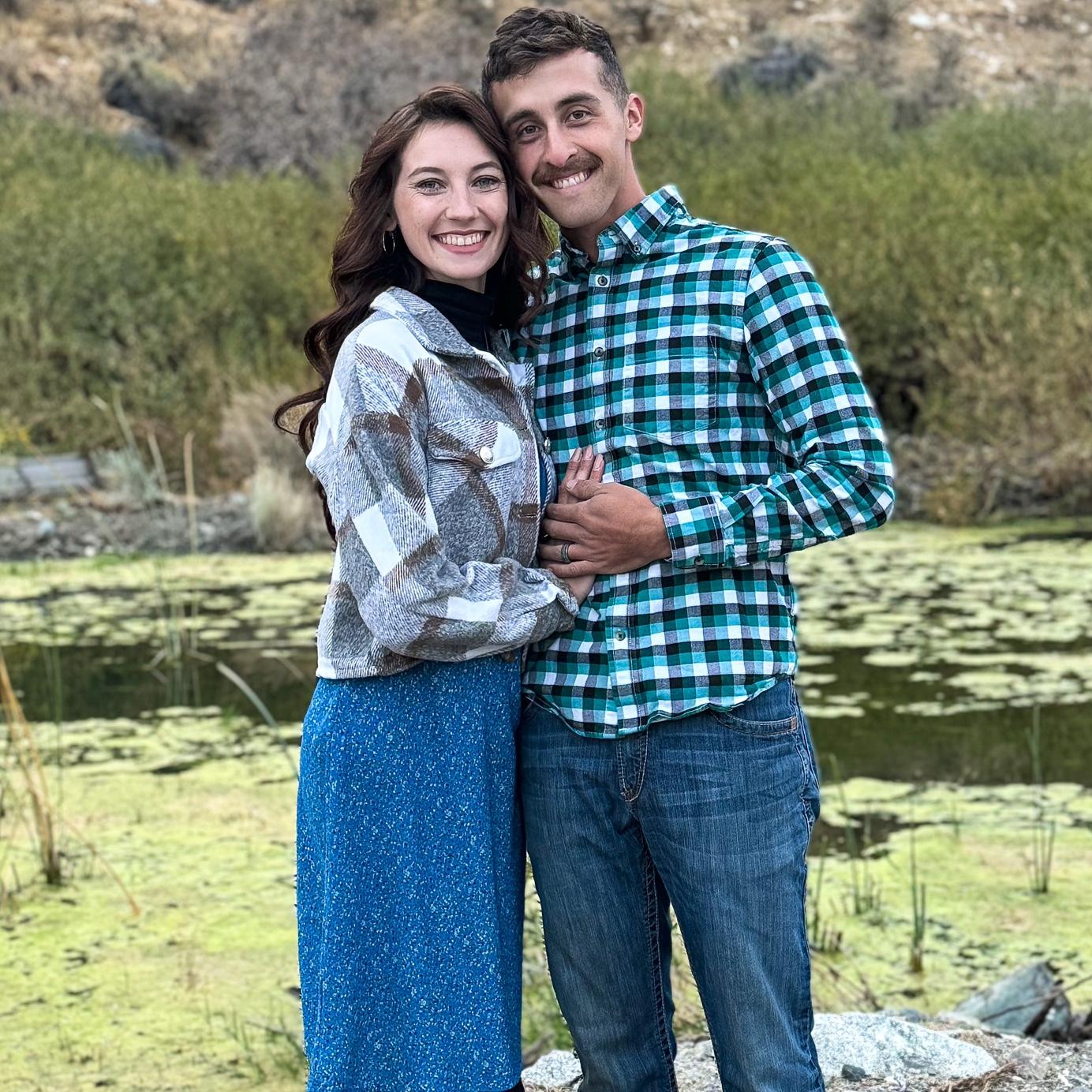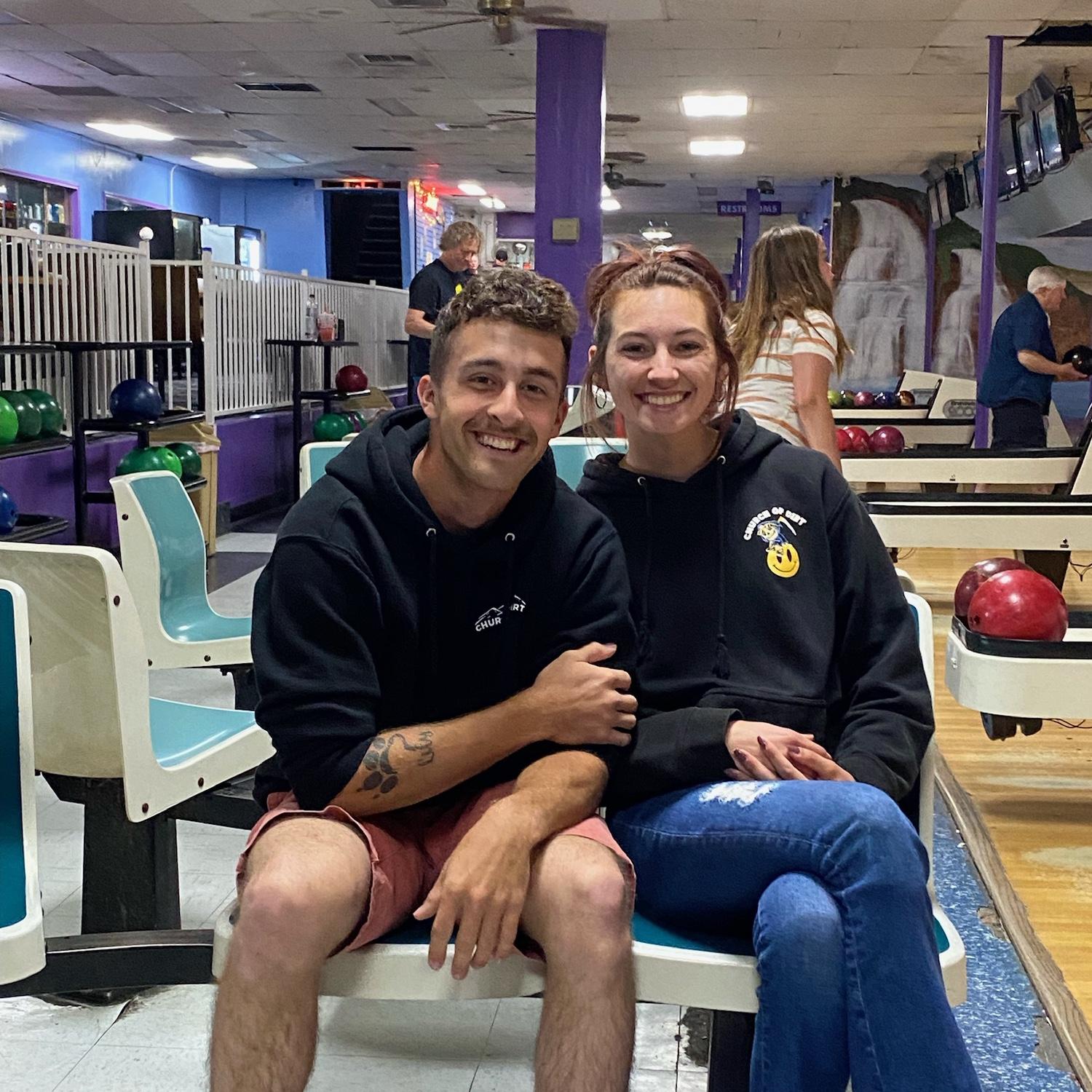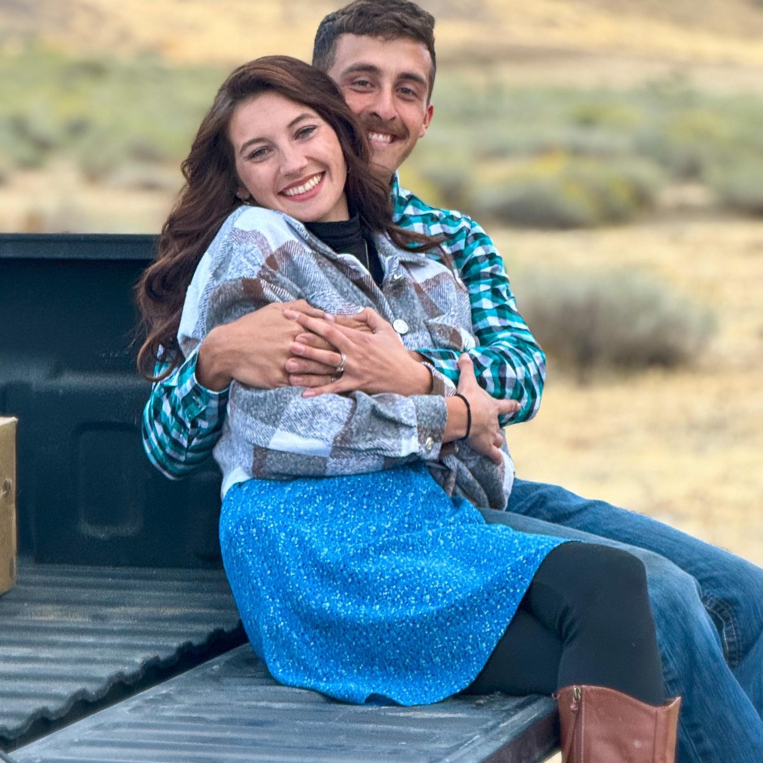 With our first trucks. His Chevy Dusty and my Ranger Bug