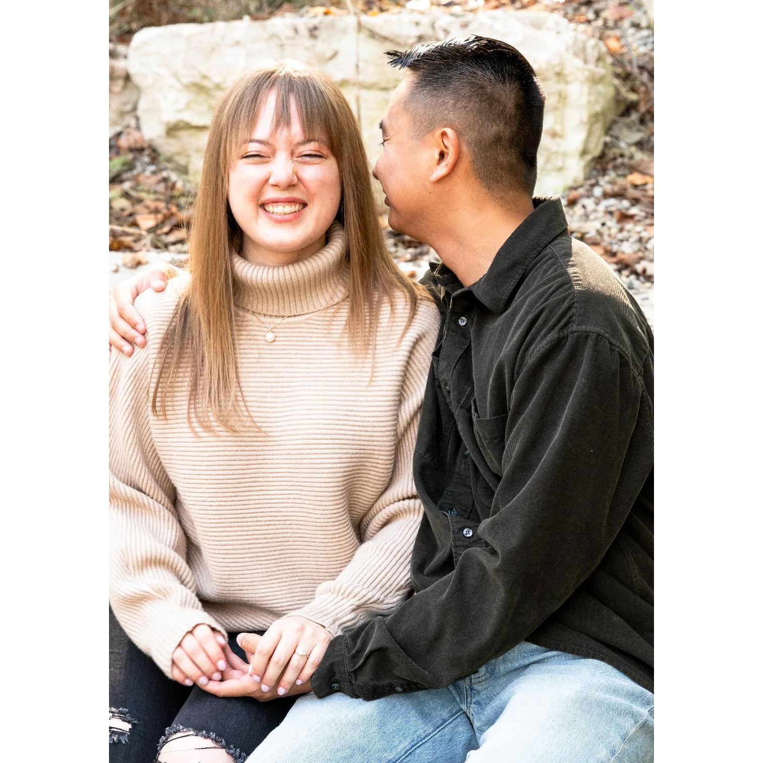 Aziel and Alex’s official story goes back to Halloween 2022, but their relationship began way before then. Aziel and Alex met in Dayton, Ohio where they attended the same church. In fact, Aziel sat right next to Alex on his first day at Berean Baptist Temple in 2021! From there, they became friends: often attending the same young adults events at church and even running into each other at work at Wright-Patterson AFB.