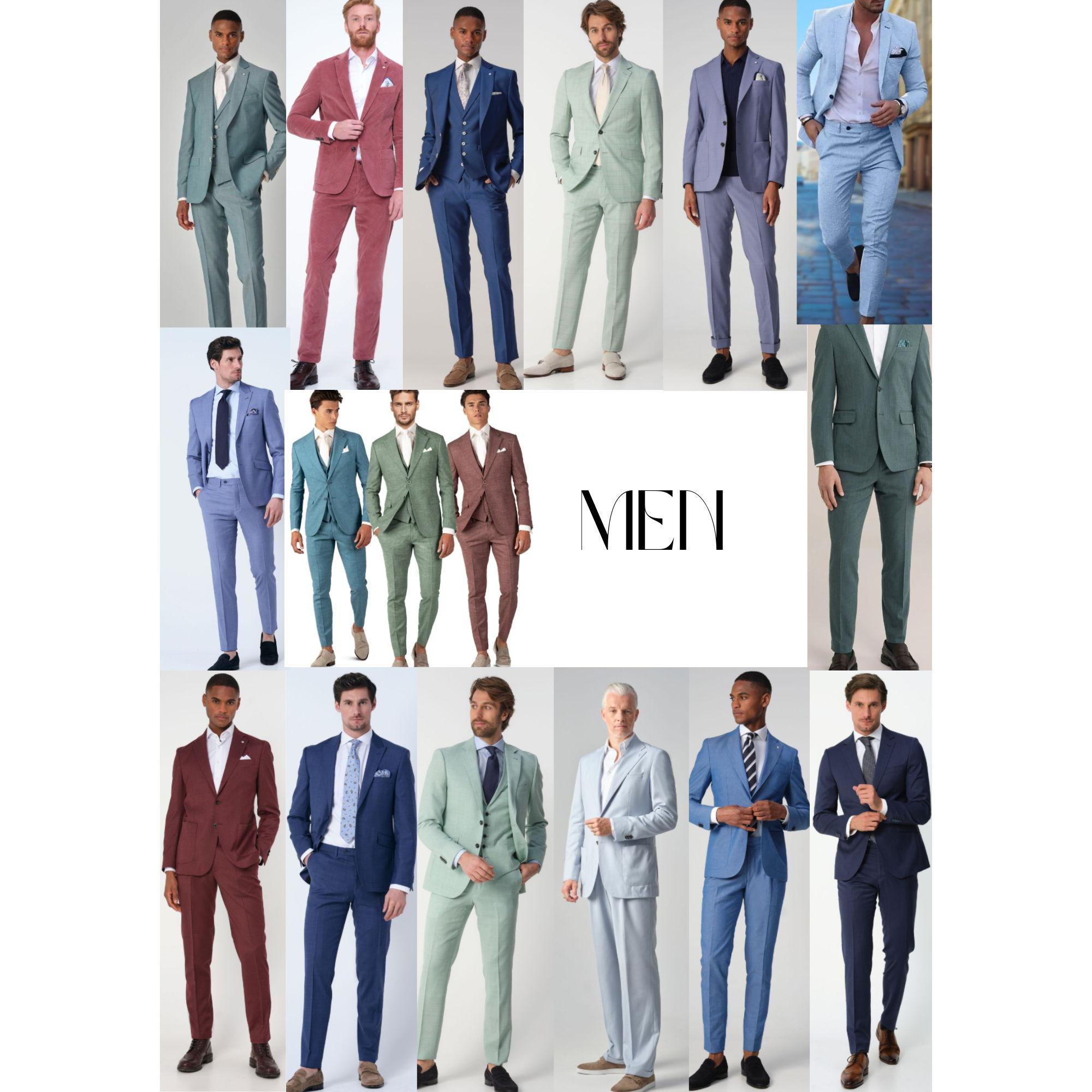 Heren dragen een pak met een vlinderdas of stropdas. Ook hier vragen we om kleur, waarbij donkerblauw wel is toegestaan en vermijden we zwart, wit, beige, grijs, bruin en felrood.
