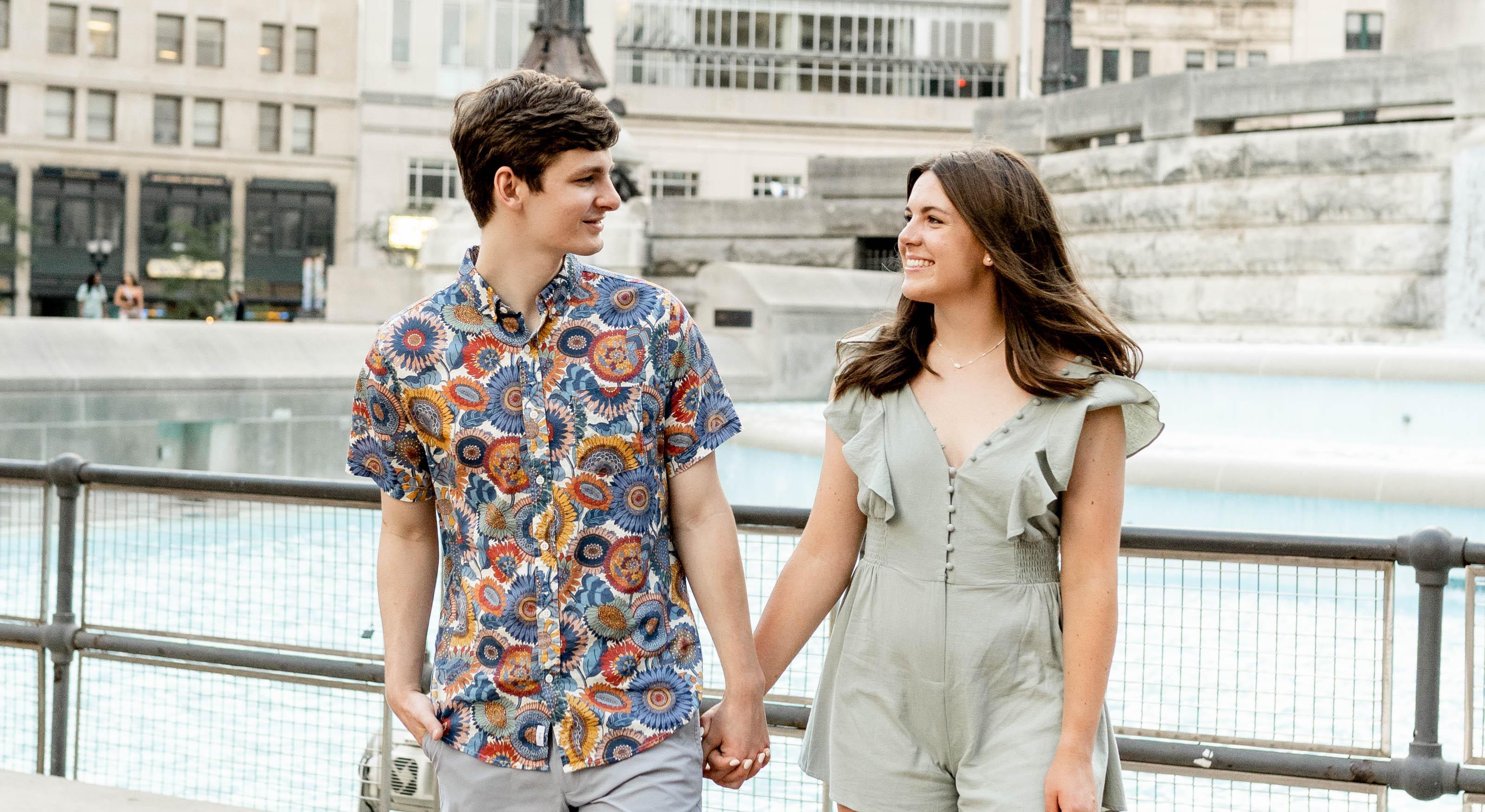 The way to Becca's heart is through food so naturally, Caleb asked her to have a nice dinner with him downtown but wouldn't tell her where they were going. Becca got ready for their date and it wasn't until they were minutes away that he told her where they were eating: Harry & Izzy's, a steakhouse in Indianapolis. While they were finishing up dinner, Caleb asked Becca if she'd like to go to Monument Circle to see if the Christmas Lights were still up. There they walked around until Caleb suggested they take a picture in front of the monument. In between takes, Caleb switched the camera over to video and started recording. After telling Becca how much he loves her and wants to spend the rest of his life with her, Caleb got down on one knee and pulled out the ring!