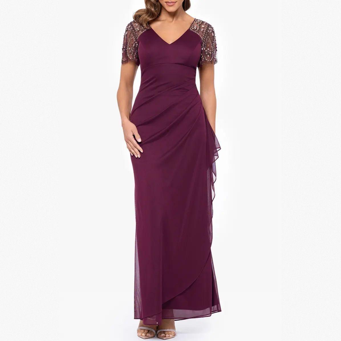 Ruched velvet dress with 3/4 sleeves