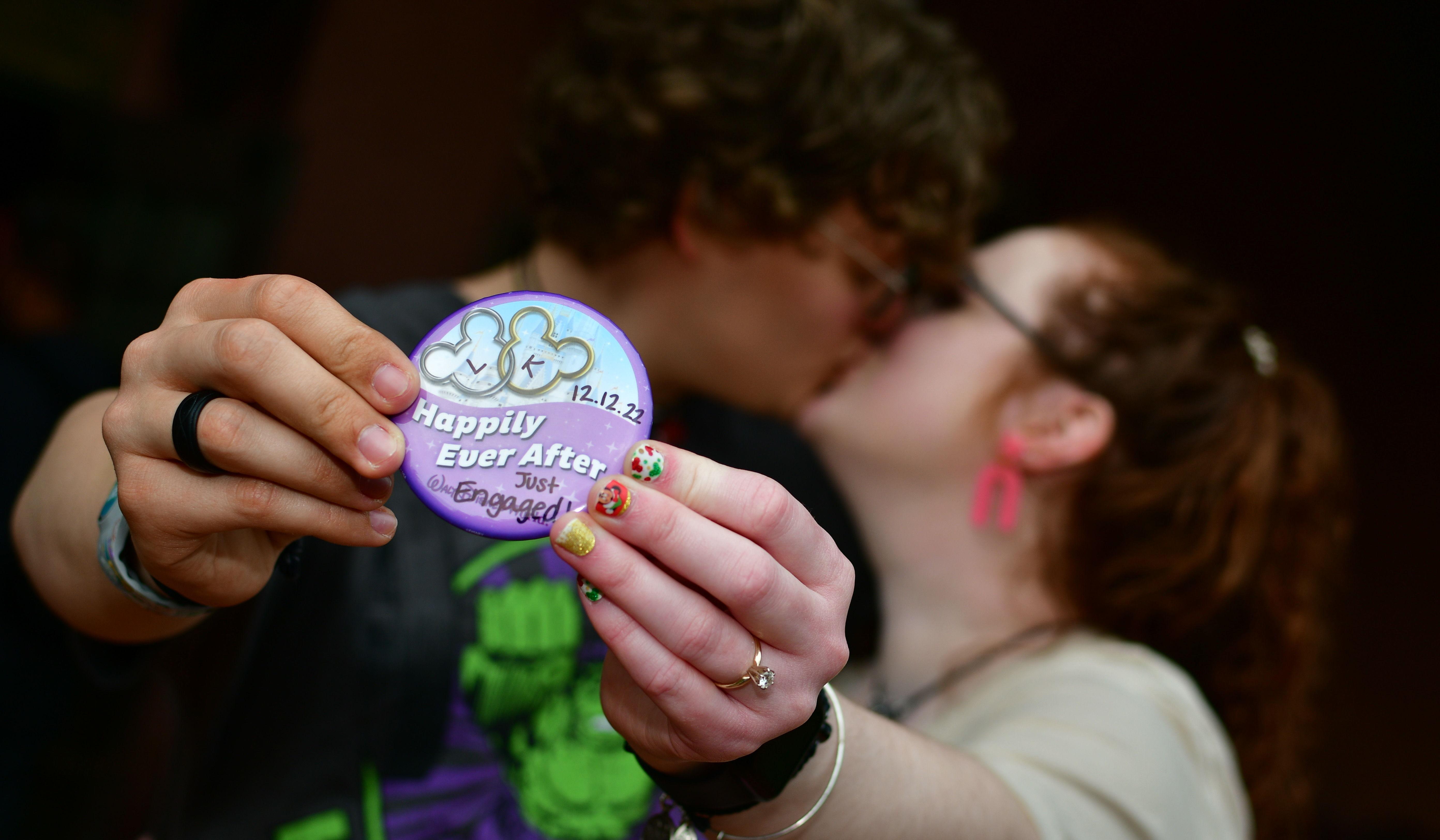 We had a class together when we were 17, in Kelsey's last semester of high school. Logan was a troublemaker in the back of the classroom, while Kelsey sat in the very front to take better notes. We met through a mutual friend, then began texting more, leading to finally hanging out outside of school. The teacher ended up sitting Logan up in the front with Kelsey, to keep him from chatting all class. We started dating on April Fool's Day (how romantic), and the rest is history! Logan proposed in Walt Disney World in 2022.