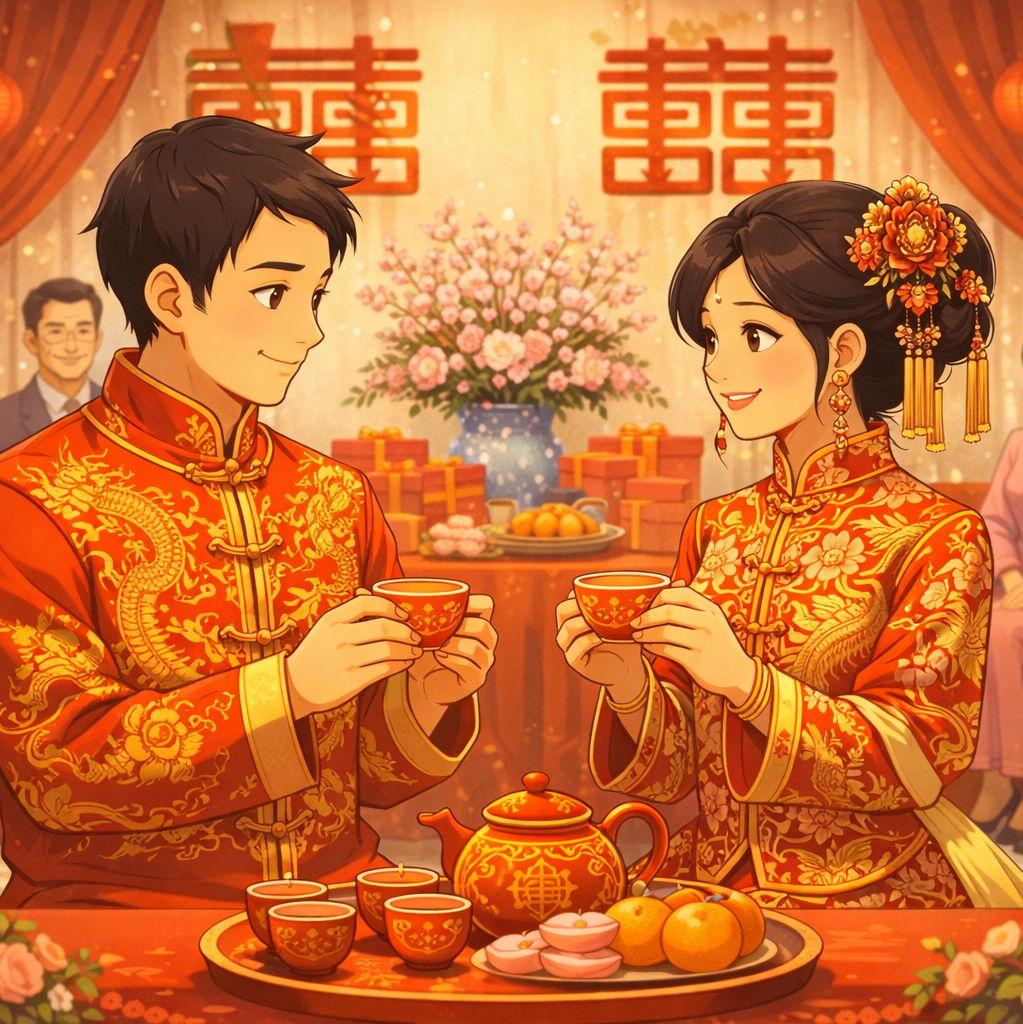 中式敬茶儀式係一個充滿意義嘅傳統,象徵感恩、尊重,以及兩個家庭嘅結合。喺儀式期間,新人會向父母同長輩奉茶,以表達對佢哋多年嚟嘅愛護、教導同祝福嘅感謝。長輩亦會回贈祝福同勉勵,為我哋展開人生新一頁送上美好祝願。 誠邀各位來賓以半正式服裝出席。歡迎穿著燕尾服同晚裝,亦可選擇西裝或雞尾酒裙。 敬茶儀式後,誠邀各位一同前往餐廳享用慶祝晚宴,繼續以美食、歡笑同珍貴時光,共同延續呢個喜悅嘅時刻