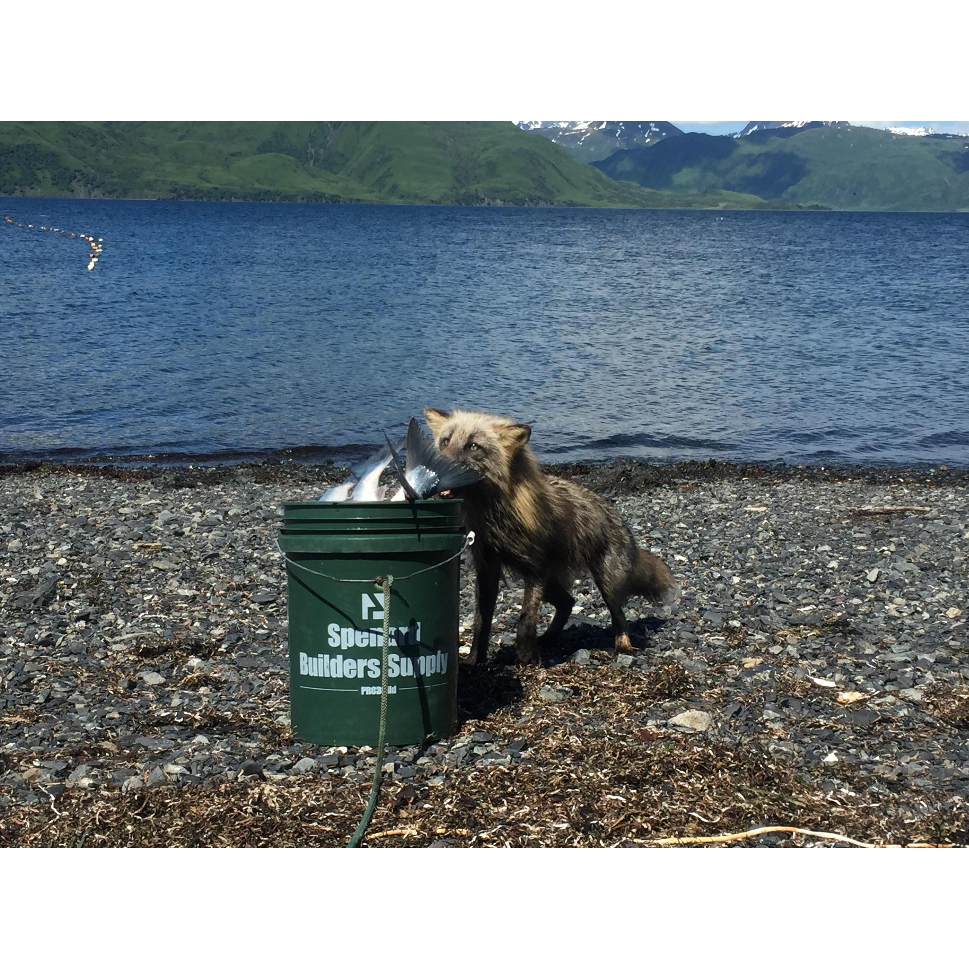 Nate and I picking salmon berries in late summer