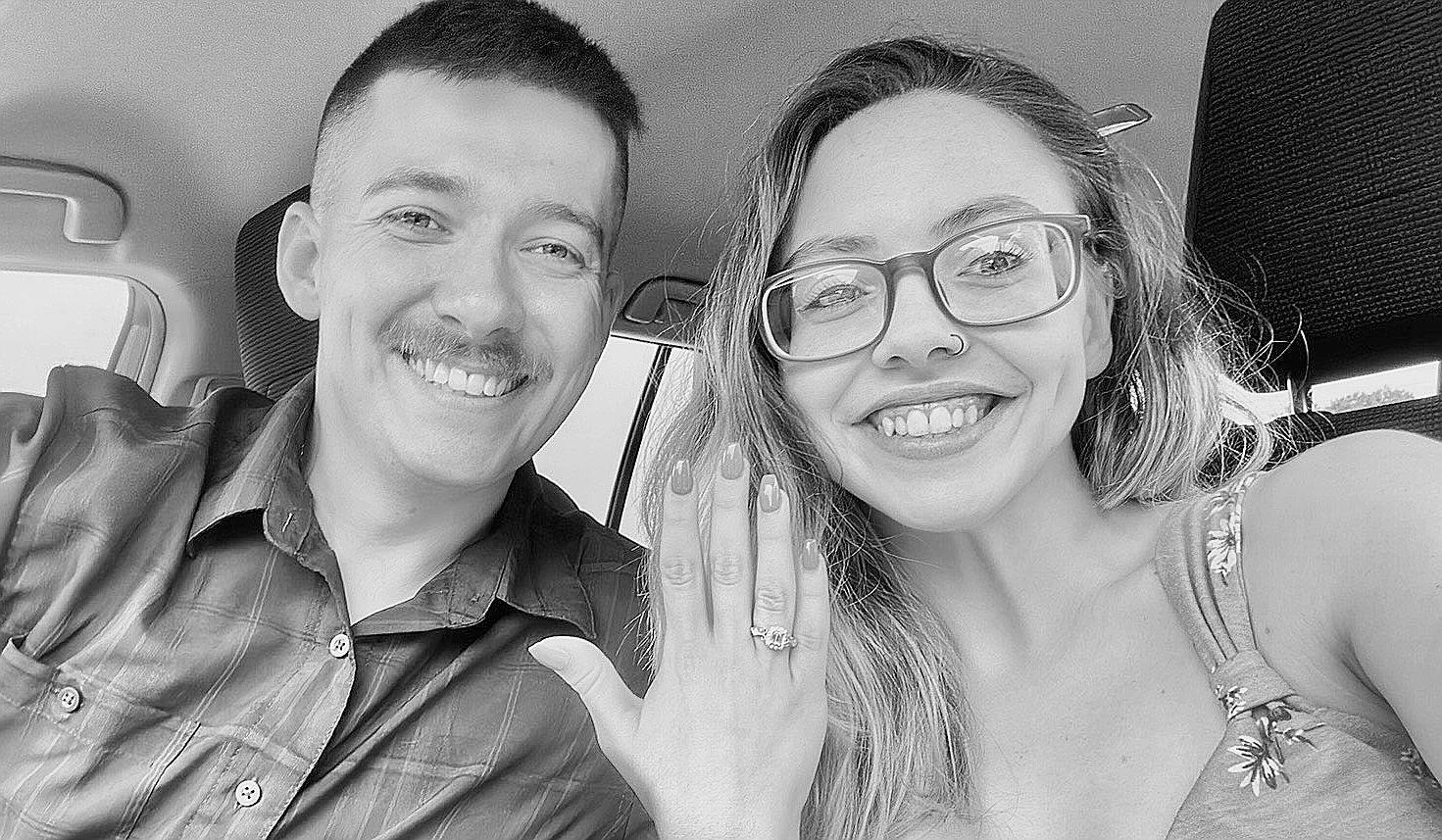 We took our first trip to Michigan together in late June and after spending two weeks with him up there I knew I wanted to spend the rest of my life with him and didn't want to wait much longer to be able to do that. So we came back down in early July and he decided we should redo our first date because we hadn't had sushi in a while and it would be a fun little thing to do. I didn't suspect anything. We got to the lake and we were sitting in his trunk and he said I can't wait to marry you, I said I couldn't wait to marry him either. So he pulled out the ring and said "Well lets not wait then". I almost cried and of course I said yes! We are so excited for December! See you then!