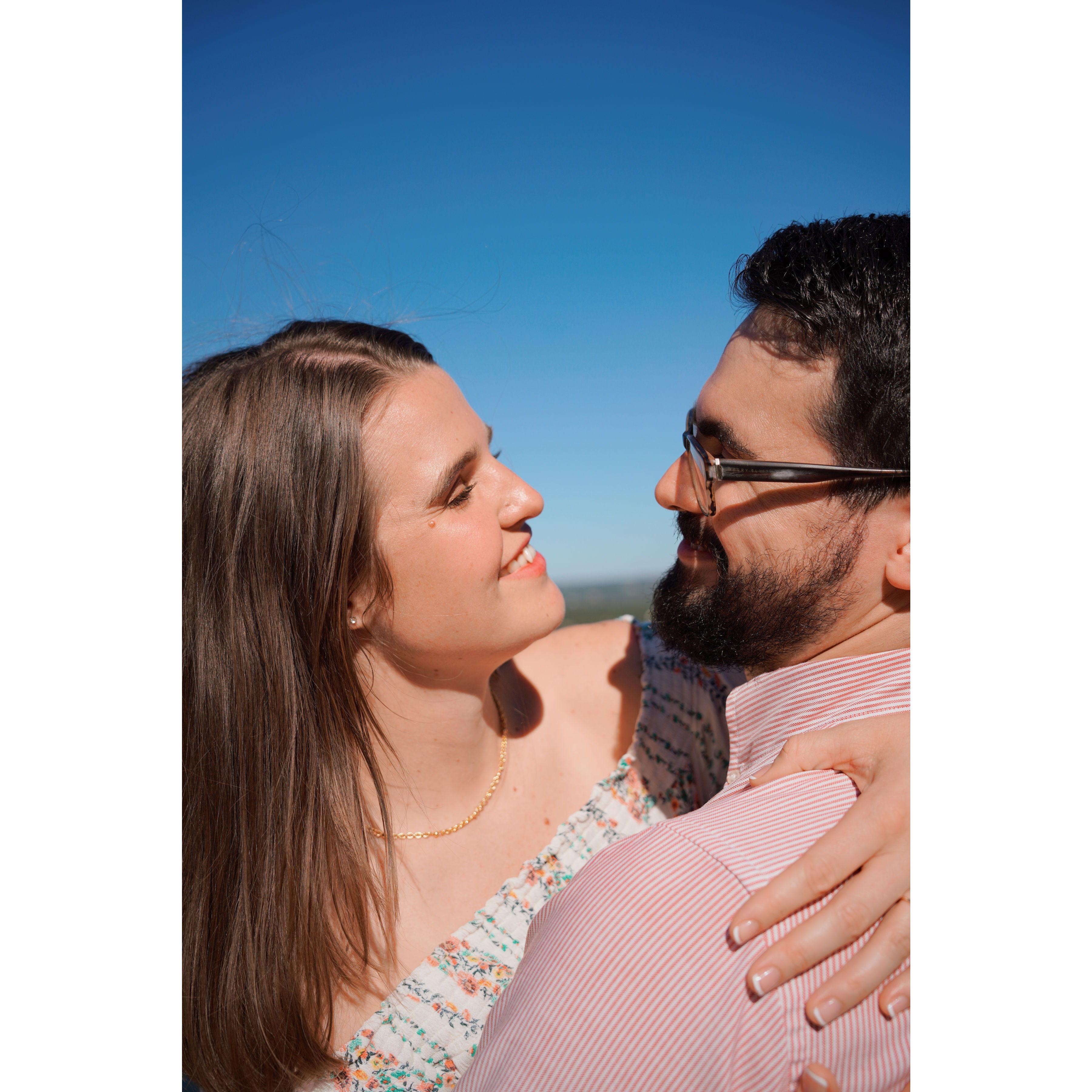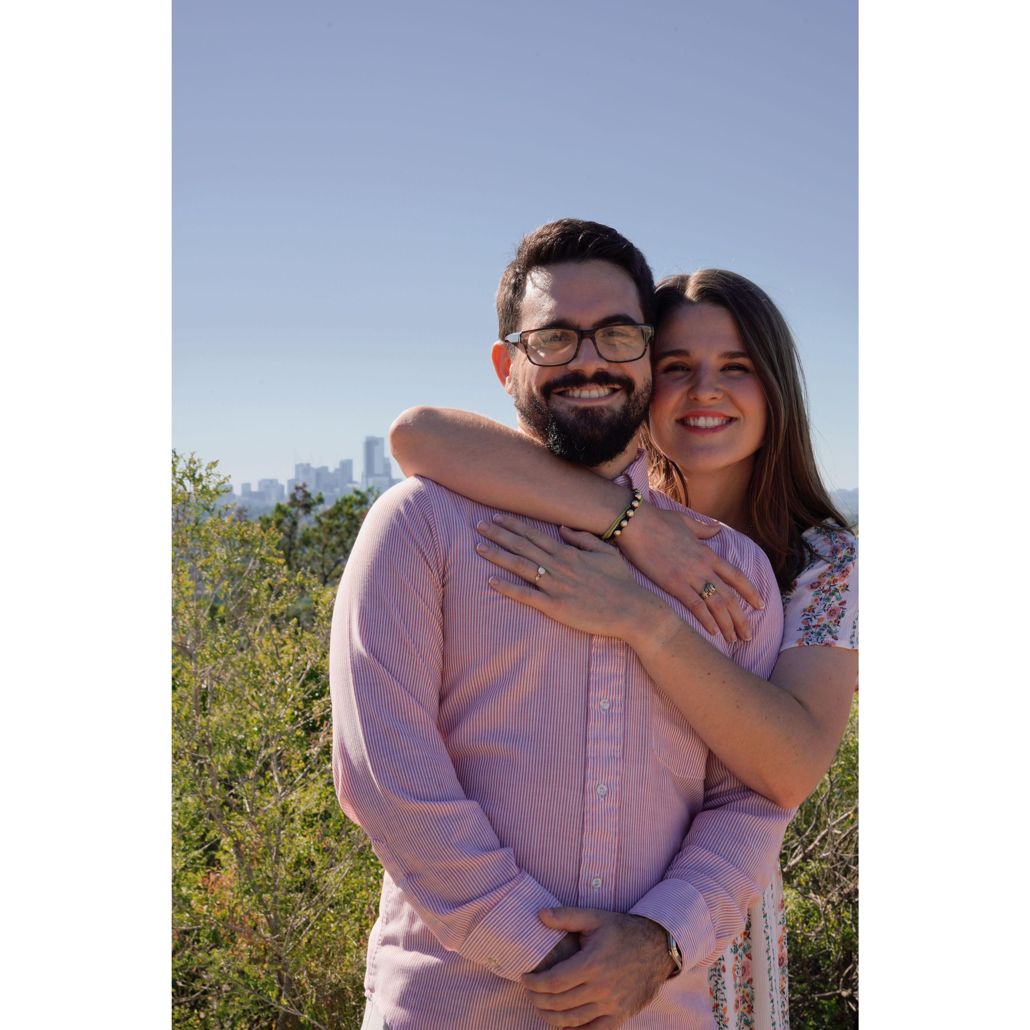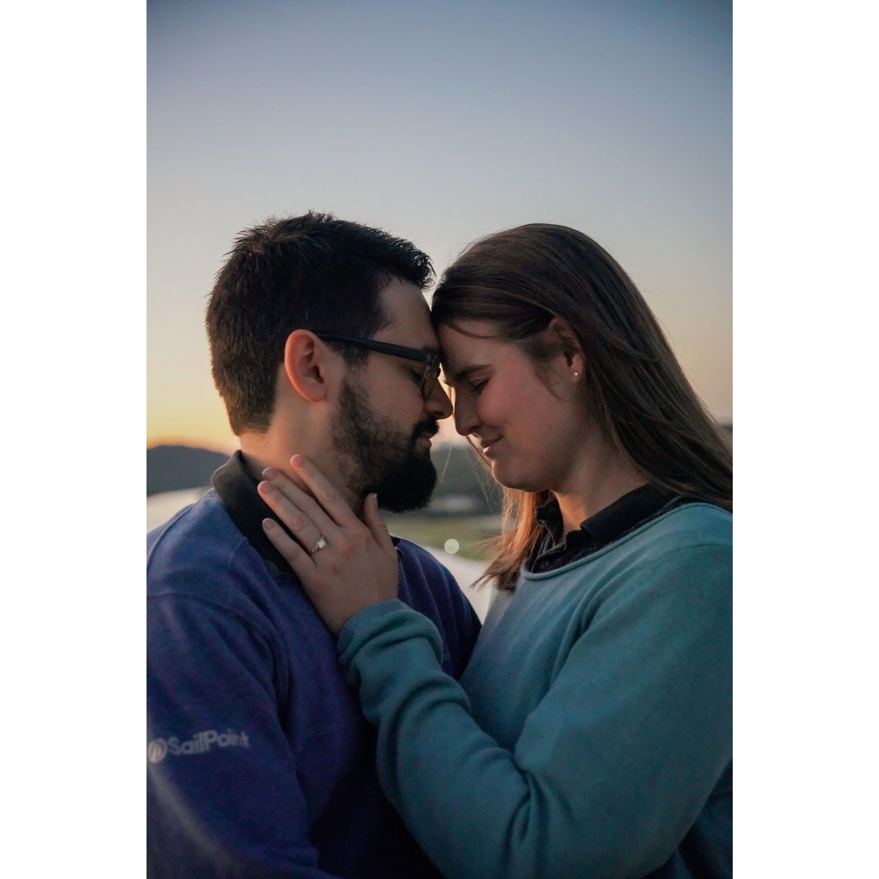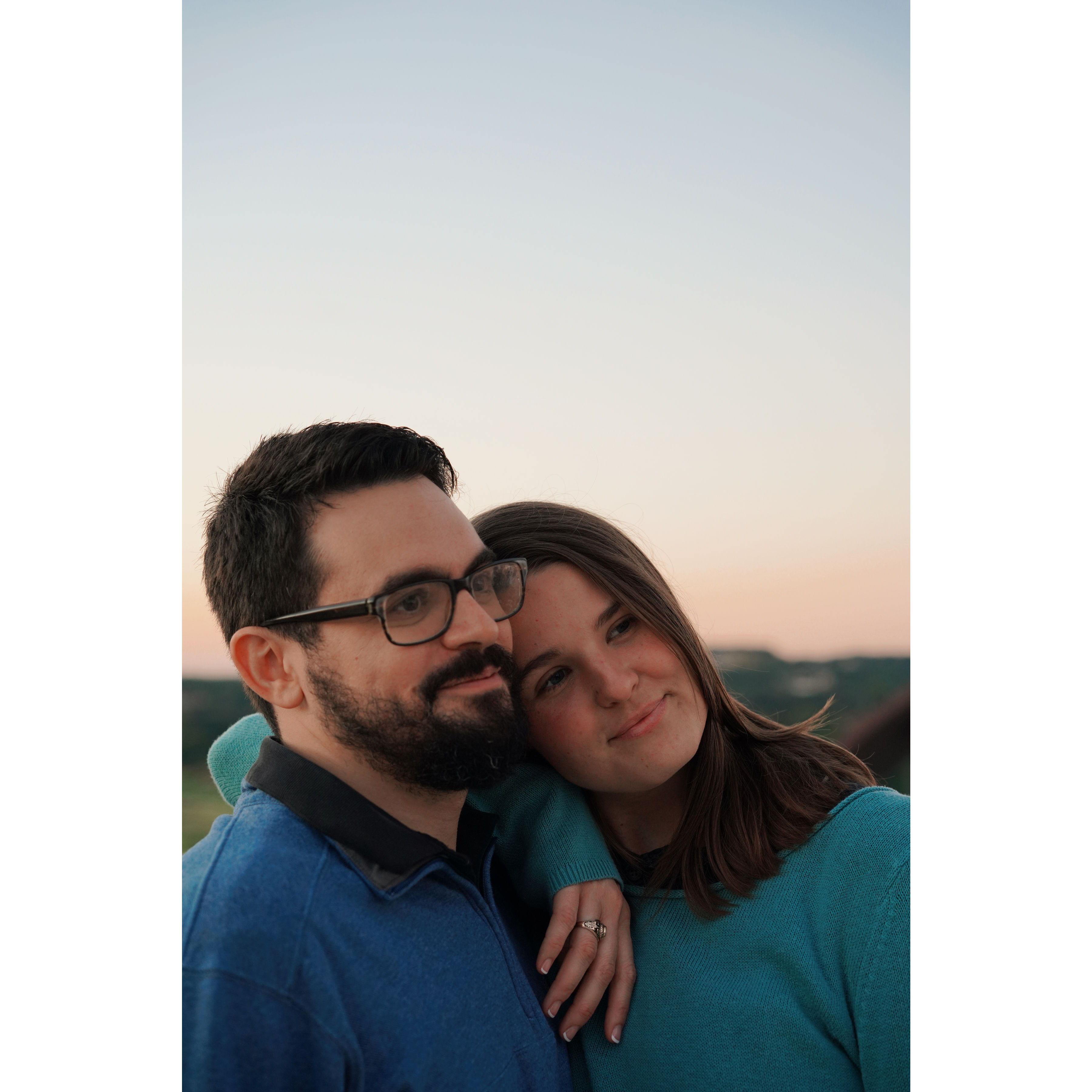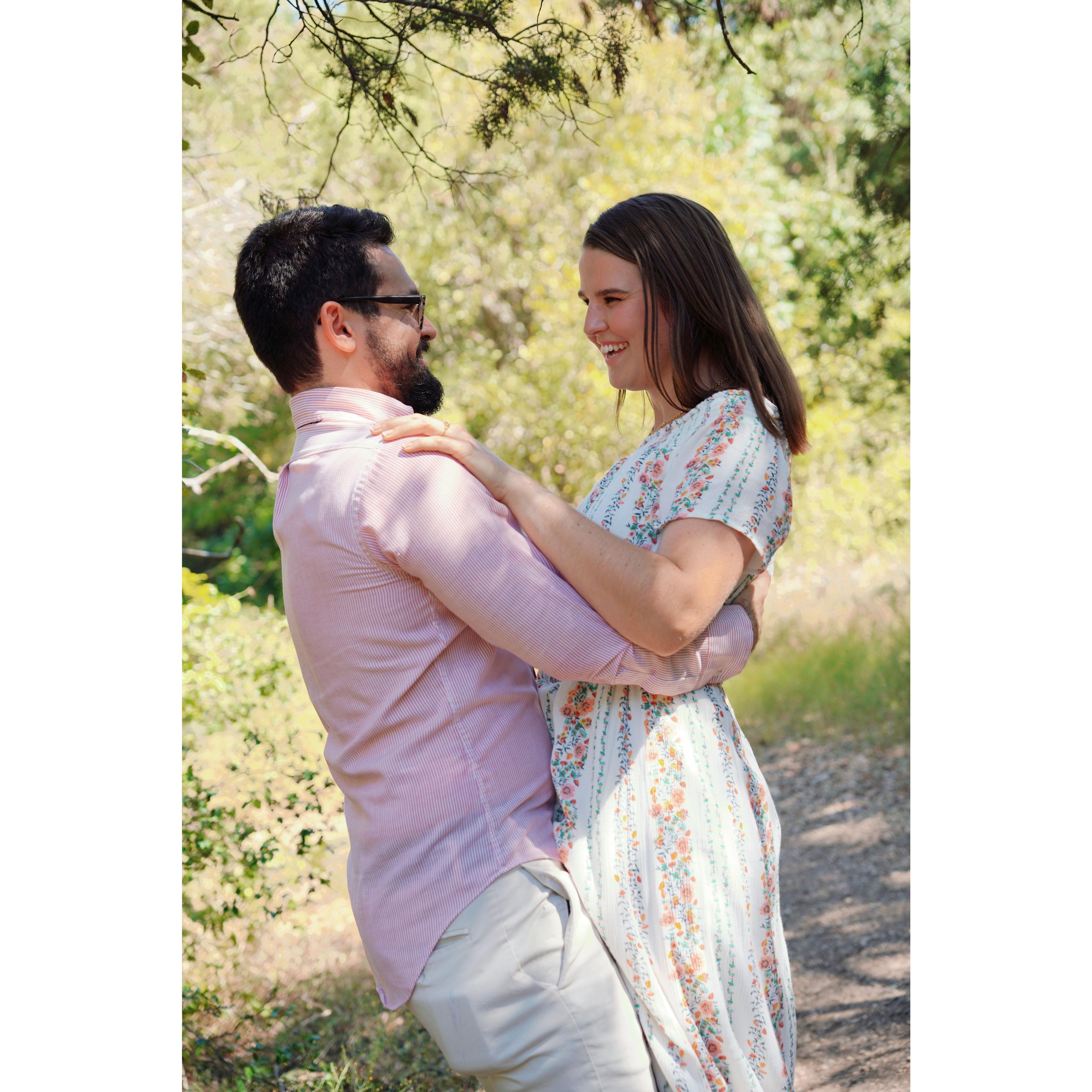 Only one of us knew we were already 30 minutes late for the surprise engagement party. I think you can tell who it was.