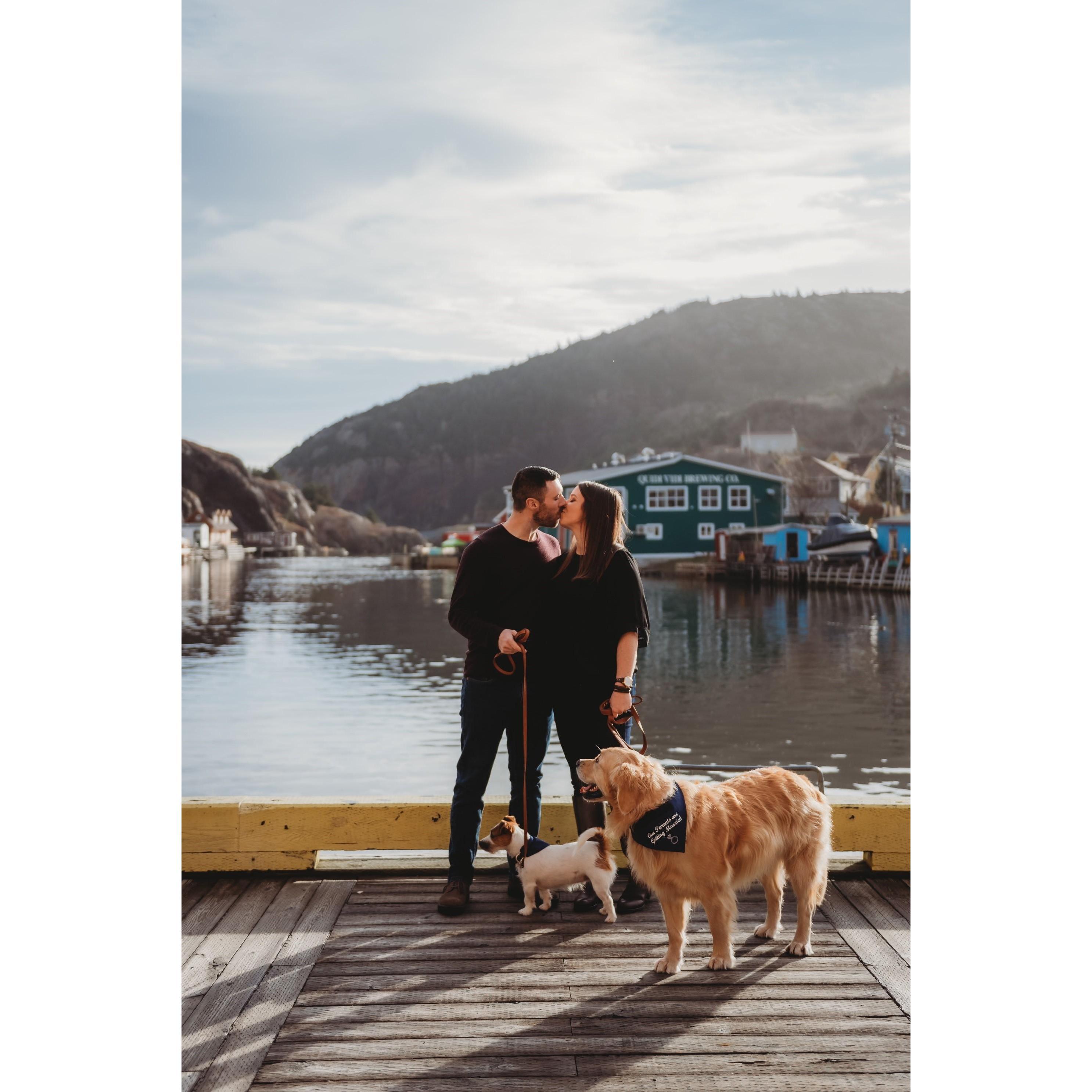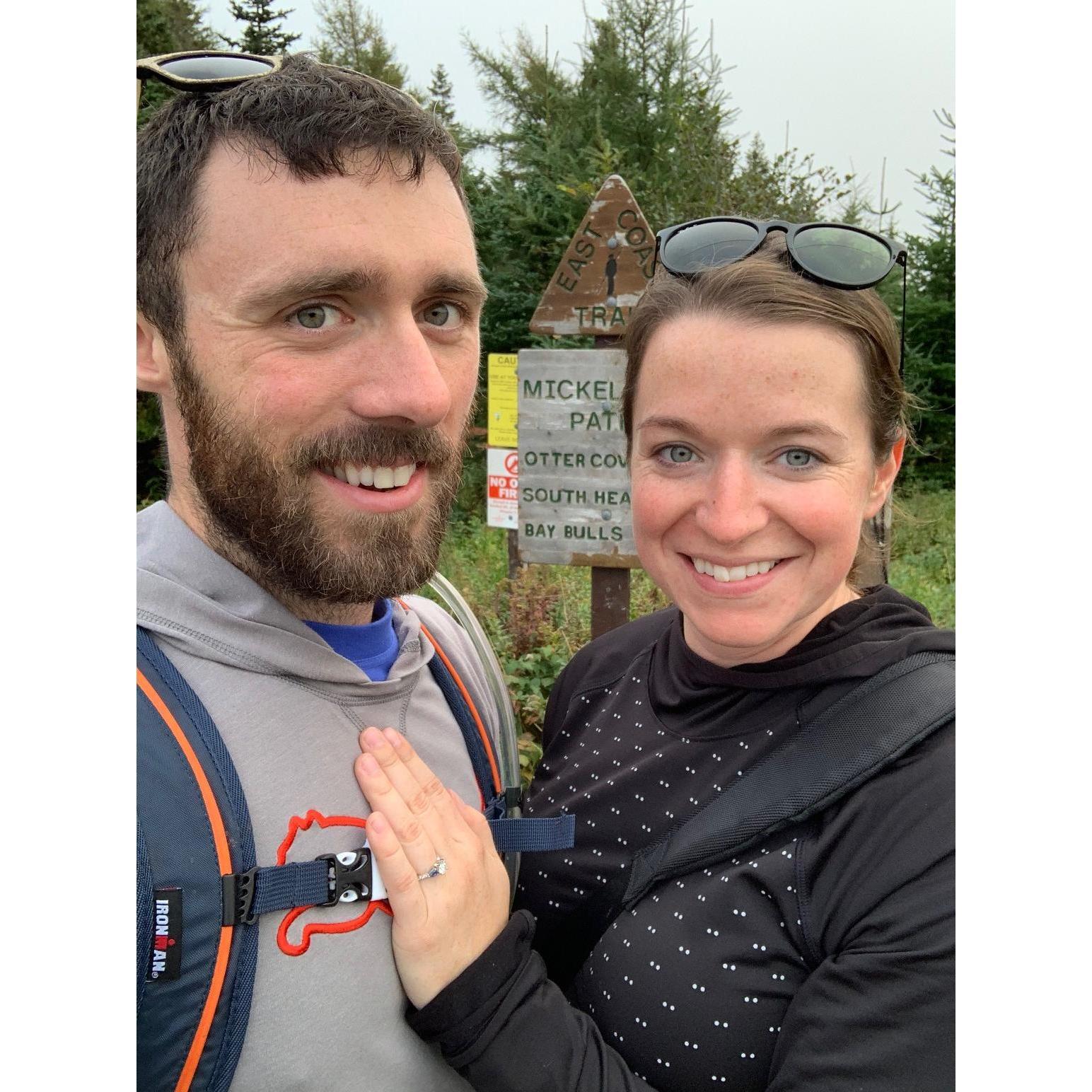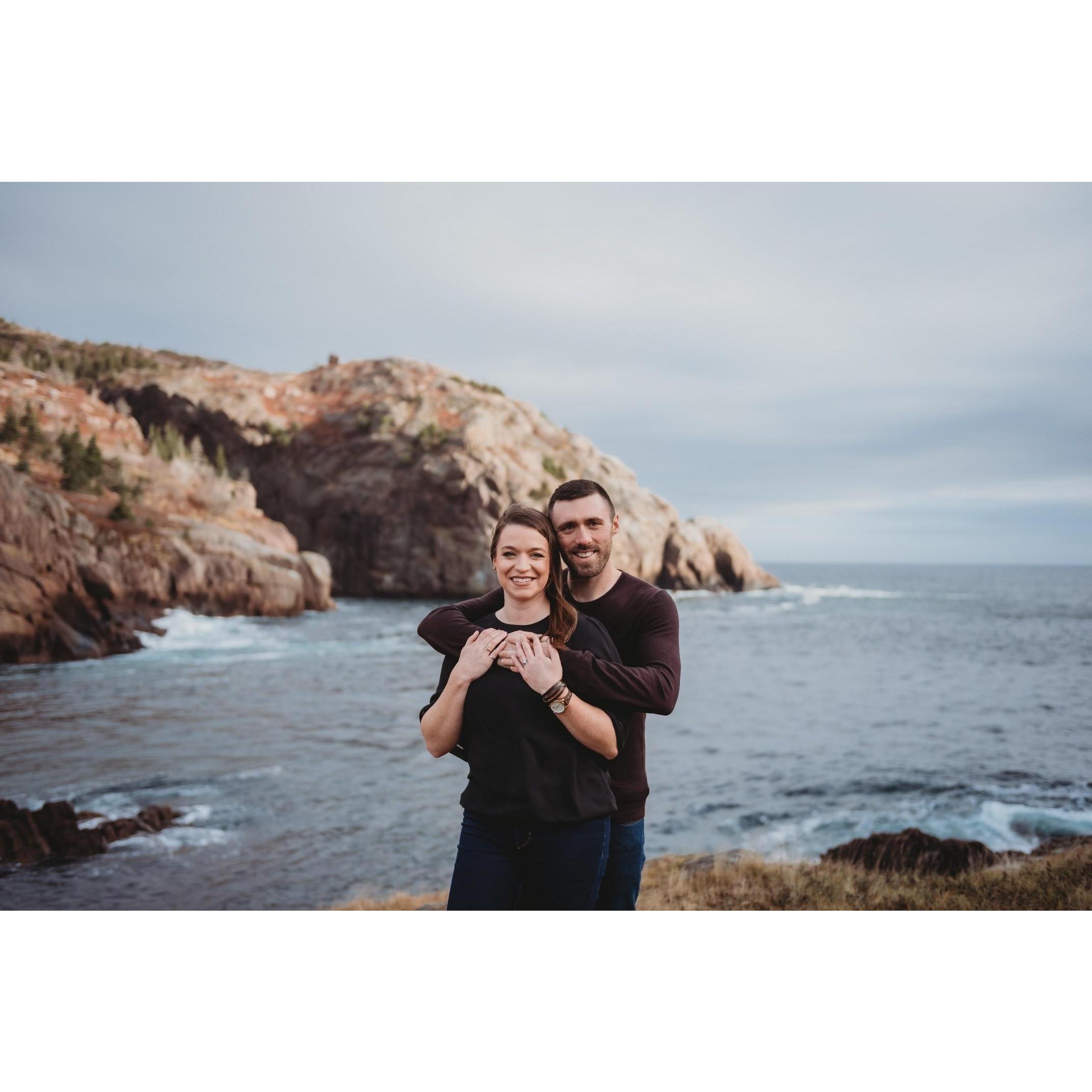 When Tyler and I first started dating one of our early dates was a hike of the Sugarloaf Path of the East Coast Trails. It turned out that it was both of our first times ever completing an East Coast Trail Hike. We had both always wanted to complete all of the East Coast Trails and we had finally found someone with who we could do this (along with our dogs Neela and Allie of course). Since then we have completed about half of the total 26 trails. On Mickeleens Path on Oct 18, 2020, Tyler surprised me and got down on one knee and asked me to marry him! He has made me happier than I ever thought I could be!