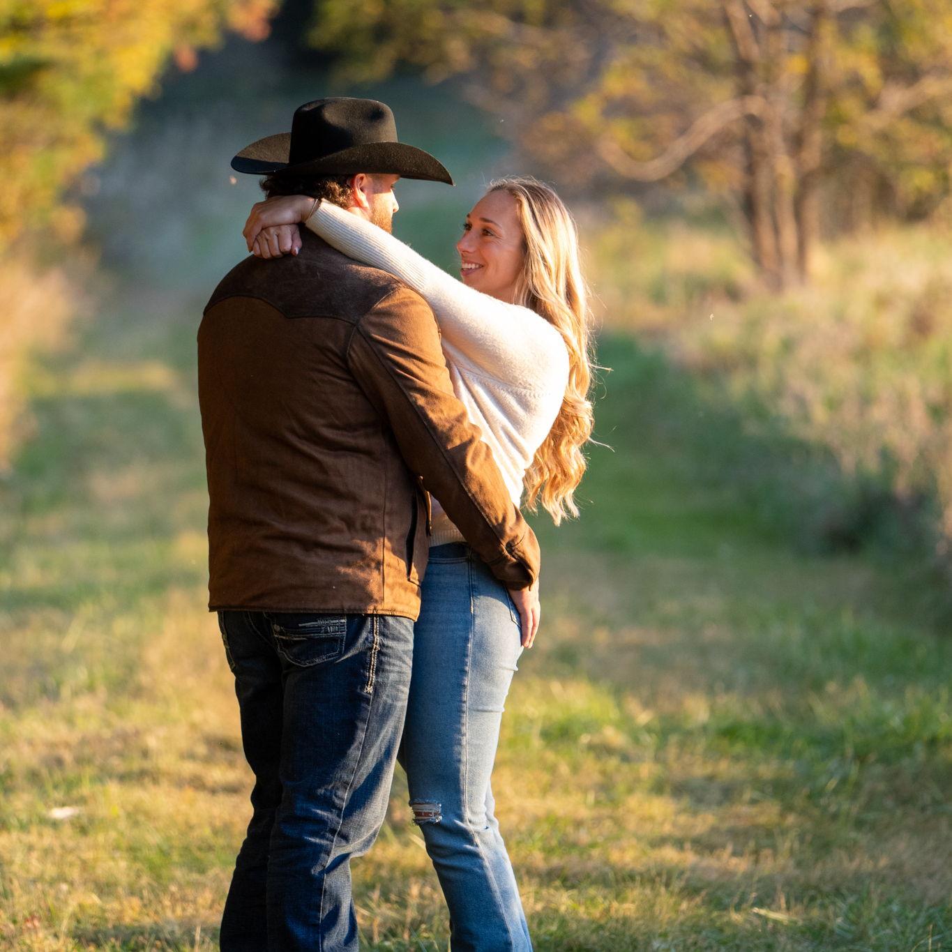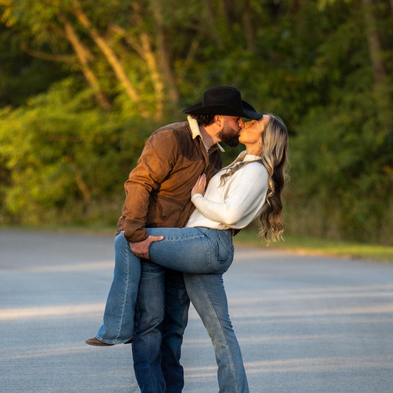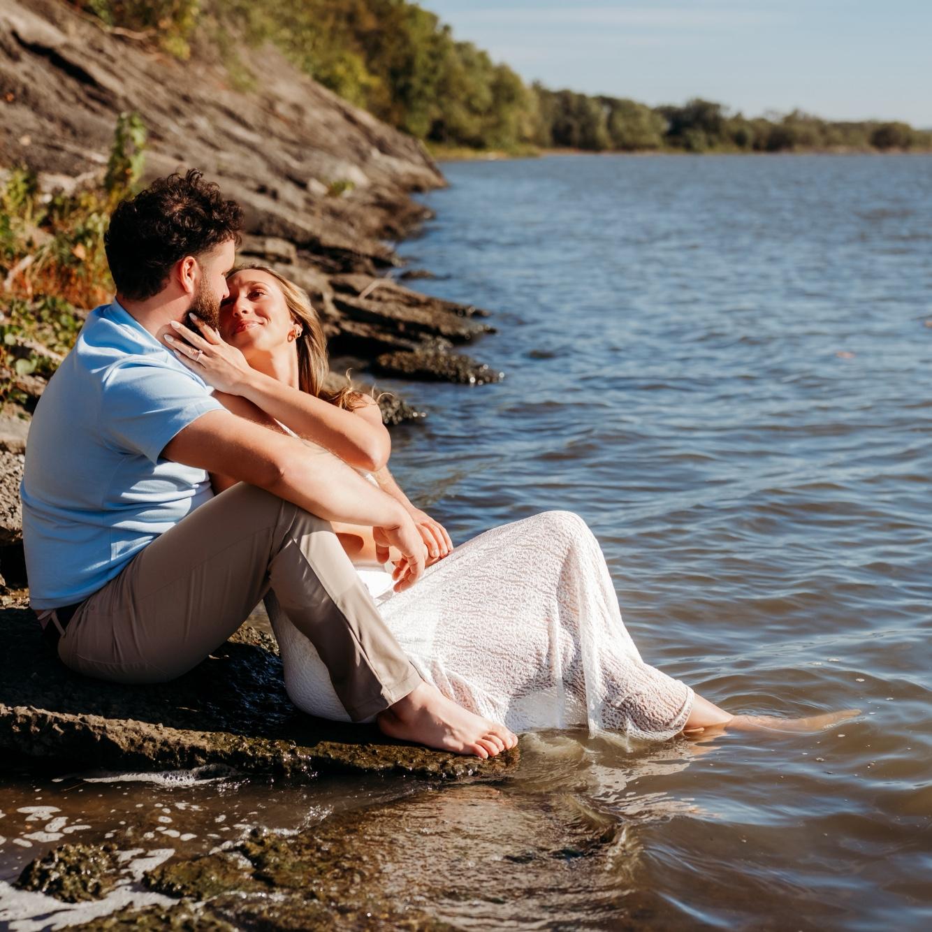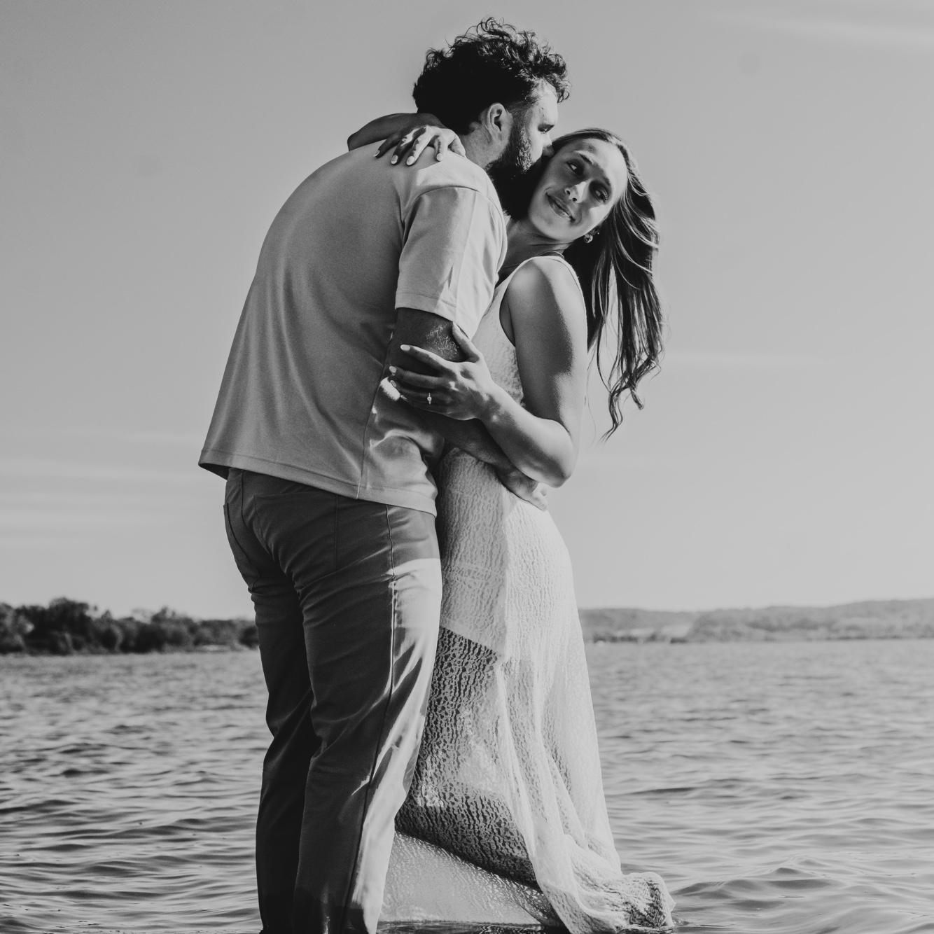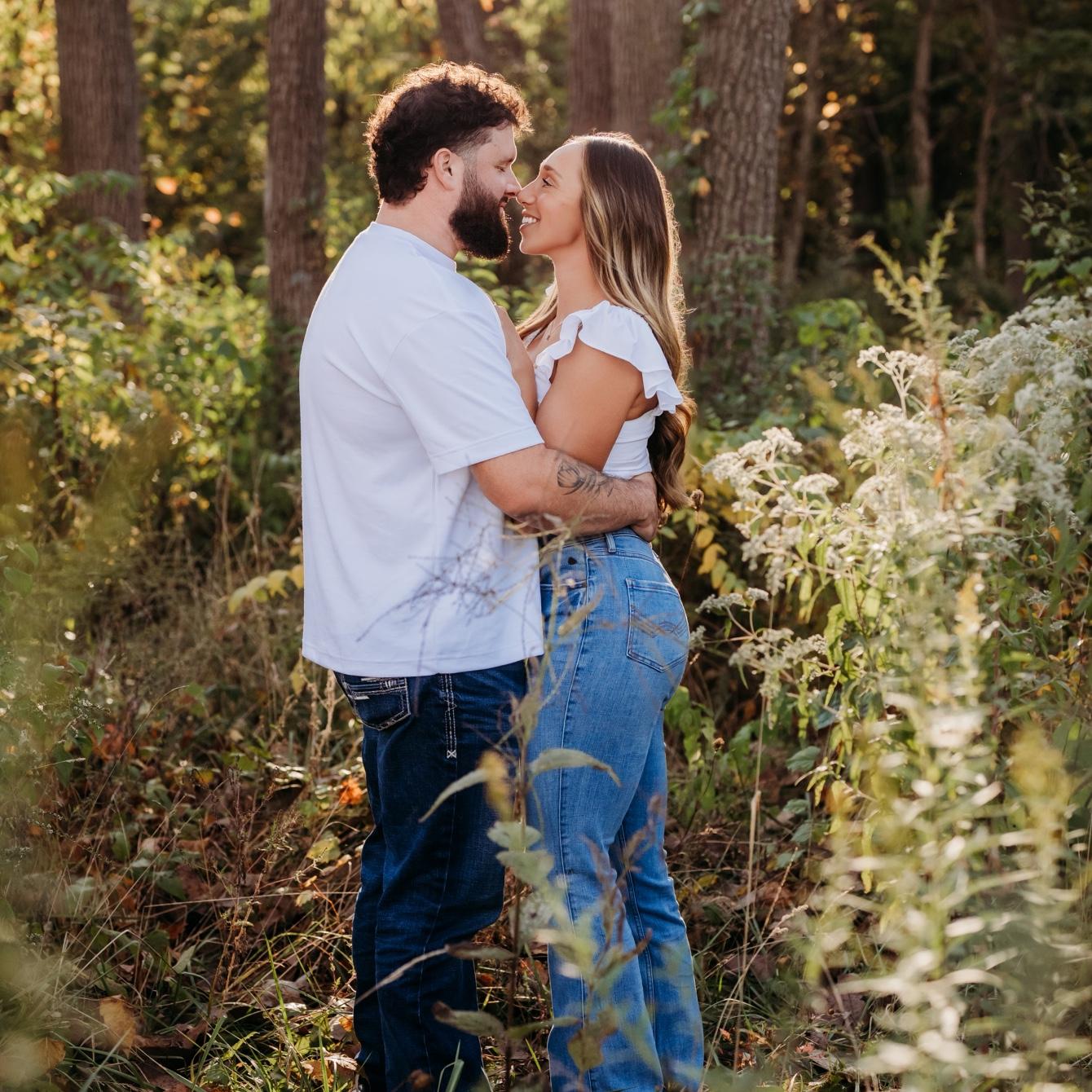 Nick proposed on July 5th, 2025 at his family farm. Nick took us on a morning hike to start the holiday weekend. After a mile of Nick being goofy and us ready for the lake water, he dropped to a knee!