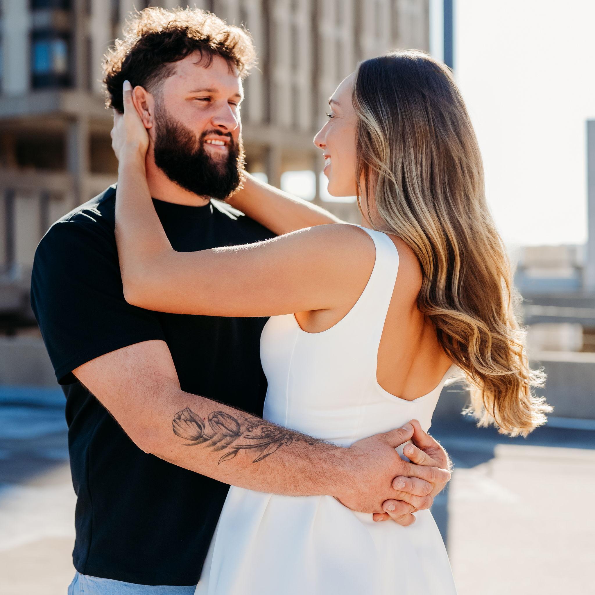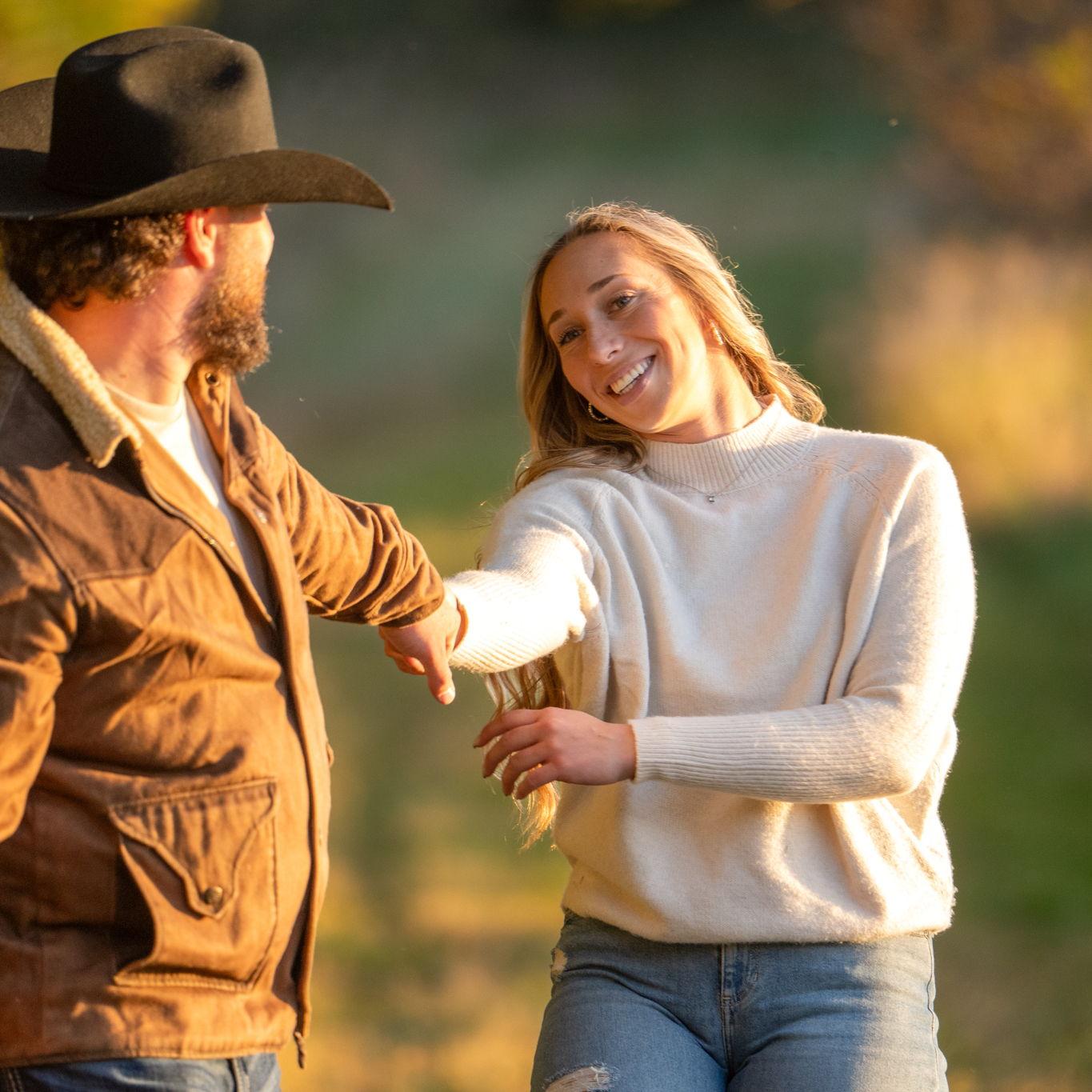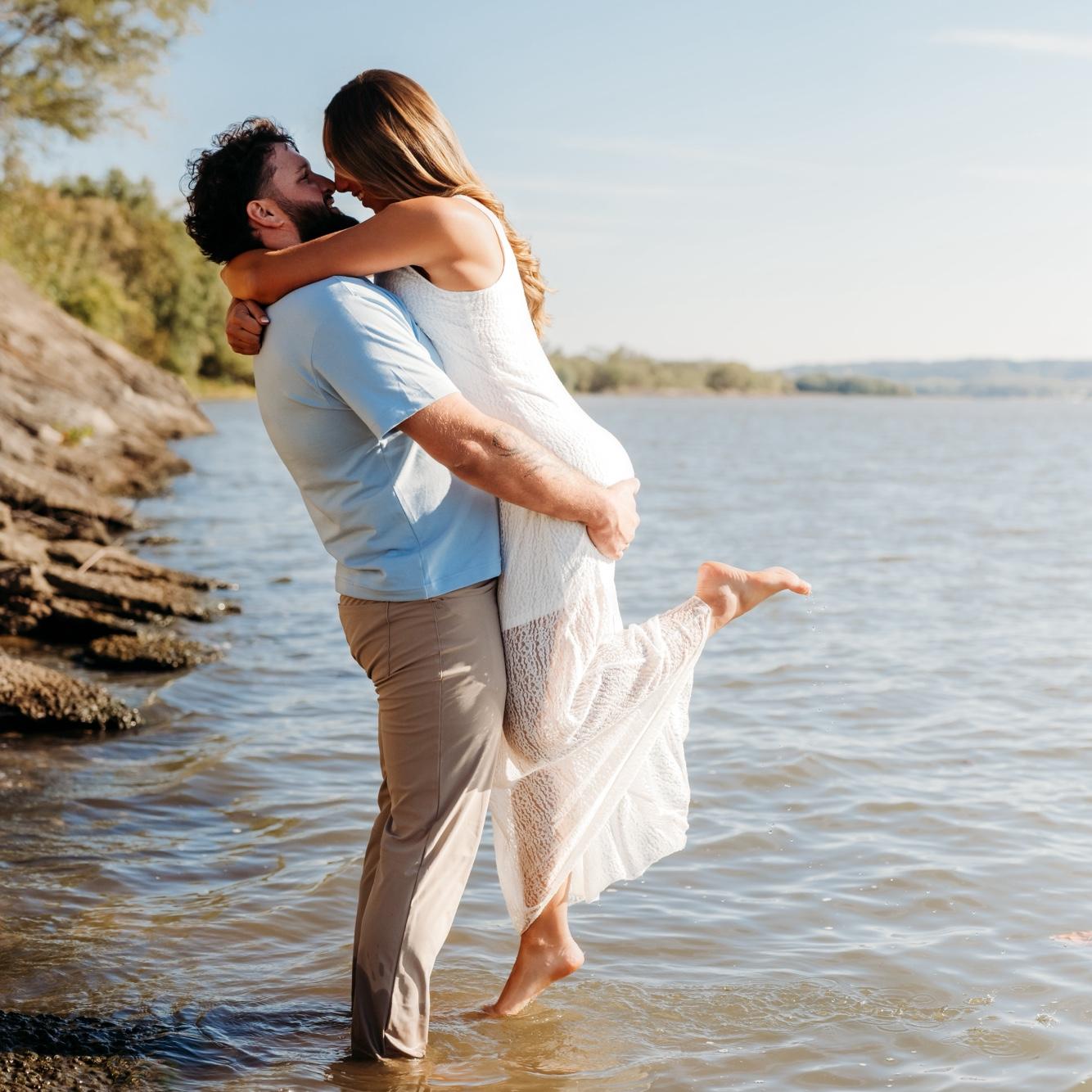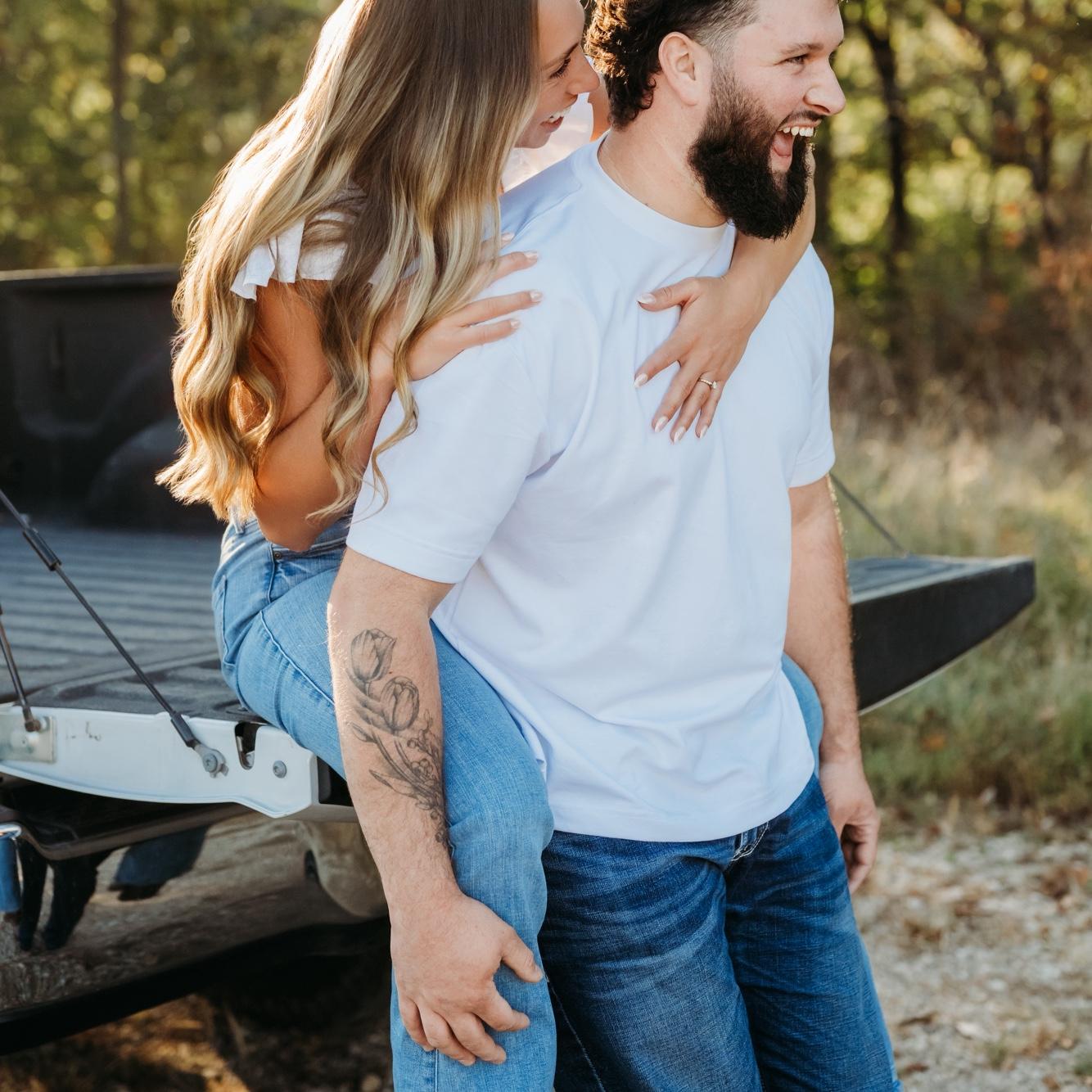 Nick proposed on July 5th, 2025 at his family farm. Nick took us on a morning hike to start the holiday weekend. After a mile of Nick being goofy and us ready for the lake water, he dropped to a knee!