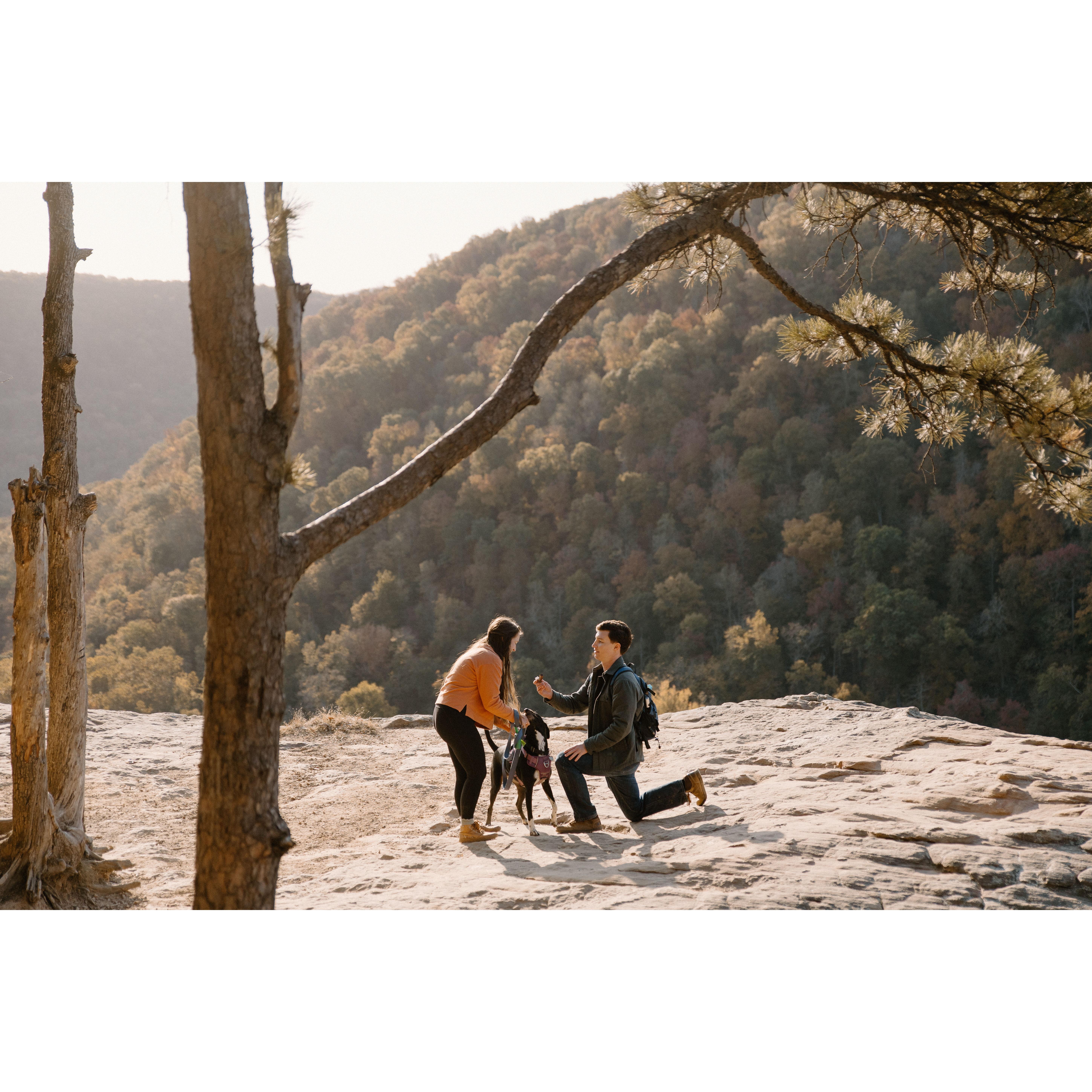 Here are a few photos from our engagement captured by Boston Mountain Photo Company at Hawksbill Crag, Arkansas. To make this milestone even more special, Brian surprised Kaydee with her mother and sister. They hid behind a rock until Kaydee said "yes!"