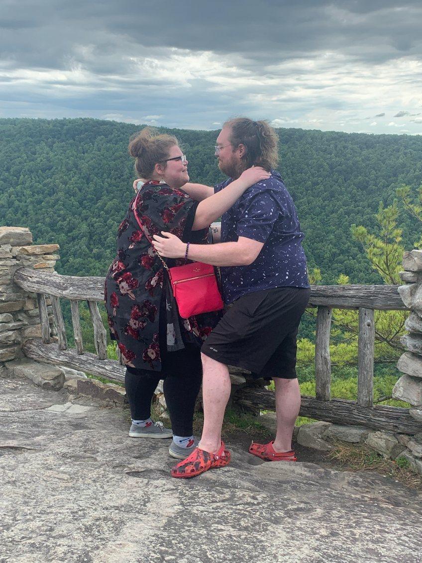 Rob getting down on one knee, asking the question that officially began their lifetime together