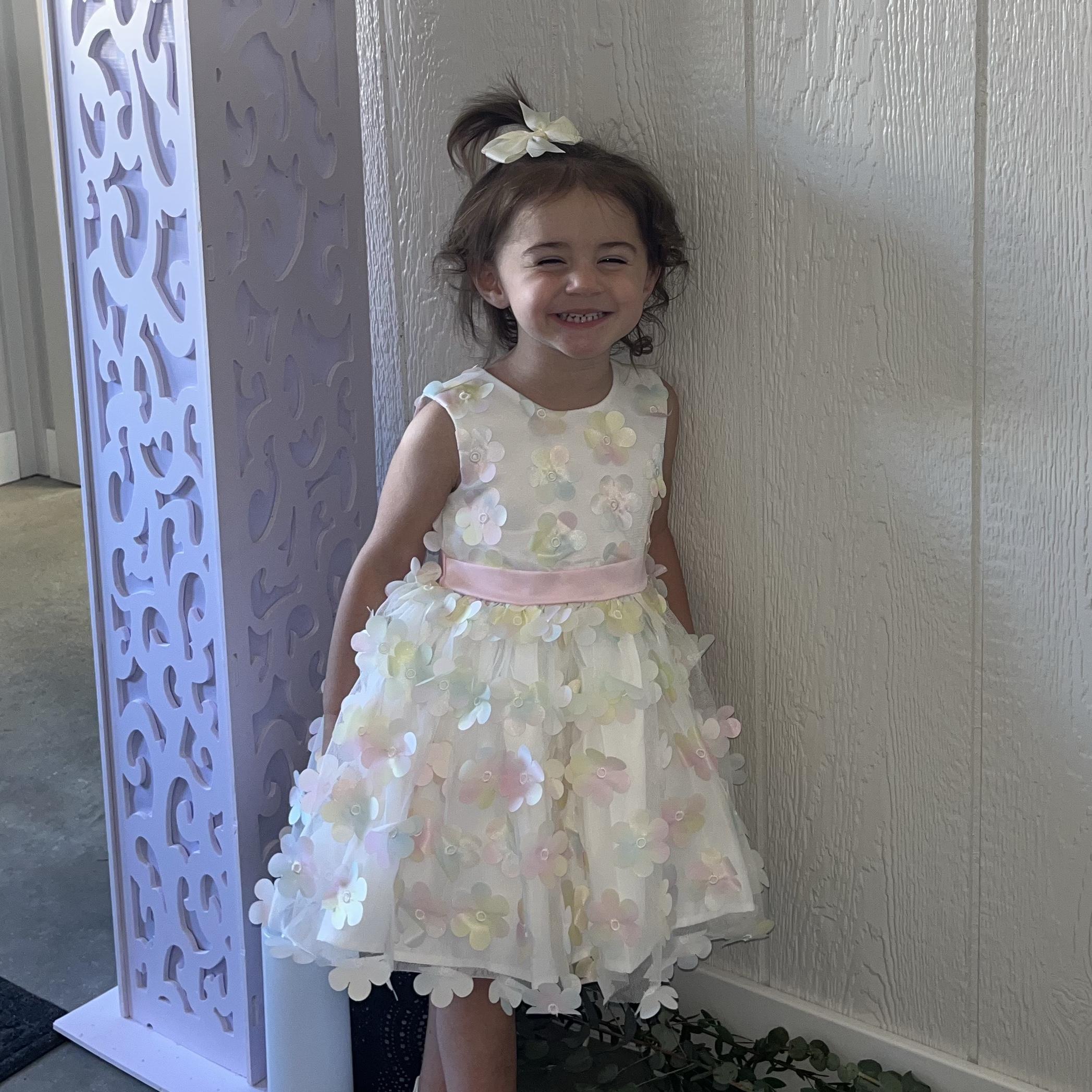 Eliza, the youngest of seven, is equal parts sweet and spicy and somehow always in charge. She adores "Brynnie Boo"- her role model and favorite playmate- and is over the moon to sprinkle petals for her cousin. With her sparkly spirit and big personality, she brings a joyful burst of sunshine to the celebration.