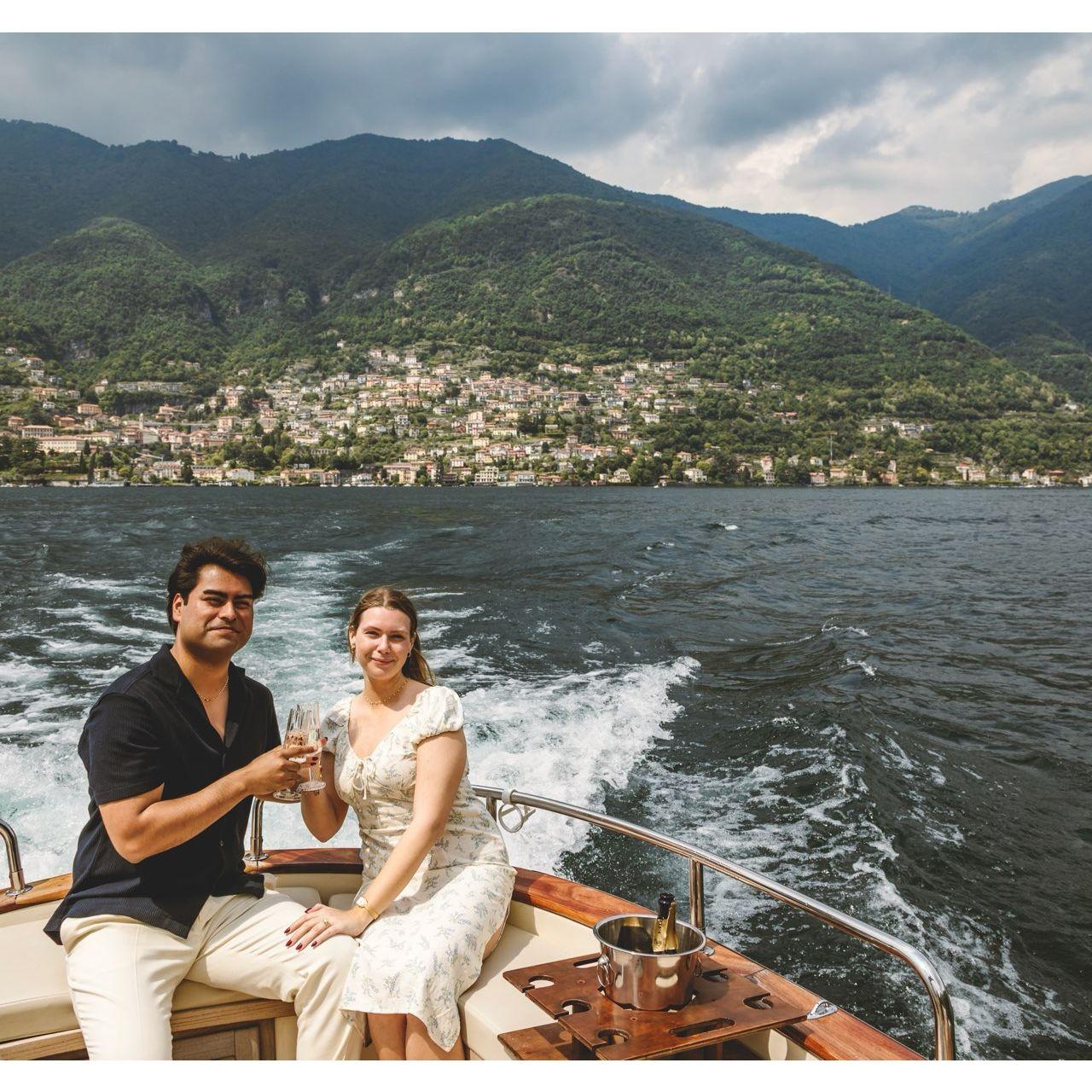 A few photos from the proposal in Lake Como, Italy and our engagement session in Boston. We were traveling through Europe, and Alex knew I always dreamed of visiting Lake Como, so he surprised me with a quick pitstop here! It was forecasted to rain the whole day, but the Lord blessed us with perfect weather during the boat ride and proposal. It started raining right after I said yes and we popped the champagne!
