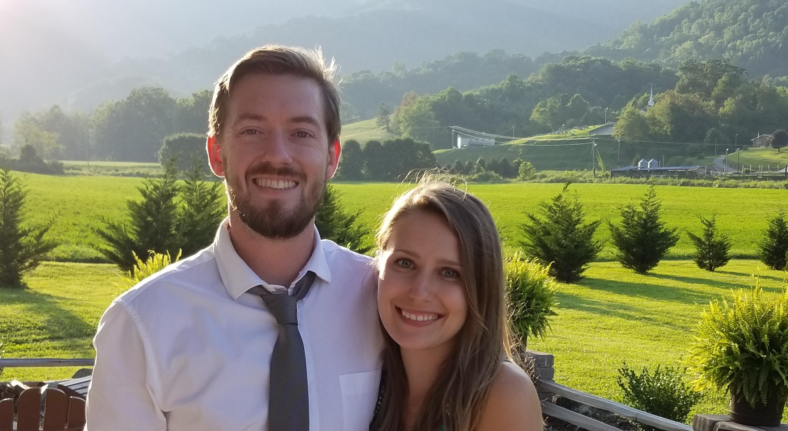 Justin texted me during my lunch break one Thursday and asked if I wanted to go hiking at Craggy Gardens the next day. Our friends Ben and Tia were coming into town so it sounded like a good plan. Friday morning we woke up to a warm sunny day but as we headed up into the higher elevations the weather turned foggy and chilly, and as we started walking up the trail with our dogs in tow it began to drizzle. We walked around for a while at the top, the view obscured by dense fog. The effect was somewhat eerie and I had taken out my phone to snapchat it (typical). Ben and Tia had disappeared in another direction and Justin started ushering me over to a big tree we had sat under on our previous hikes up to Craggy. He pulled me close and starting telling me how much he loved me and before I knew it he was down on one knee in front of me. I had absolutely no clue it was coming and at one point said "are you serious?!" I was still in disbelief but after saying "yes!" we walked back up through the fog where Ben and Tia were waiting and we all shared a bottle of champagne. When we drove back down the parkway, the sun came out and revealed a beautiful summer day!