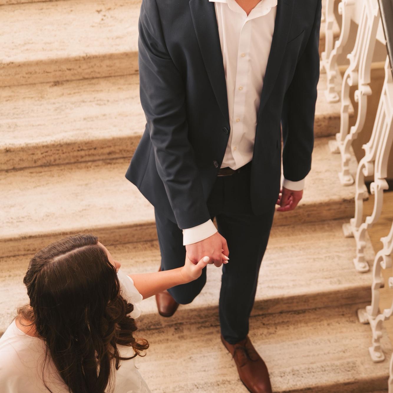 Marcus and Courtney showing off her ring. Marcus had bought her ring back in August 2025 during a trip to Maine. She loves non-traditional ring styles and this pink morganite was the perfect find!