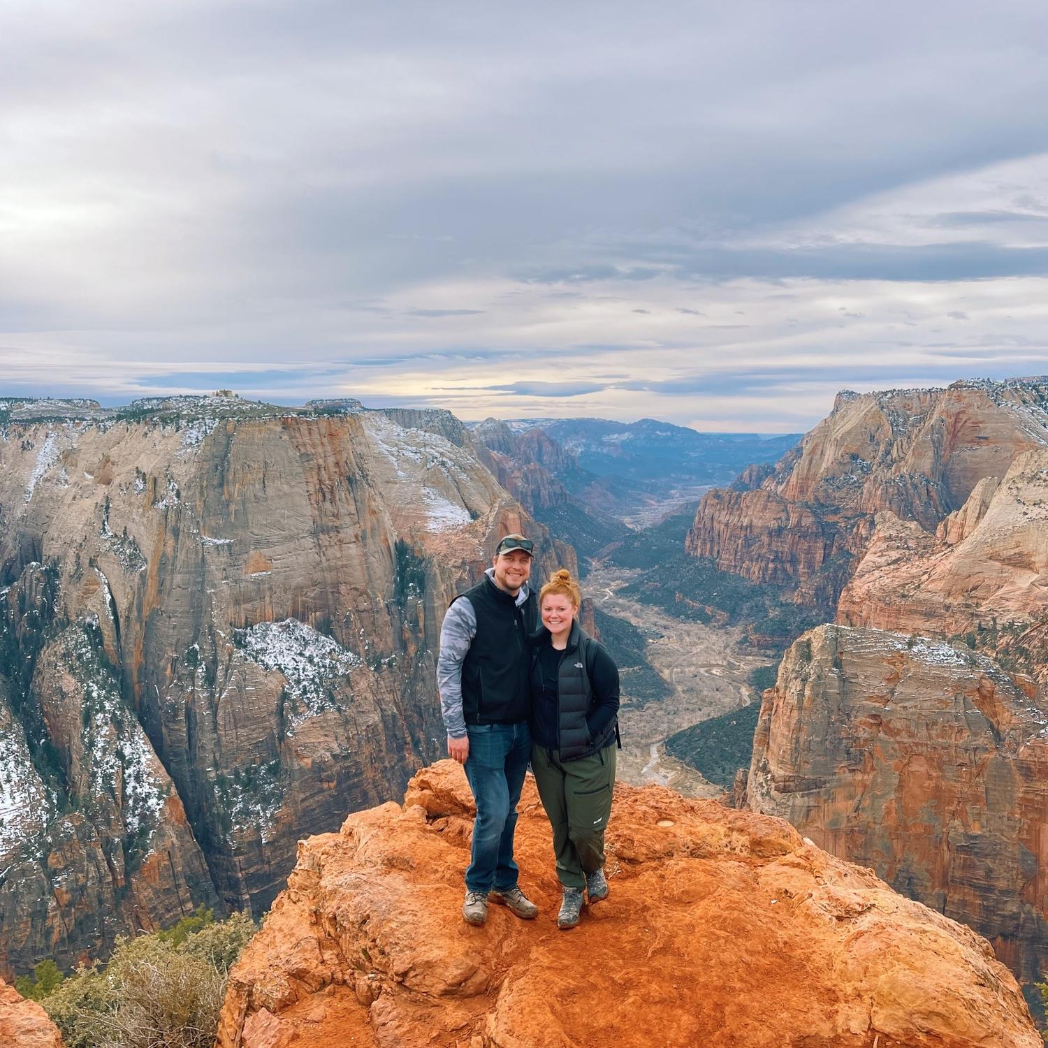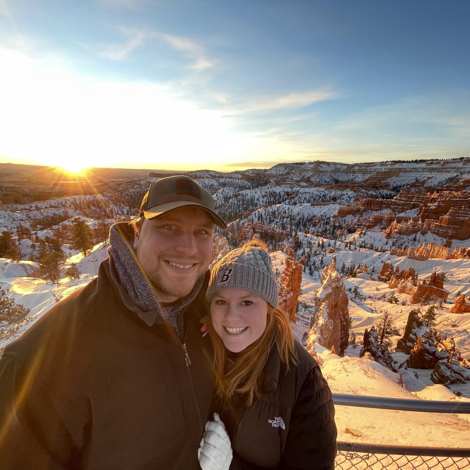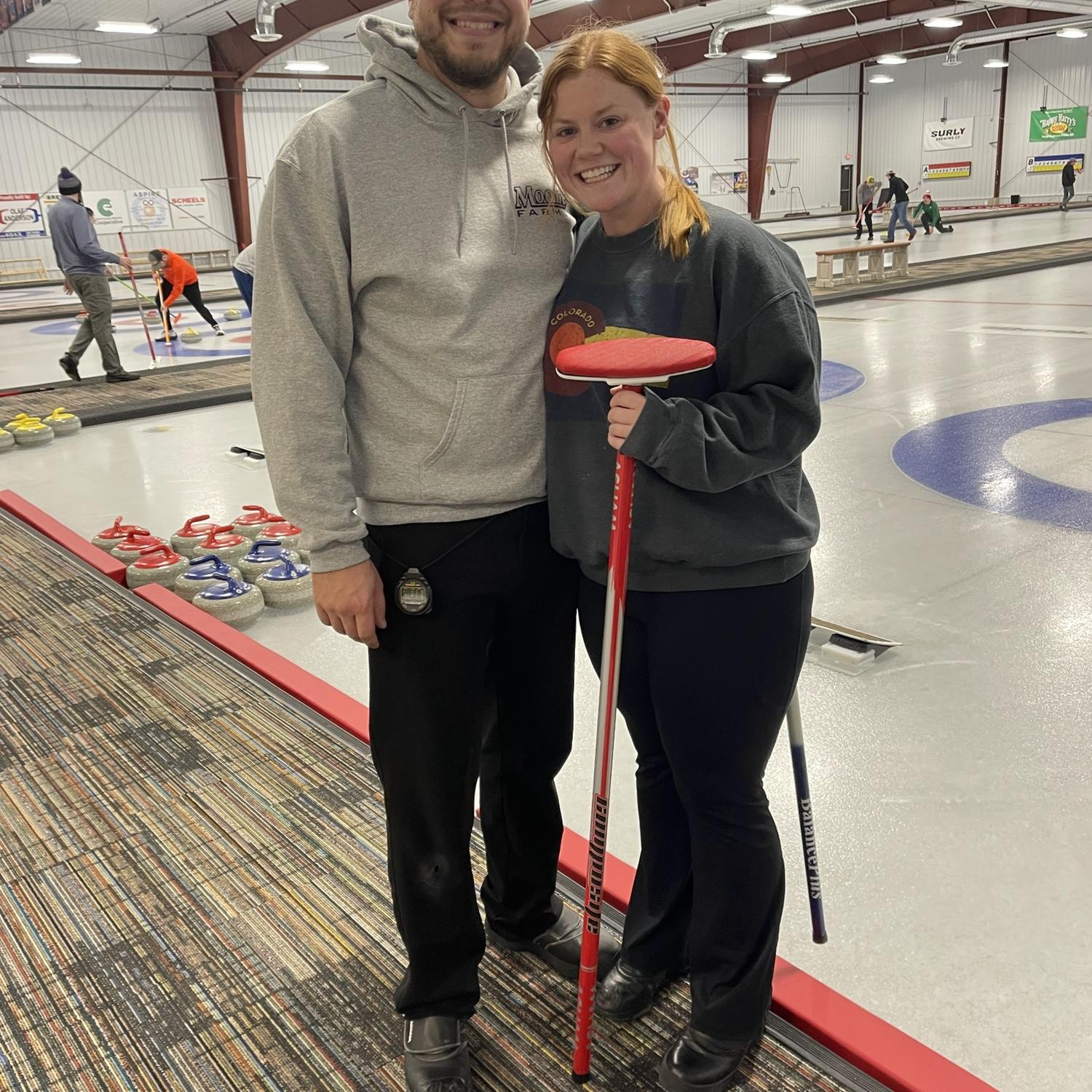 Both raised in Mapleton, MN, Emily and Josh crossed paths for years (at the curling club, in Sheely’s class, and through Mariah & Jared, Emily’s childhood friend and Josh’s now sister-in-law and brother). Their story officially began in August 2021 at Mariah and Jared’s wedding. With Emily in Duluth and Josh in Fargo, their relationship grew through long phone calls, weekend visits, and many miles on the road. They planned trips and dreamed of the future which started with a trip to Zion and Bryce Canyon National Parks in Dec. 2022. Emily made the move to Fargo in June 2023, and the adventures continued. From driving to see family or to support Josh's curling career, they made the most of their time together. In June 2024, they took their first international trip to Banff, Canada-a trip on both their bucket lists. That fall, the morning after Josh competed in the North American Curling Club Championship in Colorado, he proposed at Lookout Mountain-making it a trip they’ll never forget!
