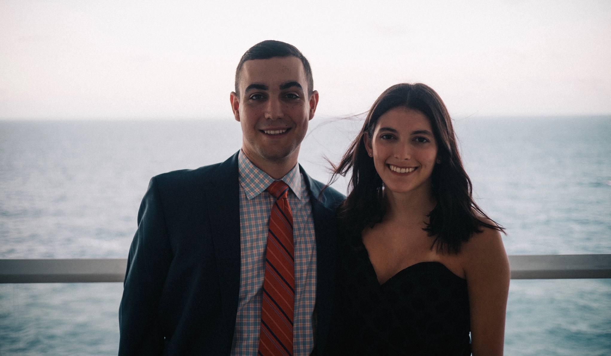 Chris and Carolina met in December 2015. Chris, a Westchester native working as an actuary in Connecticut and spending his free time in the city – the tri-state trifecta. And Carolina, a recent transplant couch surfing the five boroughs, while simultaneously chasing a career in public relations and the best oysters on happy hour. The two brought together by the magic of December in the City. For many that means the holiday windows, winter villages and iconic Rockefeller tree. But for these two, and thousands of other twenty-somethings, it was donning their best Christmas character wear to stumble from bar-to-bar on the annual citywide SantaCon pub crawl. Carolina and her friend, Saige, had gotten an early start to the day before finding themselves crammed into Duke’s, a Murray Hill dive bar (RIP). While Saige set her sights on the next round, Carolina had her eyes on a nearby Santa. Not because he was cute (though that didn’t hurt), but because he looked familiar. With her photographic memory sparked and her interest peaked, her wing woman went for the win, abandoning the drinks and tapping the familiar stranger on the shoulder to make the college connection – We Are. Penn State! Having never crossed paths at a school of 45,000, it only took a sea of Santas in a city of 8 million for these two to meet. Their New York minute turned into two, which turned into last call. For Carolina it was Chris bribing the bouncer, thinking he was the DJ, to play Justin Bieber’s “Sorry.” For Chris it was Carolina ordering three slices of chicken bacon ranch pizza. For herself. Set to the sound of the city streets, Chris proved chivalry isn’t dead as he walked Carolina to the apartment she was currently crashing and kissed her good night…in his Santa suit. After a month of being inseparable, they became official. And, the rest, is history.