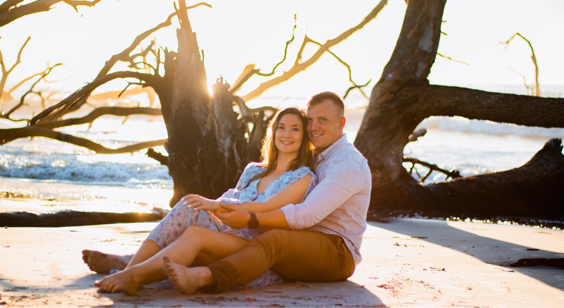 As true millennials, we met on a dating app while we were both living in Hawaii. Alisha had been teaching on Oahu for two years and Carter was stationed there with the Marines. Our first date was a hike on the west side, which turned out to be one of many we did together in the next year. We clicked right away and fairly early on we had realized this was “something special”. We enjoyed the rest of 2019 together on the island before Carter was deployed to Okinawa, Japan. Soon after his return from Japan, in the summer of 2020, Carter was sent to work in South Carolina, and our long-distance relationship continued. After one more year in Hawaii, Alisha decided to make the leap and move to Beaufort, SC. After half a year of adjustment, adventure, and love, we added a puppy to our family in early 2022, naming him Kona, a nod to our time in Hawaii. It had been the most incredible 3 years of our lives, which lead to our engagement on July 5th, 2022! We can’t wait to see what the future has in store for us!