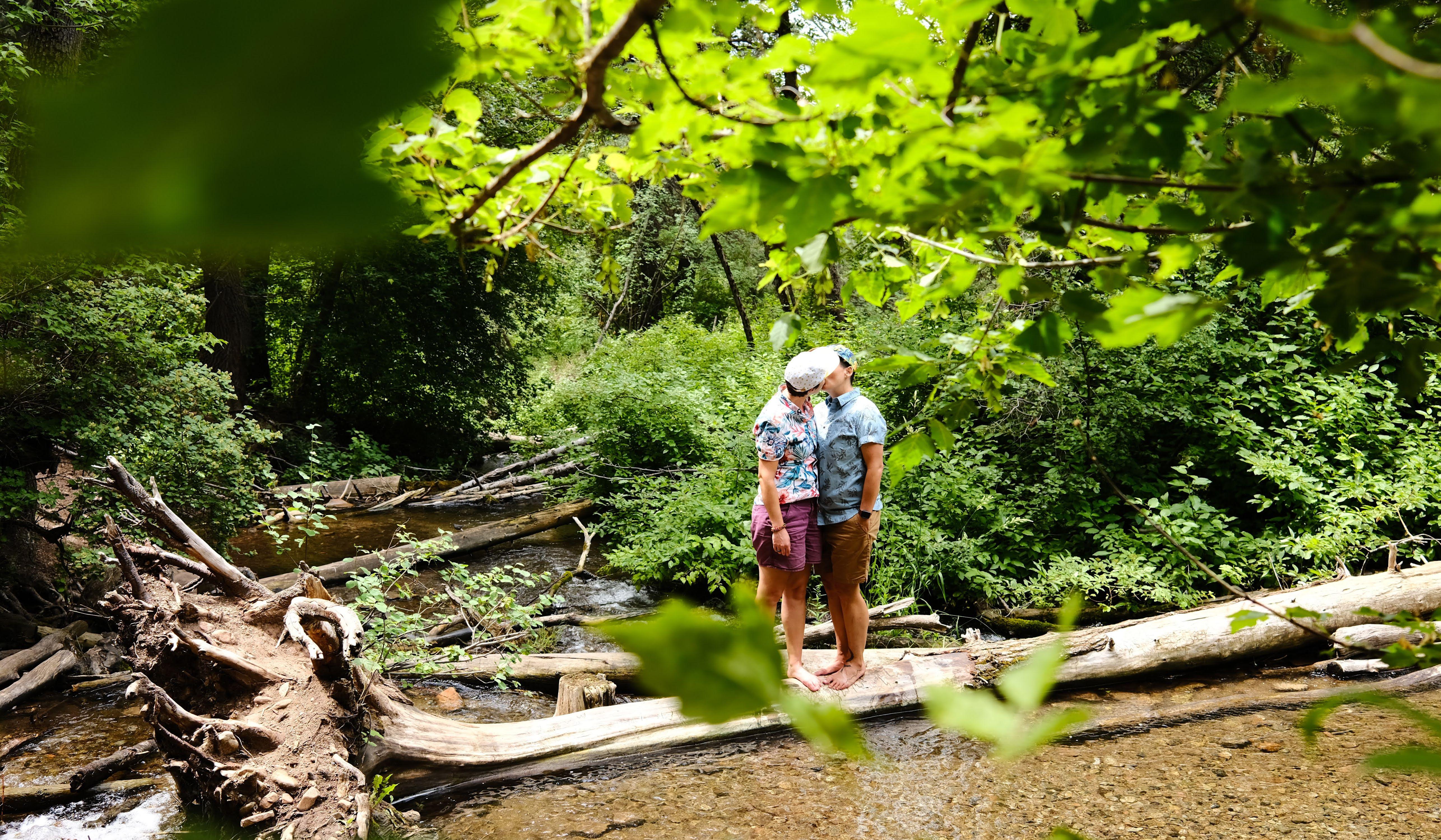 We always had the joke, "of course we want to get married but one of us has to propose first!" We were in a stalemate for a while waiting on the other to ask, come to find out later that both of us had ideas forming back in 2019. Kate first came up with an idea after ALC 2019, to pop the question at next year's Ride, but thanks to a pandemic that idea was put on pause. Cassie first thought of asking Kate on their Anniversary, August 1st, but Kate beat Cassie to the punch when she planned a surprise proposal during AIDS/LifeCycle 2022. With the design help of Janelle, Kate had signs with their story written out as she asked Cassie 'THE question.' In front of their Ride family, Grandy, and many onlookers, Kate popped the question AND Cassie said/checked, Yes! A few weeks later, Cassie asked Kate if she would marry her at Johnny Donuts in San Rafael (where Kate took Cassie for their first official date 5 years prior). Under a sign that said, "I love you to the moon and back," Kate said Yes and Cassie gave her a glow in the dark ring with a space design, the perfect symbol of their love story. #toinfinityandbeyond