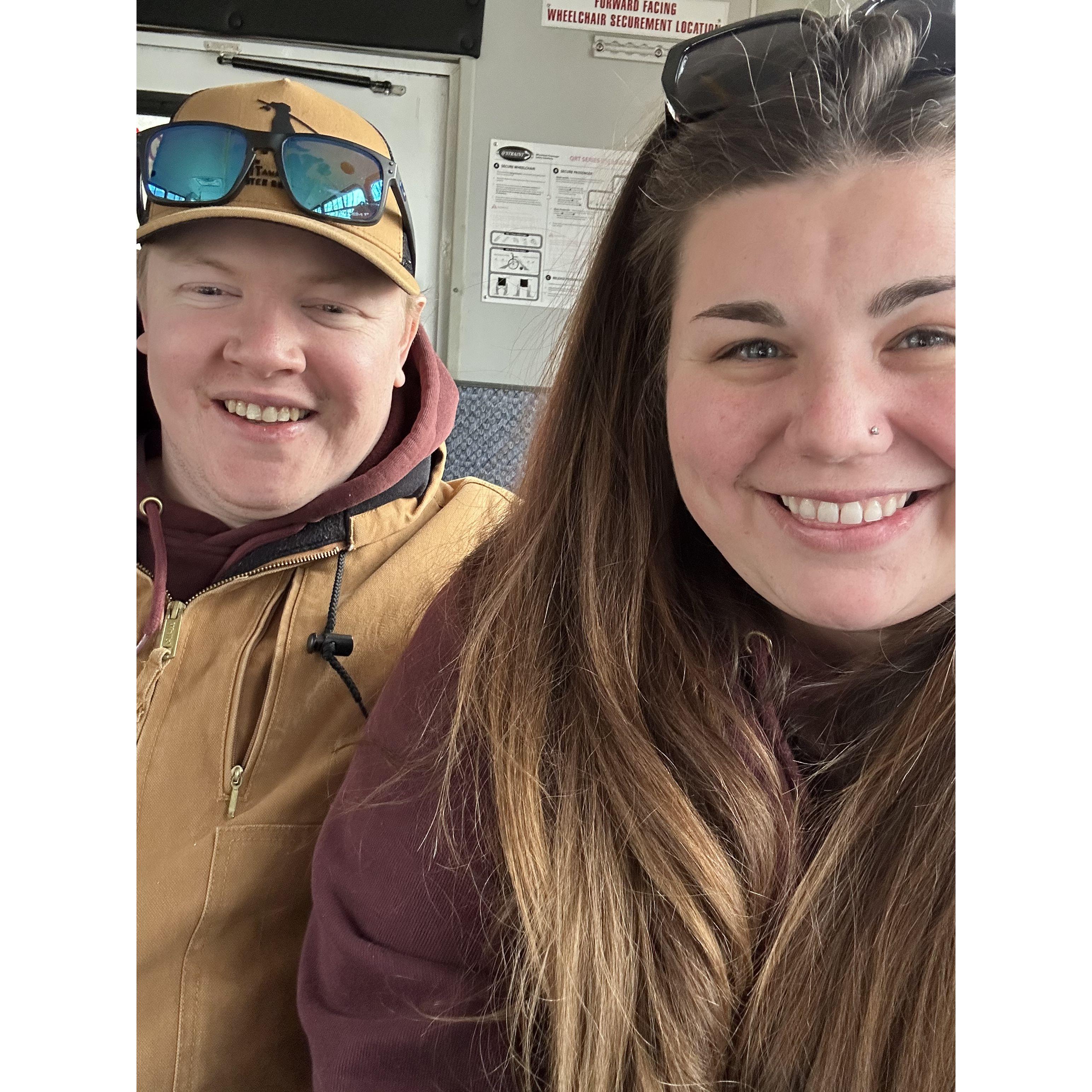 On the bus to go visit the Wolfs at Lakota Wolf Reserve.