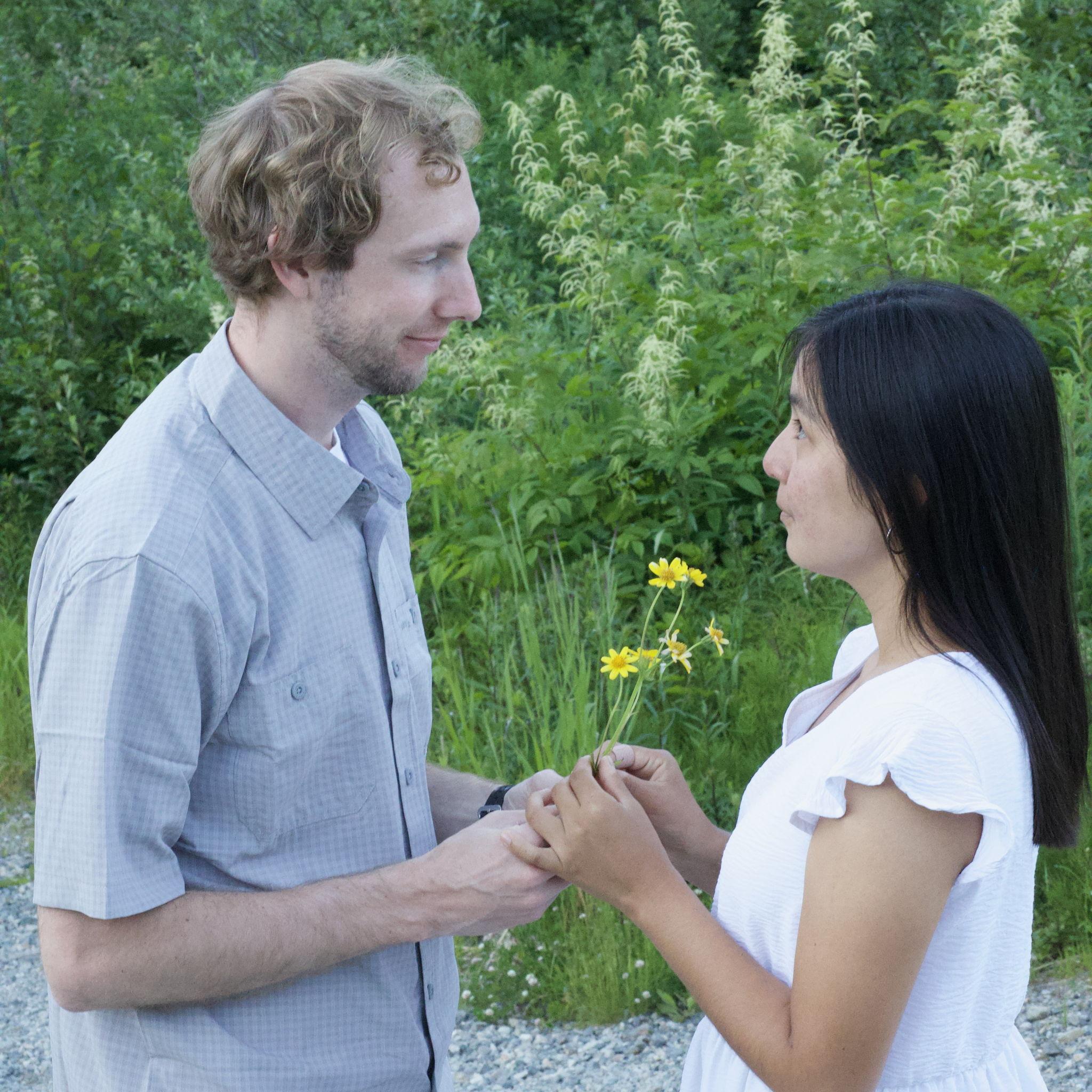 here let me just stick this flower up your nose. don't mind me
