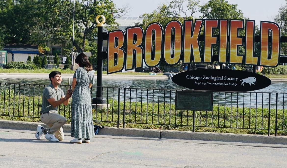 On our 6 year anniversary, Cesar and I kicked off our day with breakfast at La Catedral. We then made our way over to Brookfield Zoo, an iconic location where we had spent one of our first dates. We visited just about every animal exhibit, took a ton of photographs, and soaked in the beautiful weather. However, we had some reservations to catch after our zoo date, so we started making our way to the exit. This was the moment. Cesar, very nonchalantly, tells me his family is making their way over to the zoo to take a group photograph with us in front of the Brookfield Zoo sign (just like we had done years ago, on one of our first dates as a couple). I didn't think much of it; I swiftly started helping him scout his family. I caught sight of his sisters walking beside a woman that looks remarkably similar to my mom. I remember turning to Cesar and saying, "Hey, I see your sisters, and there's a lady that looks just like my m--" In a blink and a lifetime, he held my hands, got down on one knee and made history. I melted into him. I said yes. I looked around. An uproar of cheers surrounded us, and that's when I noticed. All our loved ones stood in a single file line, witnessing our love's milestone in real time. At the end of the line, just as I thought I had glimpsed, was my mami. The rest is a blur encapsulated in photographs that we'll treasure forever. We can't wait to share and celebrate our love with you all -- nos vemos en Agosto!