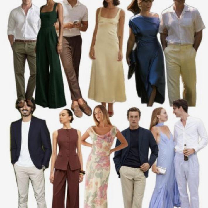 The dress code is semi-formal/cocktail. Please see the images below as appropriate wear. Men- A nice linen button up shirt with trousers or slacks. Women- Any color but white midi/maxi dress is perfect! It will likely be warm so please plan accordingly.