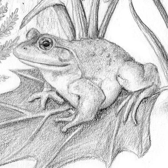 The bullfrog appears in honor of Chris's love of fishing and the calming power of the rivers, his second home. Associated with the water, frogs symbolize the cleansing power of nature - a balm to wash away the stresses and worries of the busy world in which we live.