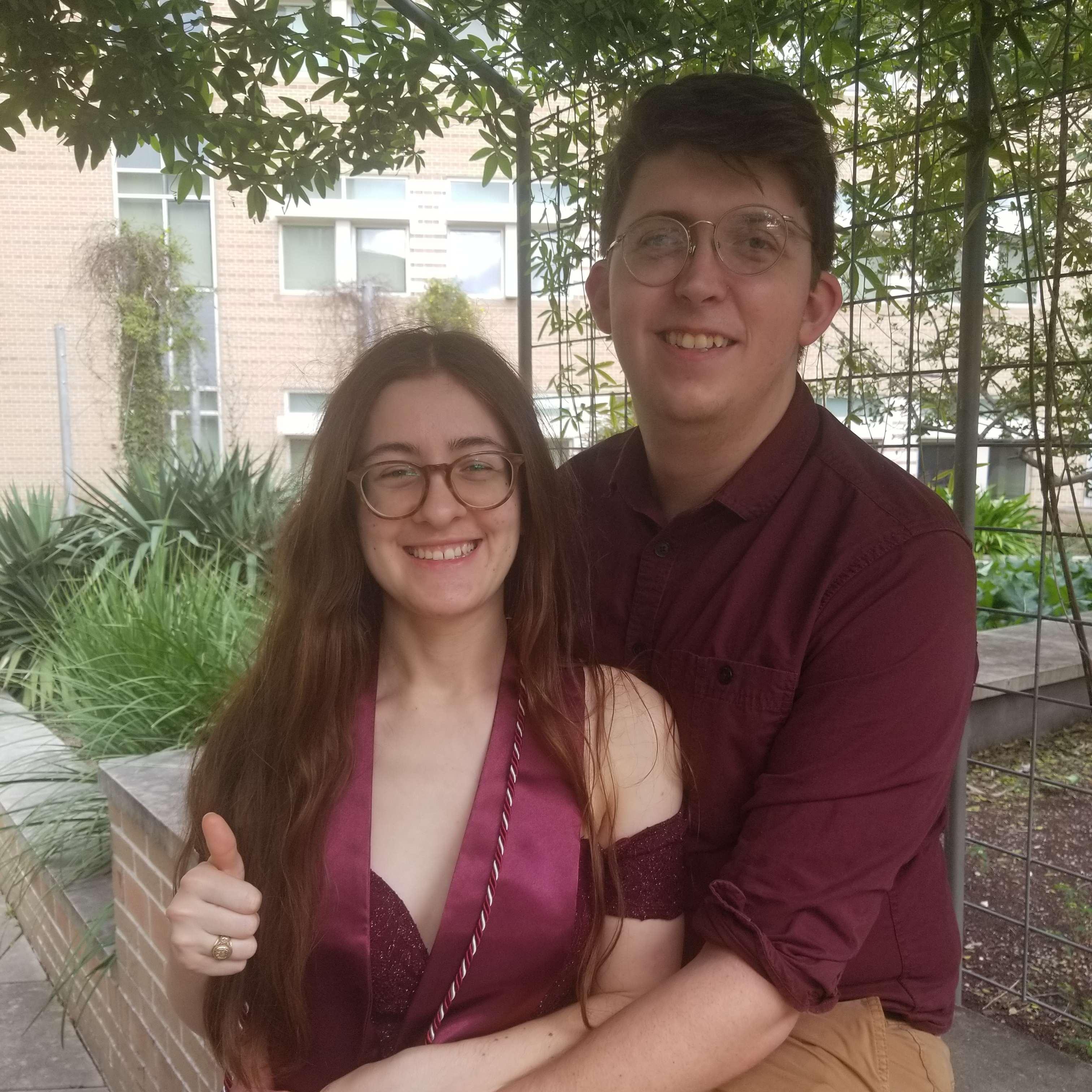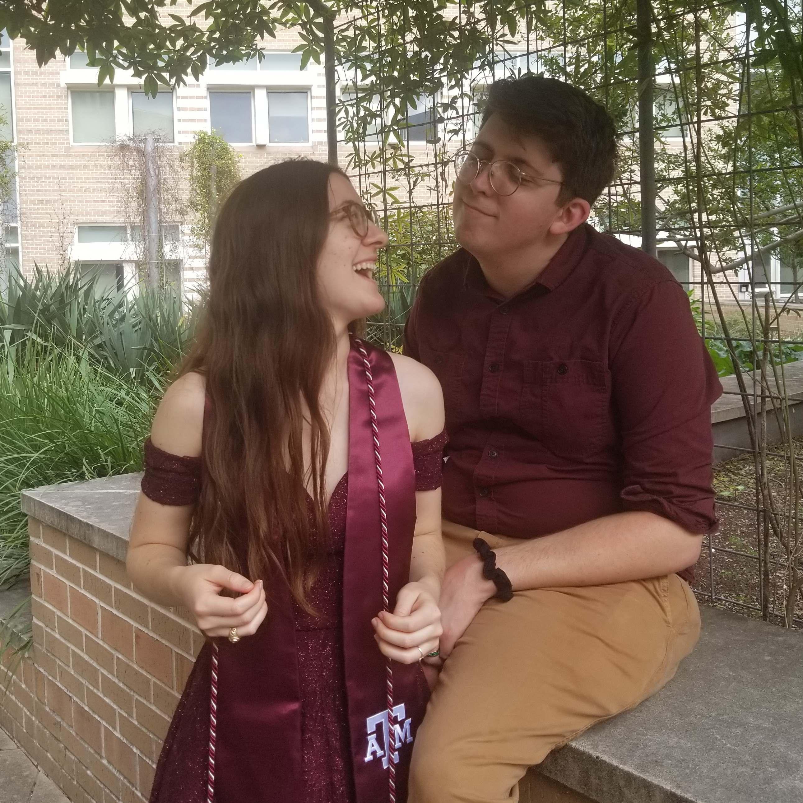 Taking pictures after Chrissi's graduation on top of the Mitchell Physics building at Texas A&M University